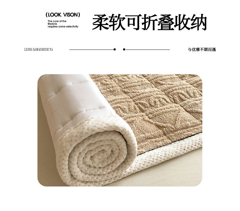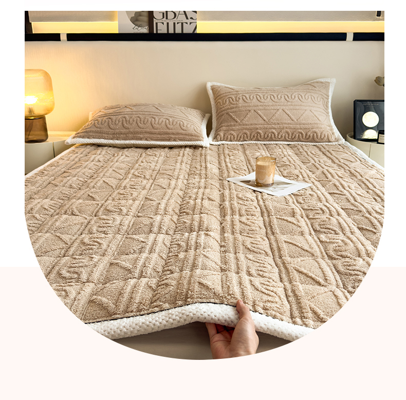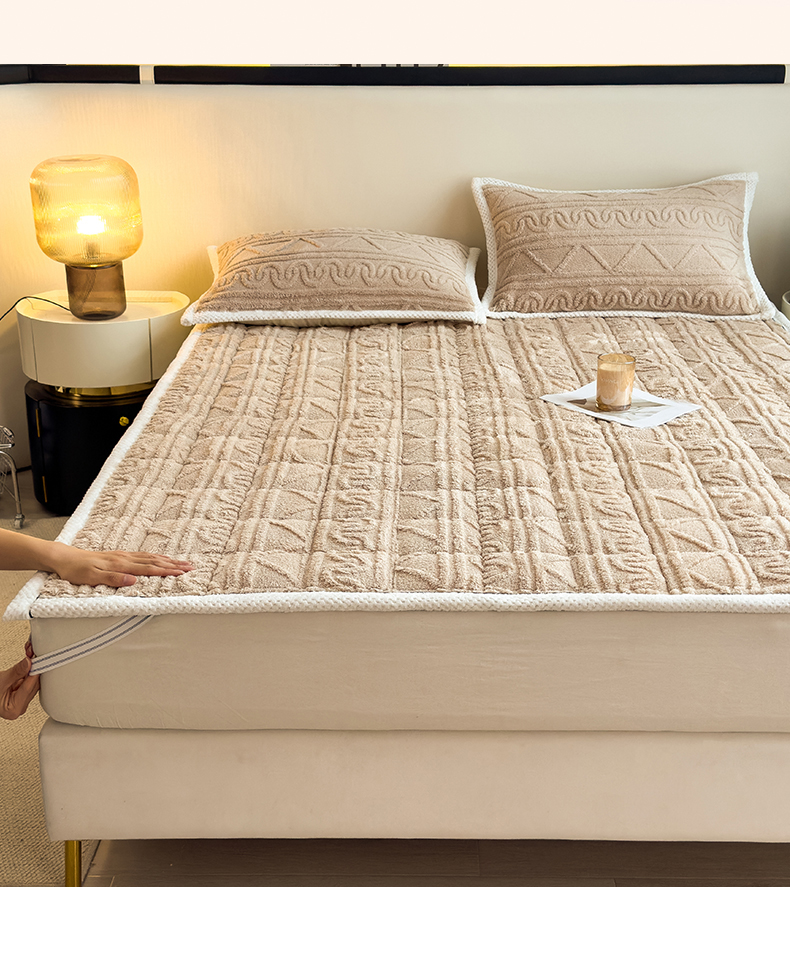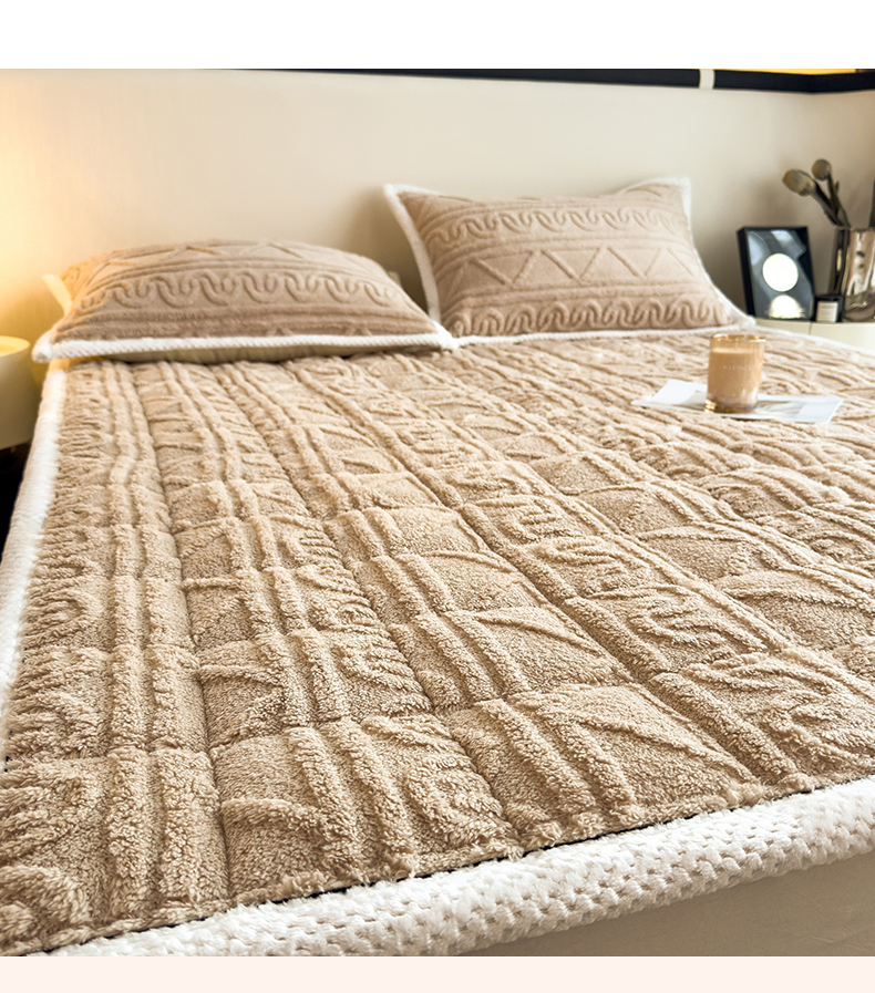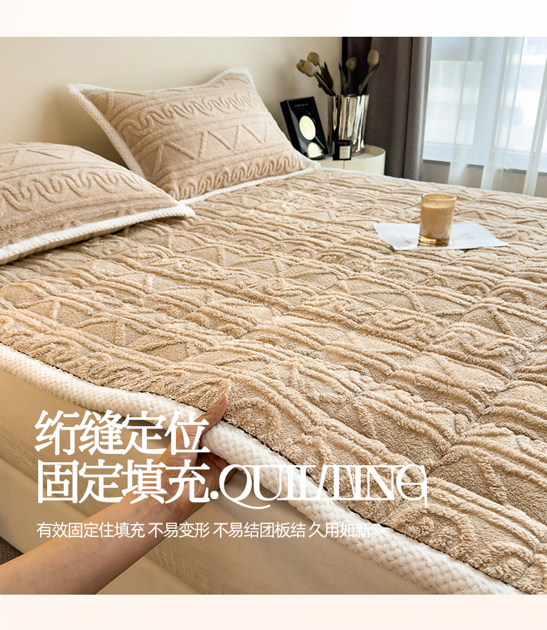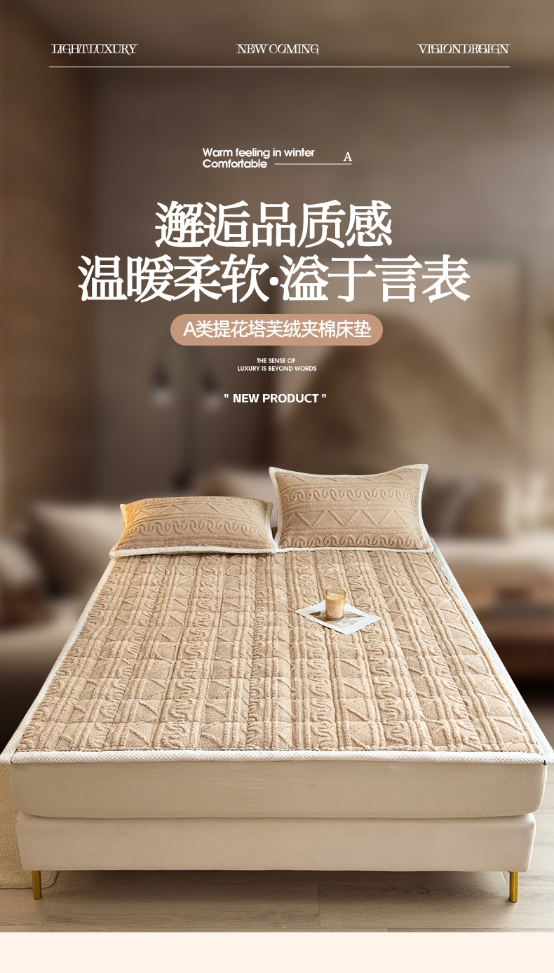 商品名称:暖季家纺 2025新款A类高克重提花塔芙绒夹棉床垫床褥 浮笙-咖色床褥