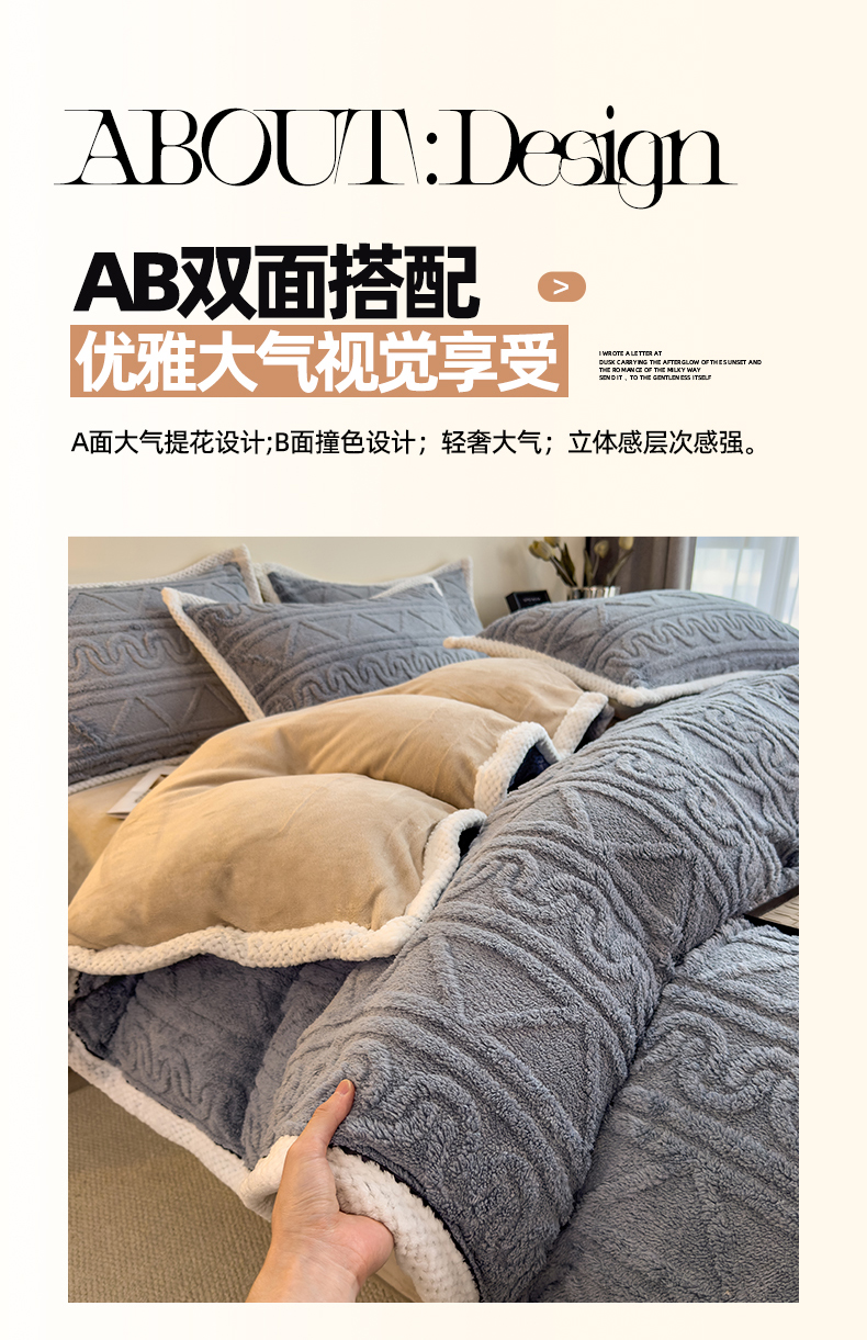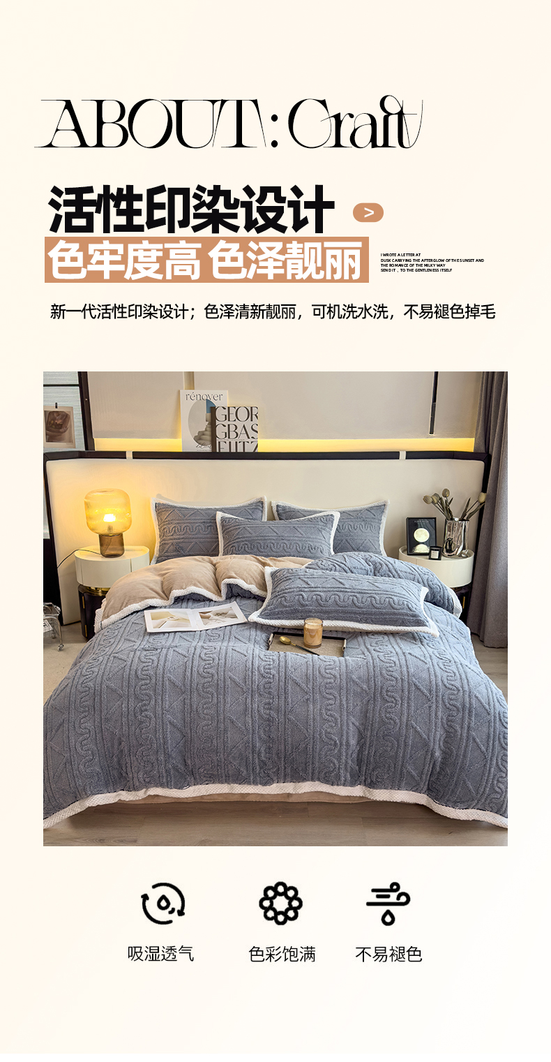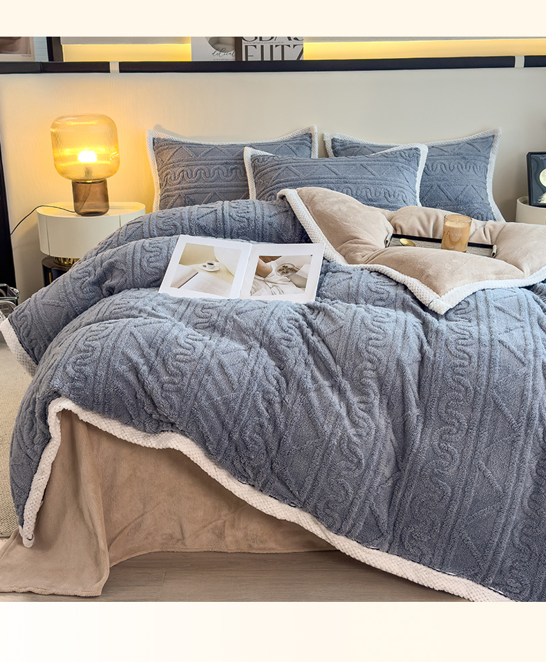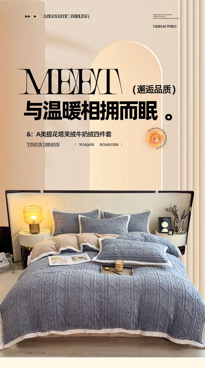 商品名称:暖季家纺 2025新款A类高克重提花塔芙绒牛奶绒四件套 浮笙-深蓝