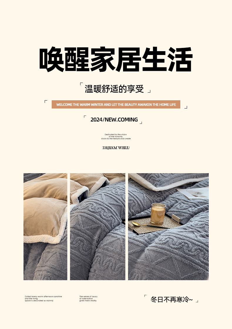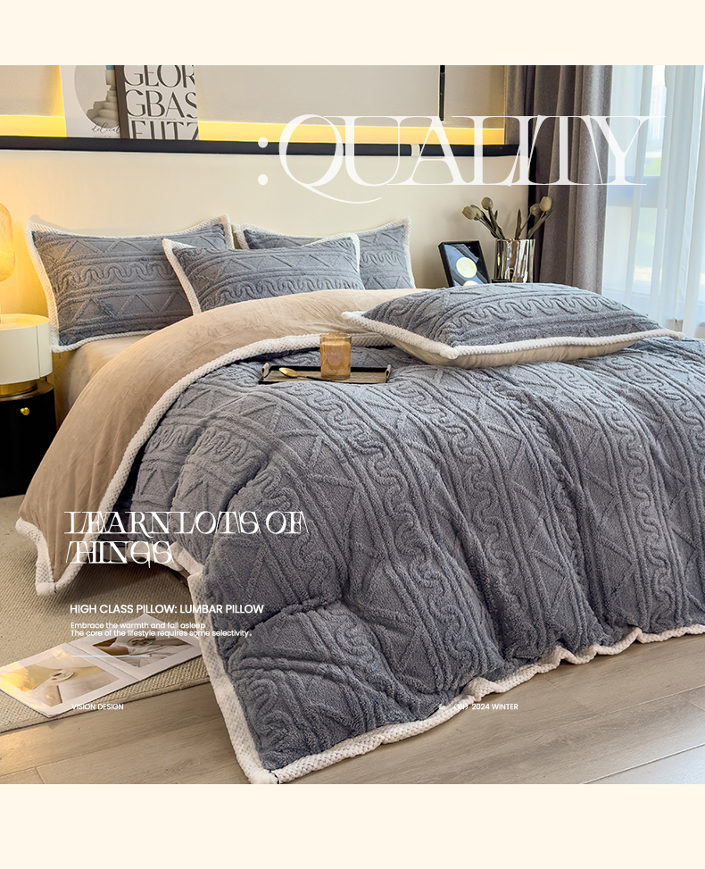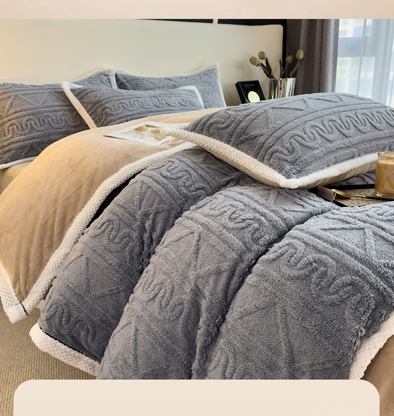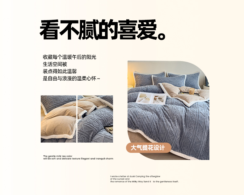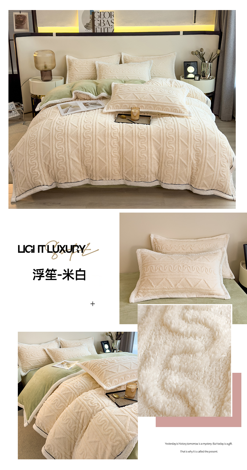 商品名称:暖季家纺 2025新款A类高克重提花塔芙绒牛奶绒四件套 浮笙-深蓝