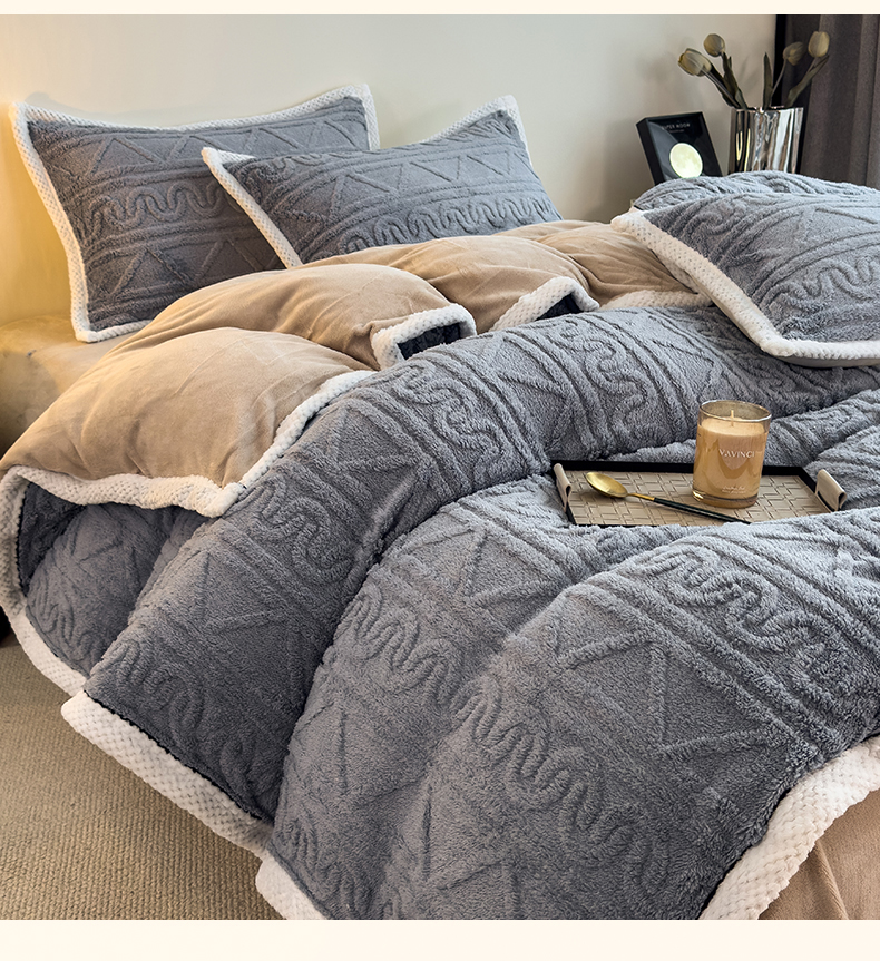 暖季家纺 2025新款A类高克重提花塔芙绒牛奶绒四件套 浮笙-深蓝
