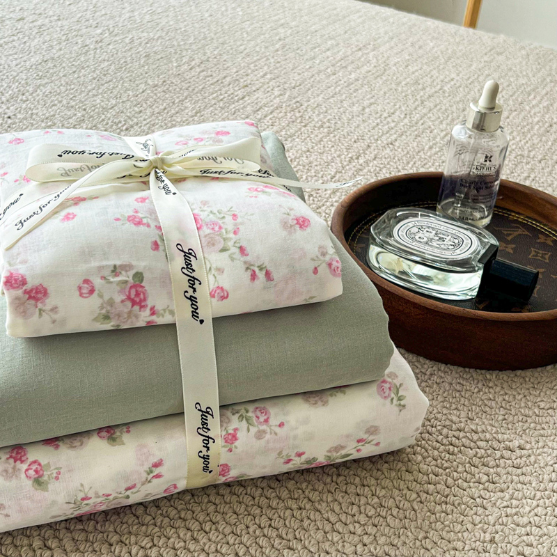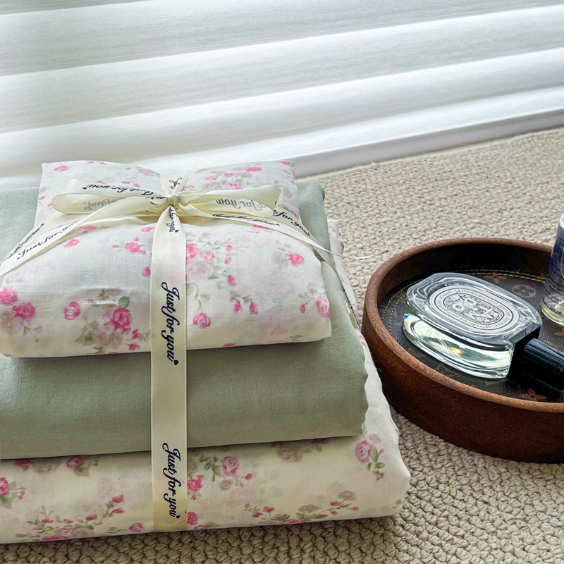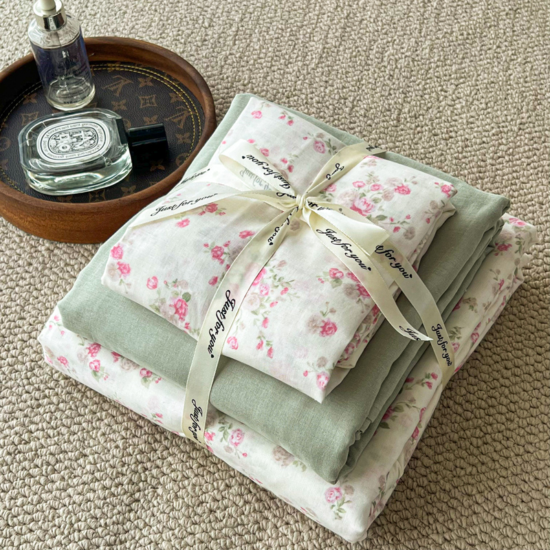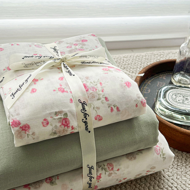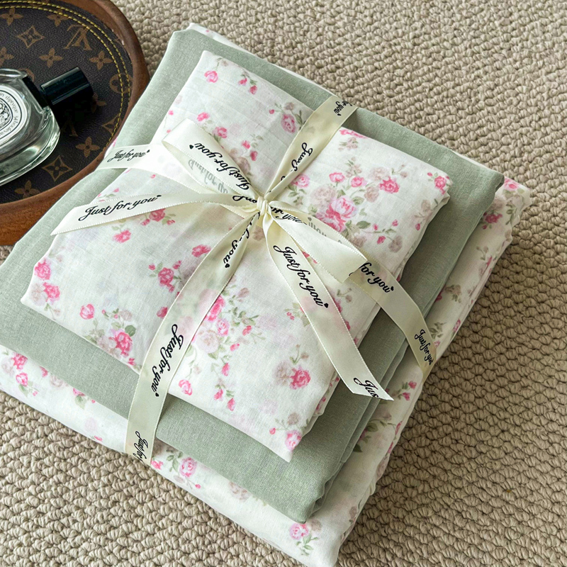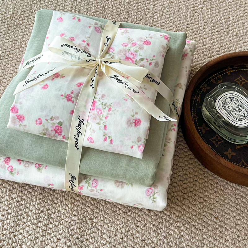 商品名称:一比一家纺 2025新款全棉母婴级抗菌有氧全棉双层纱亲肤全棉小清新印花三件套四件套 秀妍