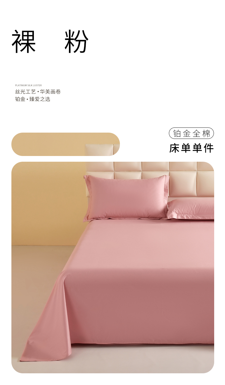 商品名称:元元被芯 2025款纯色全丝光-全精梳高密纺-铂金A类全棉单床单 裸粉