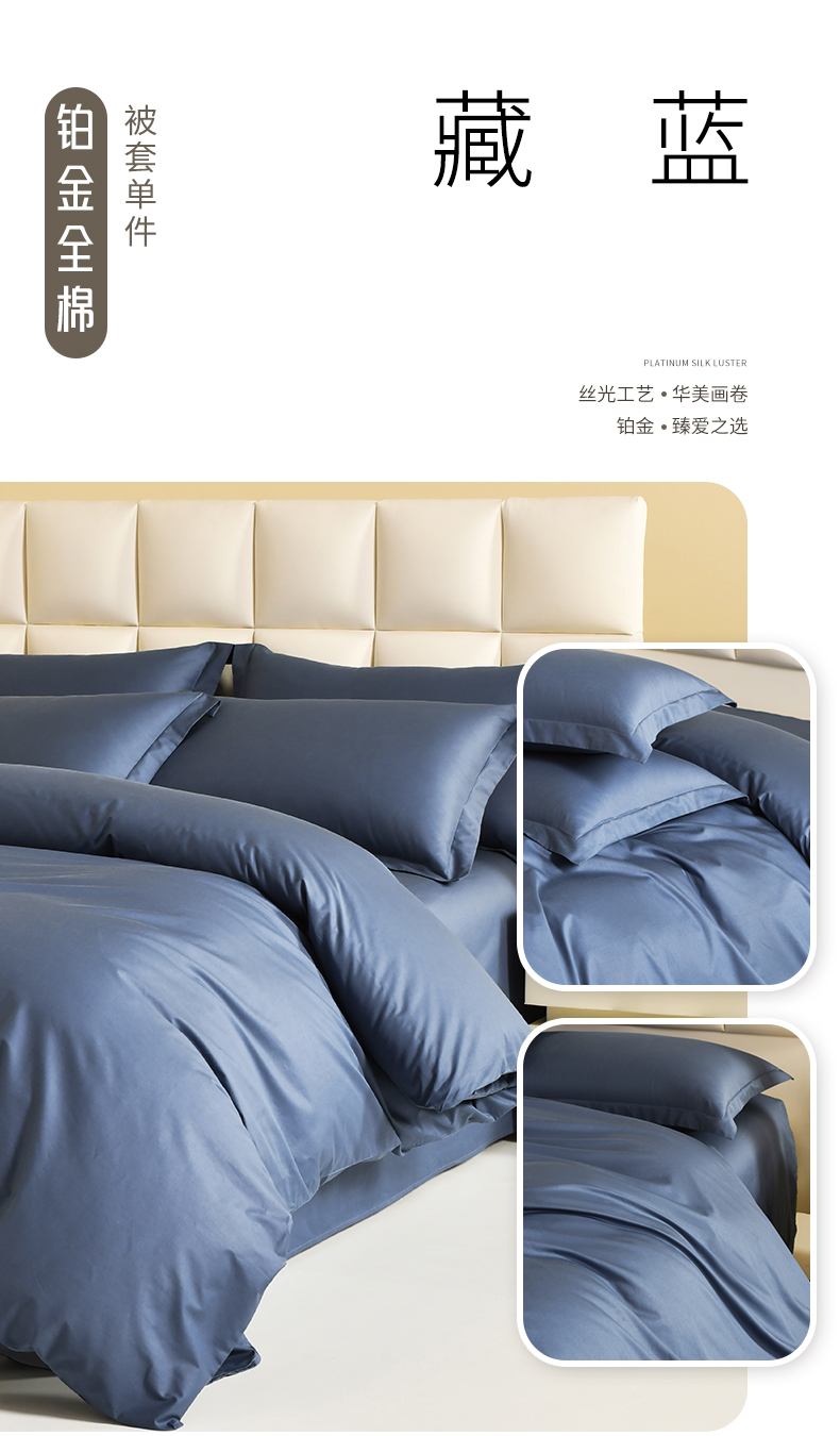 商品名称:元元被芯 2025款纯色全丝光-全精梳高密纺-铂金A类全棉单被套 藏蓝