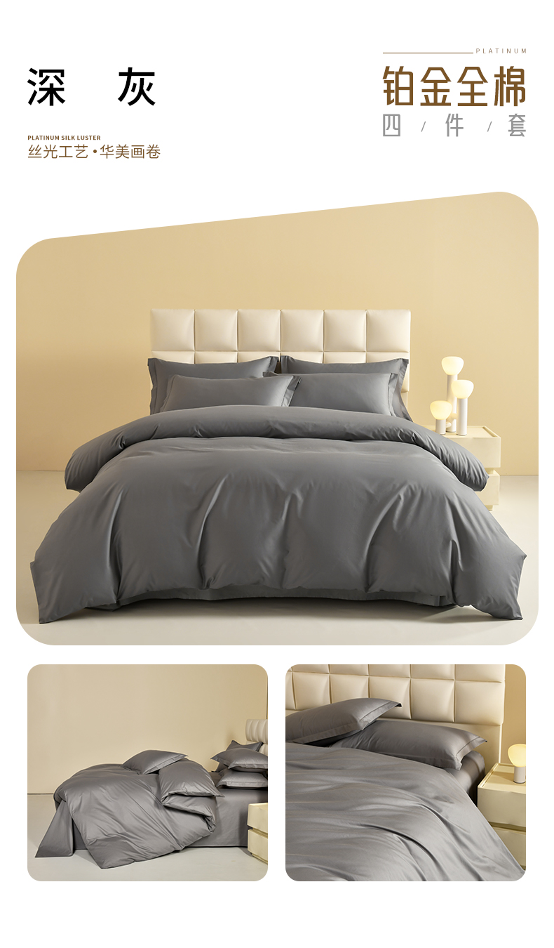 当前位置: 91家纺网 > 商品网购 > 床品套件 > 四件套 > 全棉活性四件套 > 元元被芯 2025款纯色全丝光-全精梳高密纺-铂金A类全棉四件套 深灰