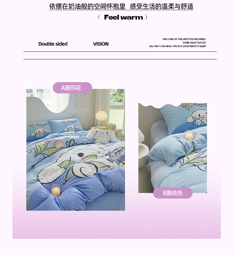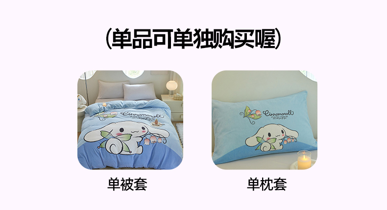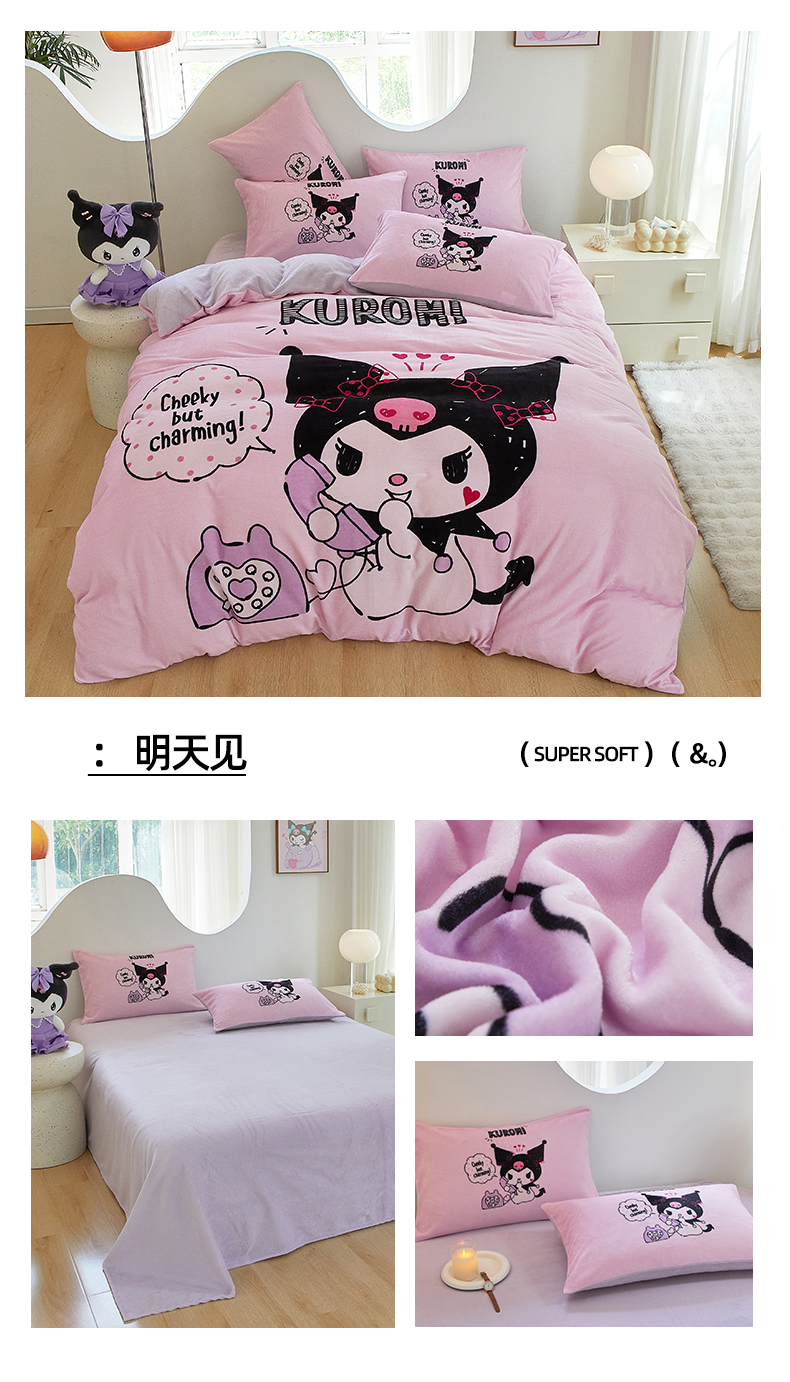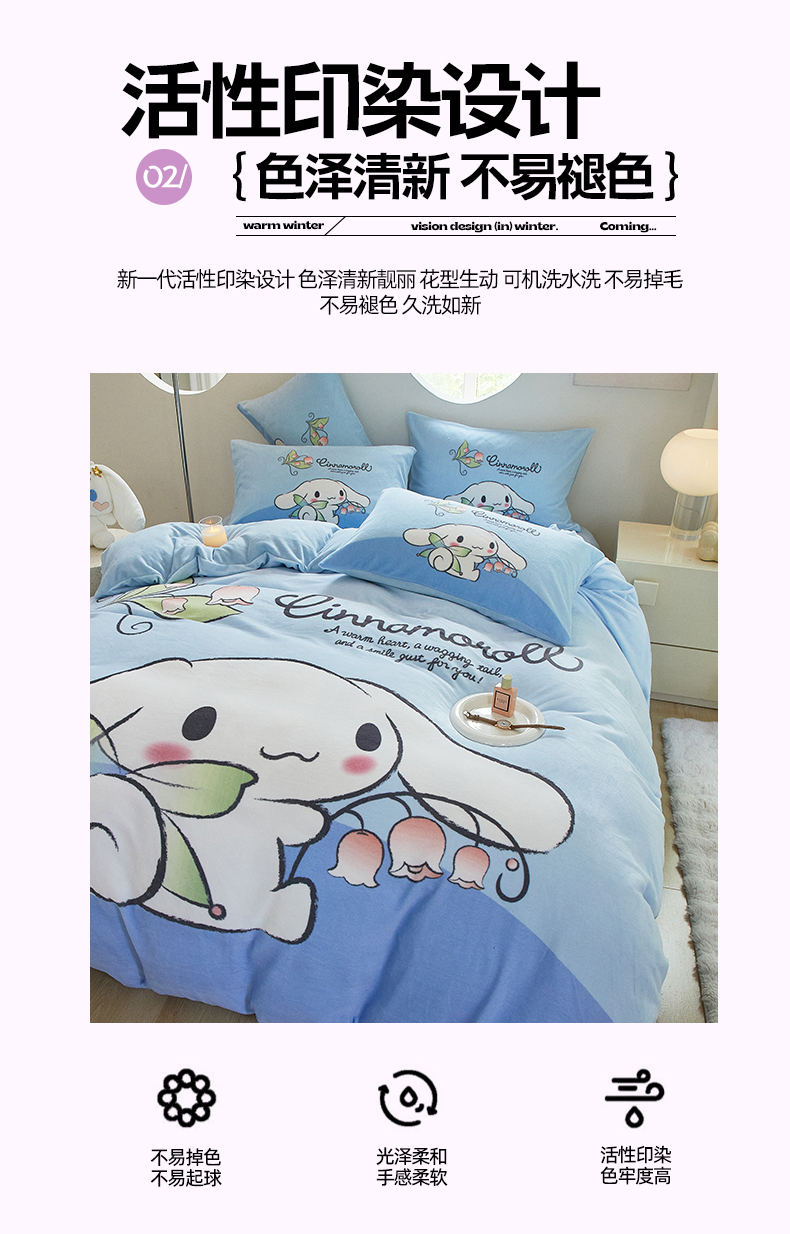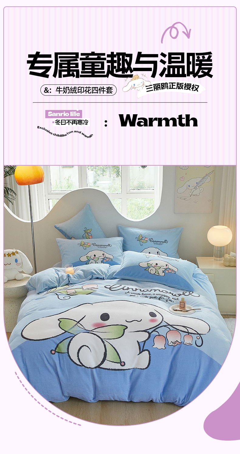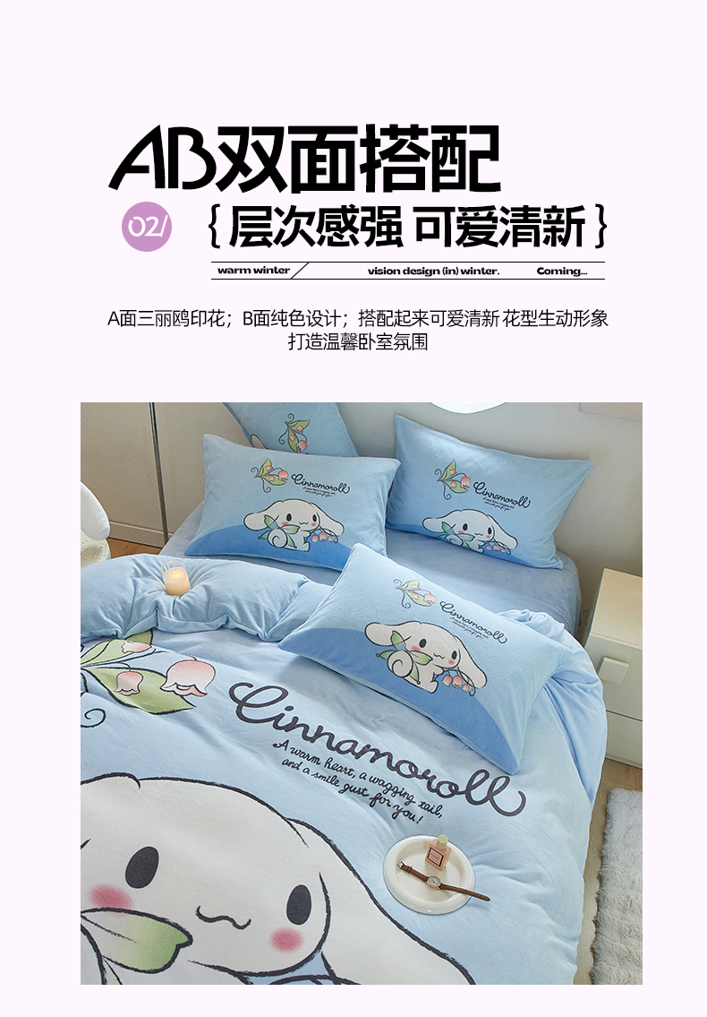 当前位置: 91家纺网 > 商品网购 > 床品套件 > 四件套 > 牛奶绒四件套 > 蘭菲家纺 2024新款牛奶绒卡通三丽鸥四件套 清新