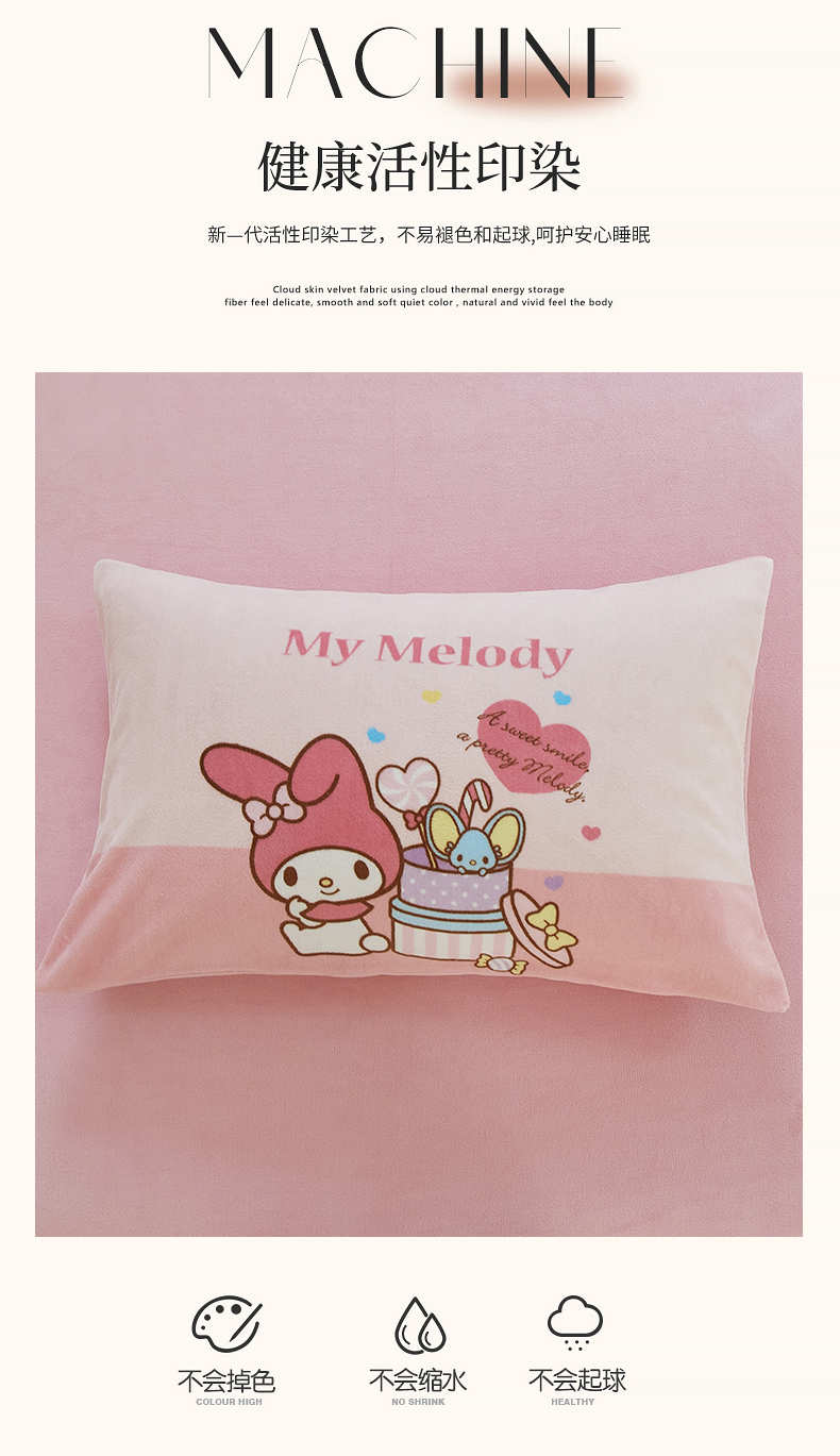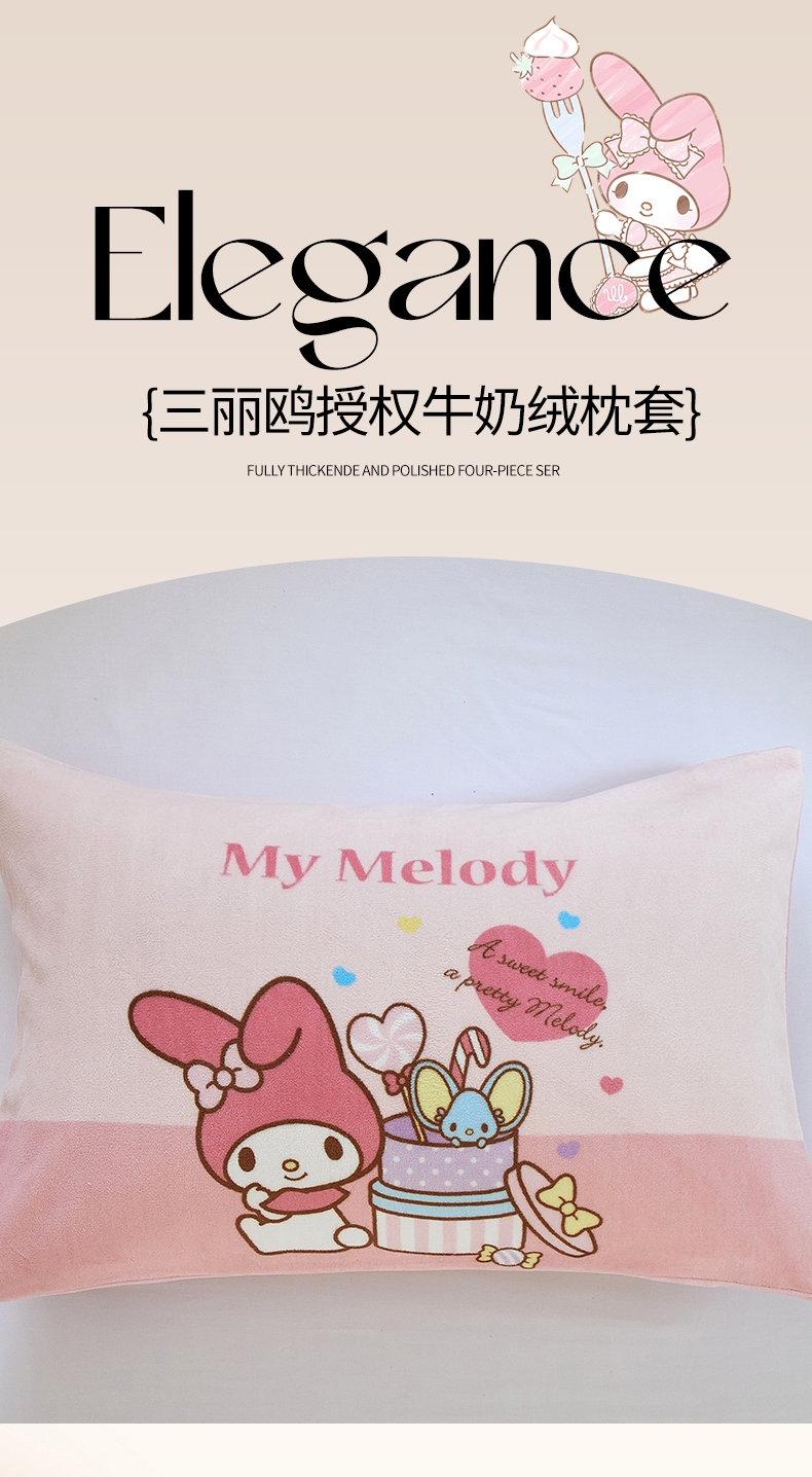 商品名称:蘭菲家纺 2024新款牛奶绒卡通三丽鸥单品枕套 收礼物