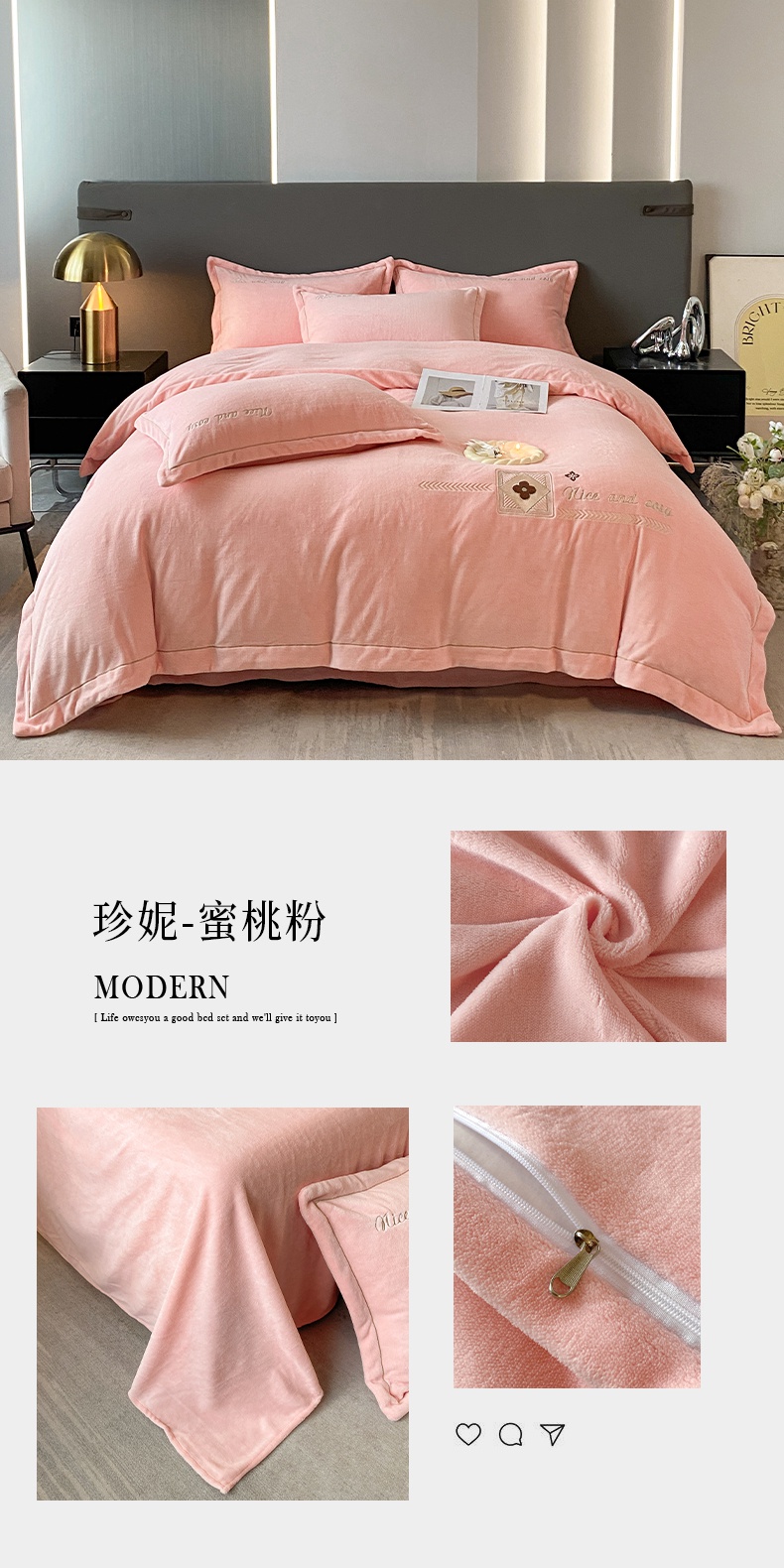 (总)昊翔家纺 2025新款全消光蚕丝绒段角刺绣四件套花之语,花之语-粉色,花之语-桔色,花之语-咖色,花之语-浅蓝,花之语-森林绿,花之语-银灰