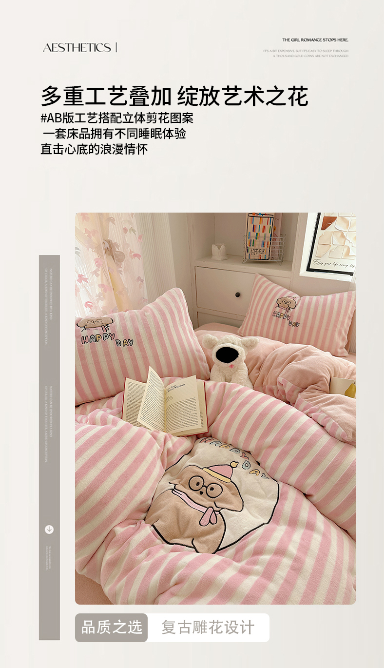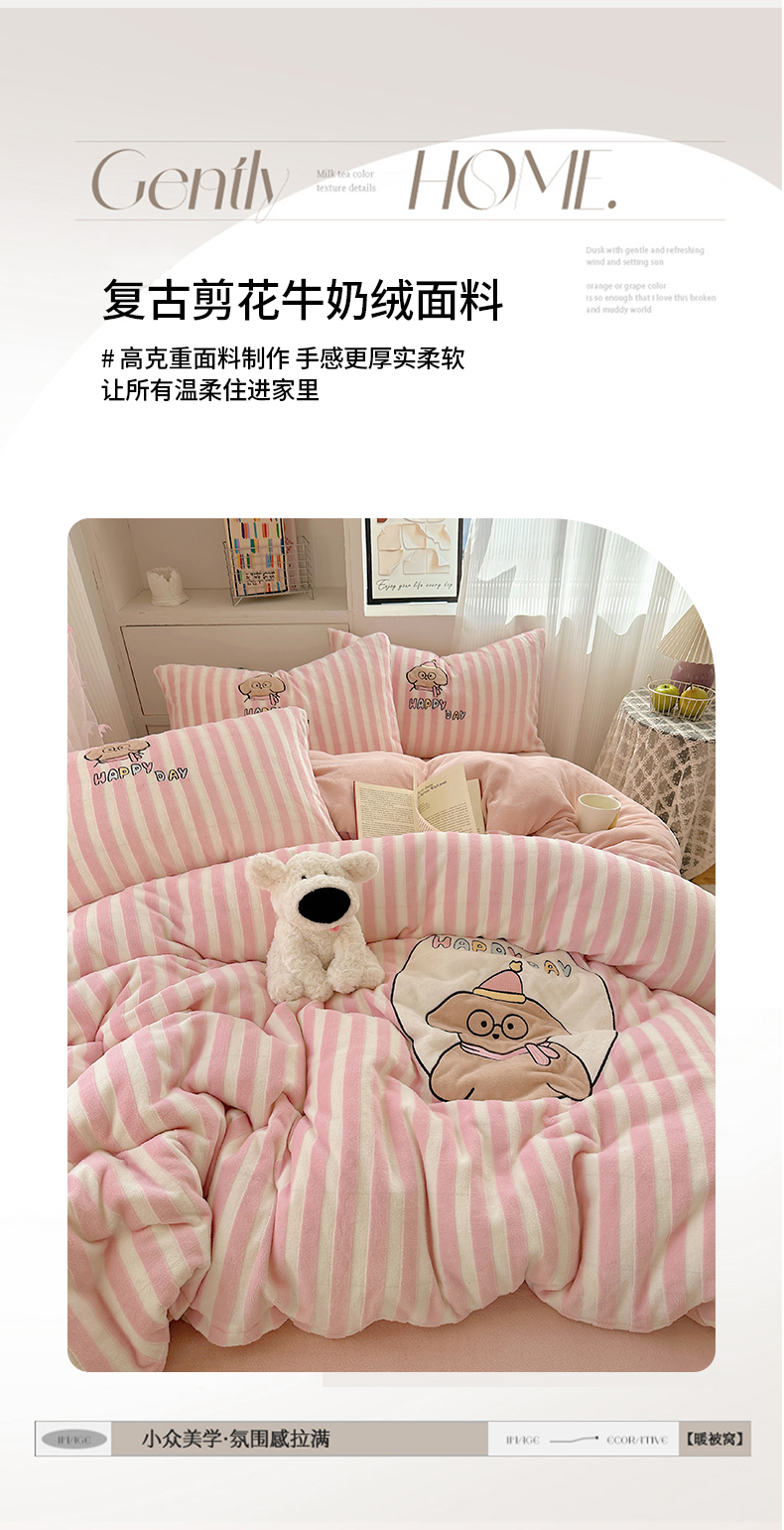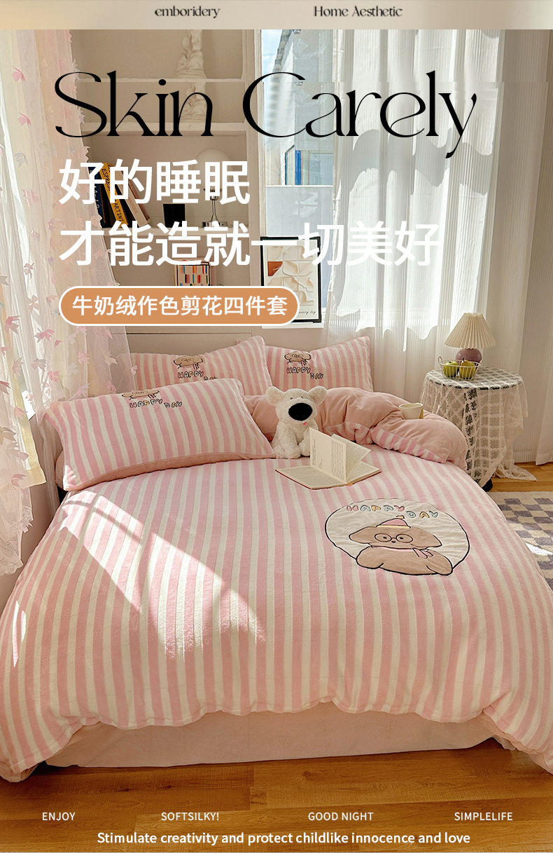 丽涵家纺 2024秋冬新品牛奶绒作色剪花贴布绣四件套 软糯的小狗-粉