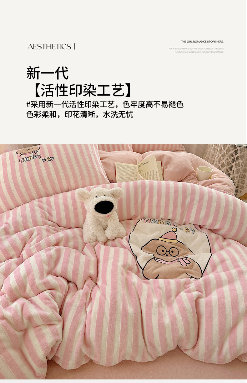 商品名称:丽涵家纺 2024秋冬新品牛奶绒作色剪花贴布绣四件套 软糯的小狗-粉