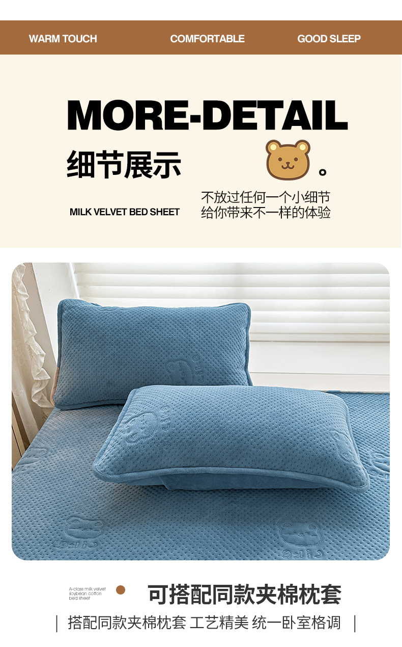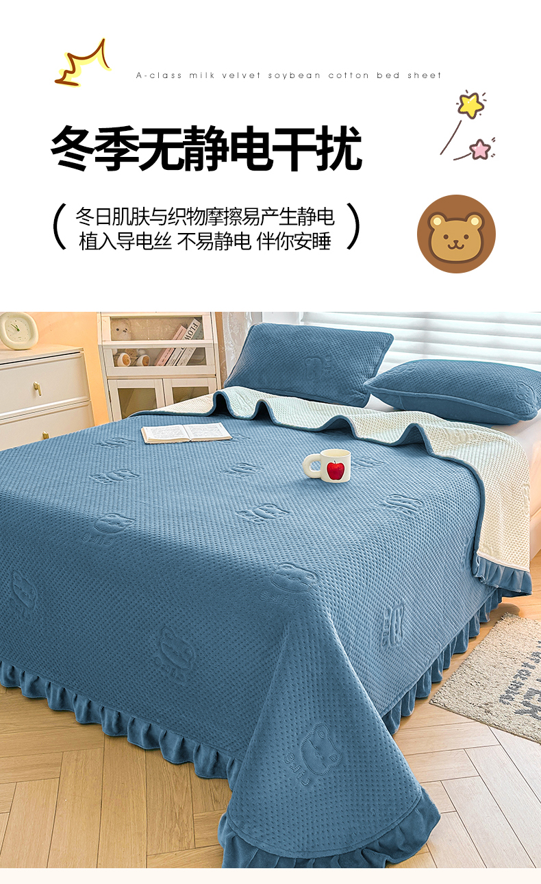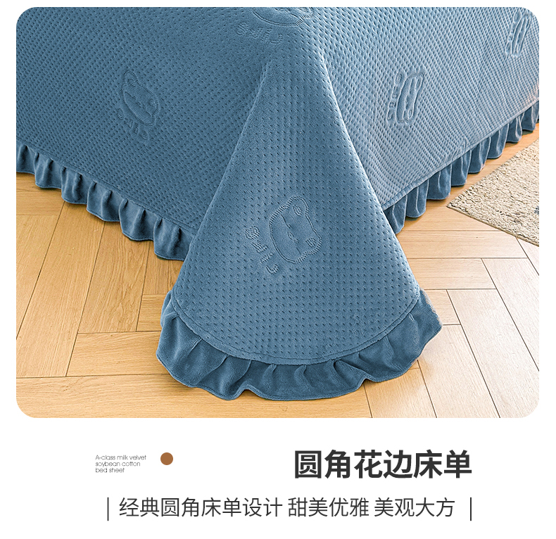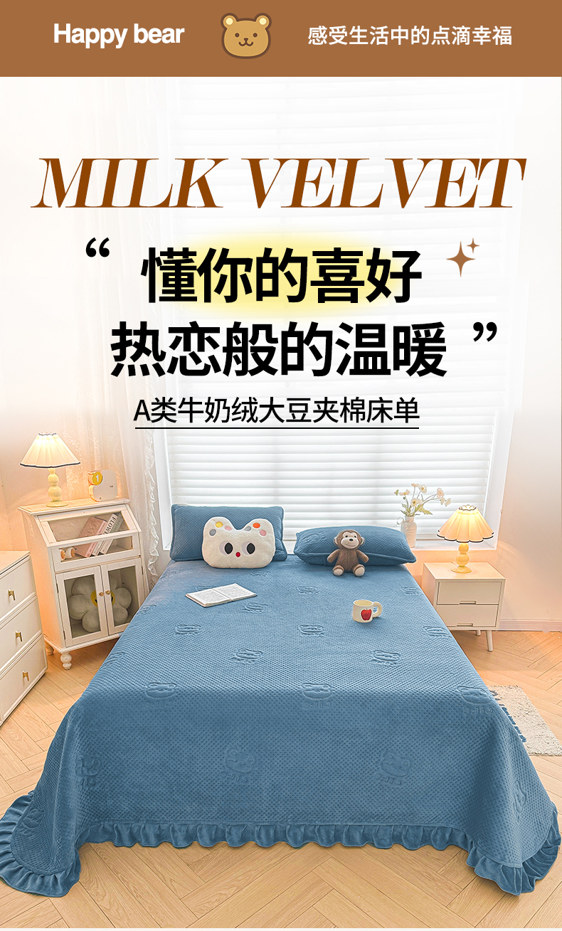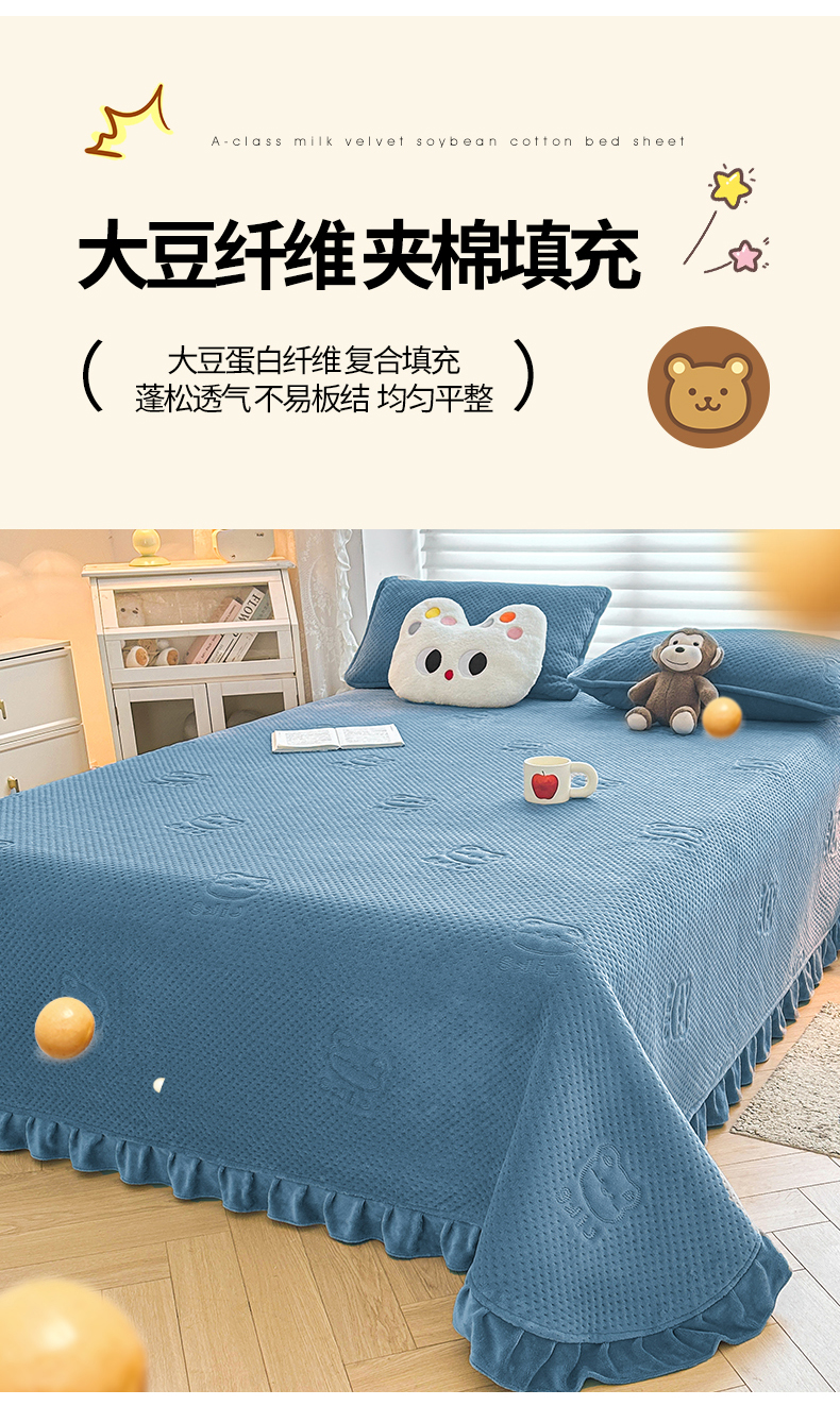 商品名称:居眠 2024新款A类牛奶绒like小熊系列大豆夹棉床单 Like熊-雾蓝