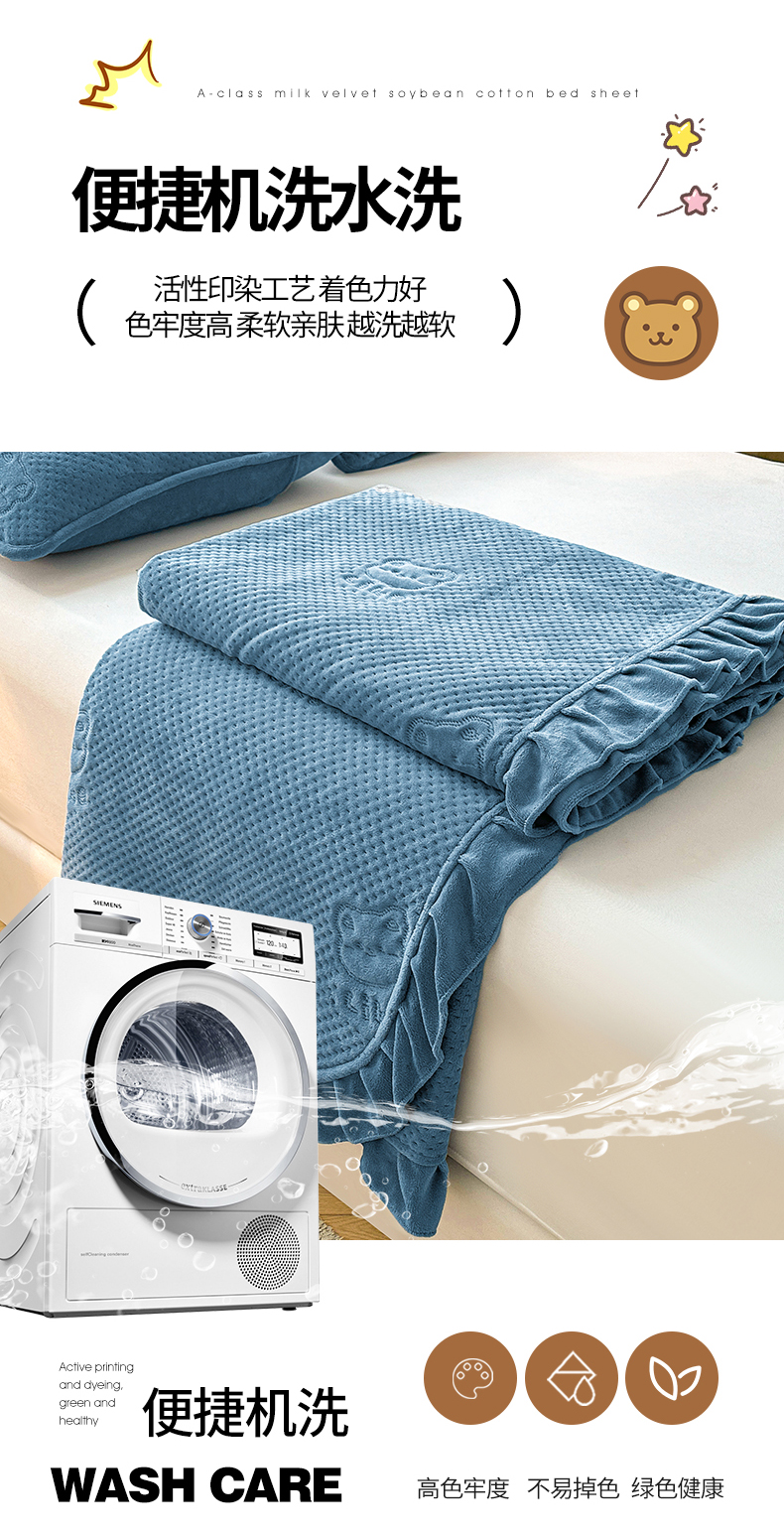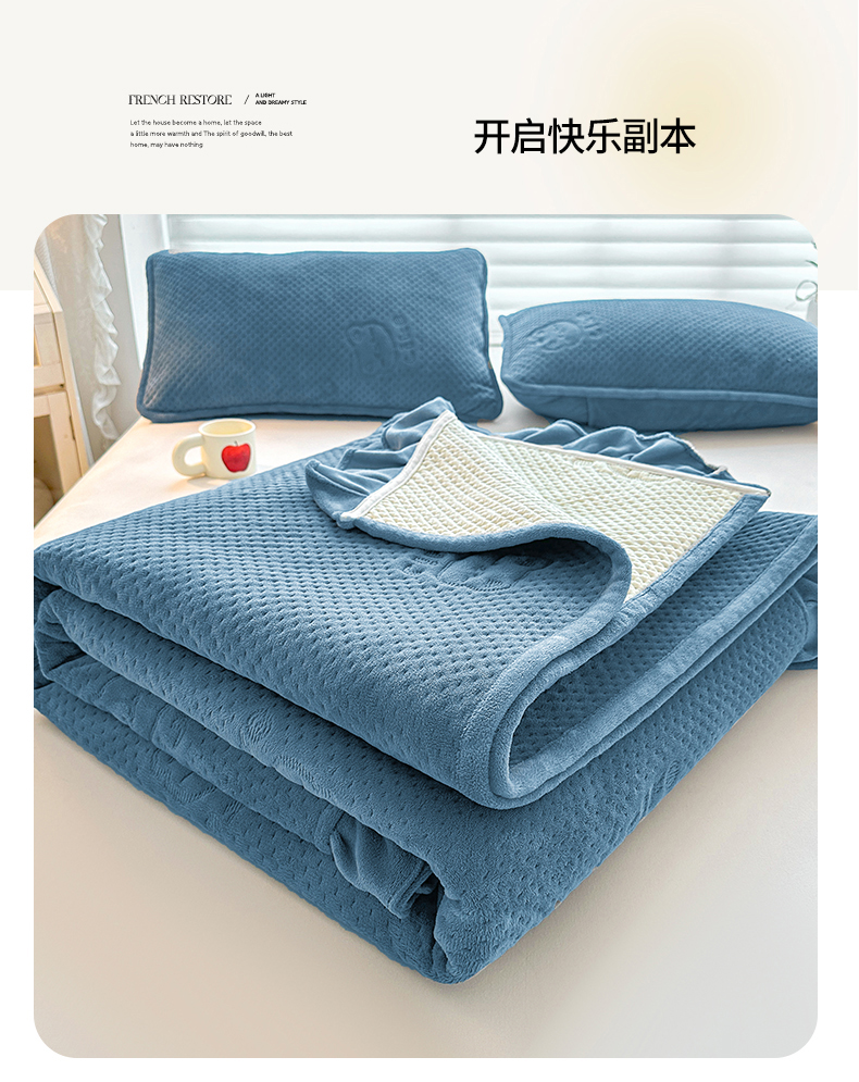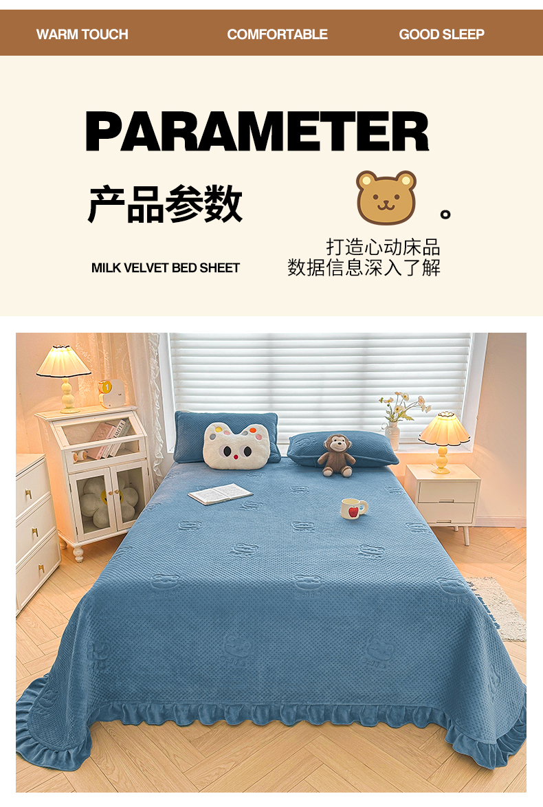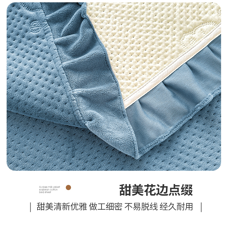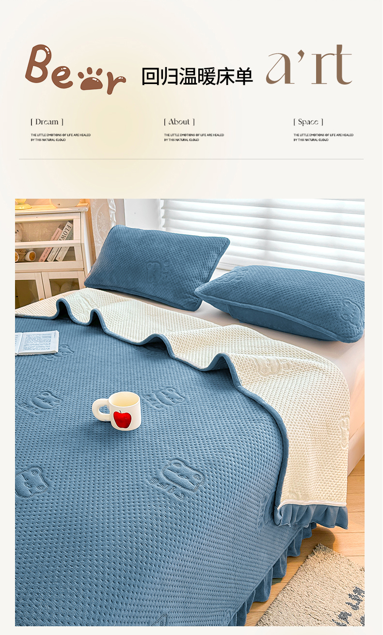 商品名称:居眠 2024新款A类牛奶绒like小熊系列大豆夹棉床单 Like熊-雾蓝