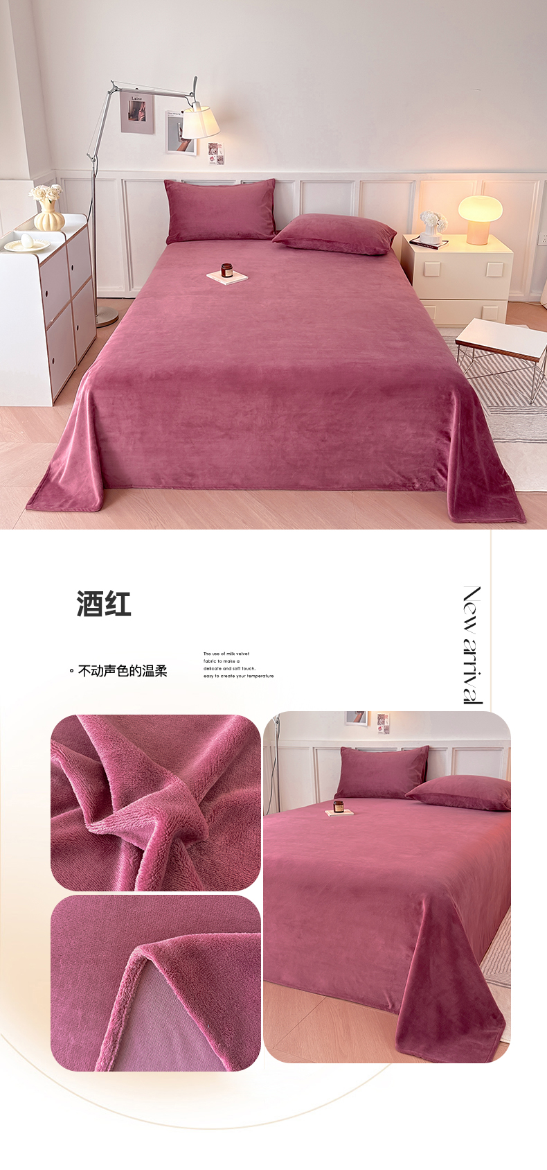(总)简宜家居(朝初家纺) 2025新款200克牛奶绒A版床单,宾利蓝,淡雅黄,高级灰,酒红,抹茶绿,奶白,牛油果绿,珊瑚粉,优雅紫
