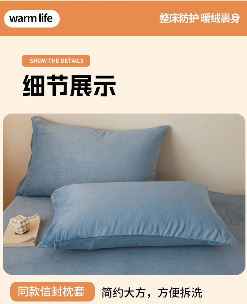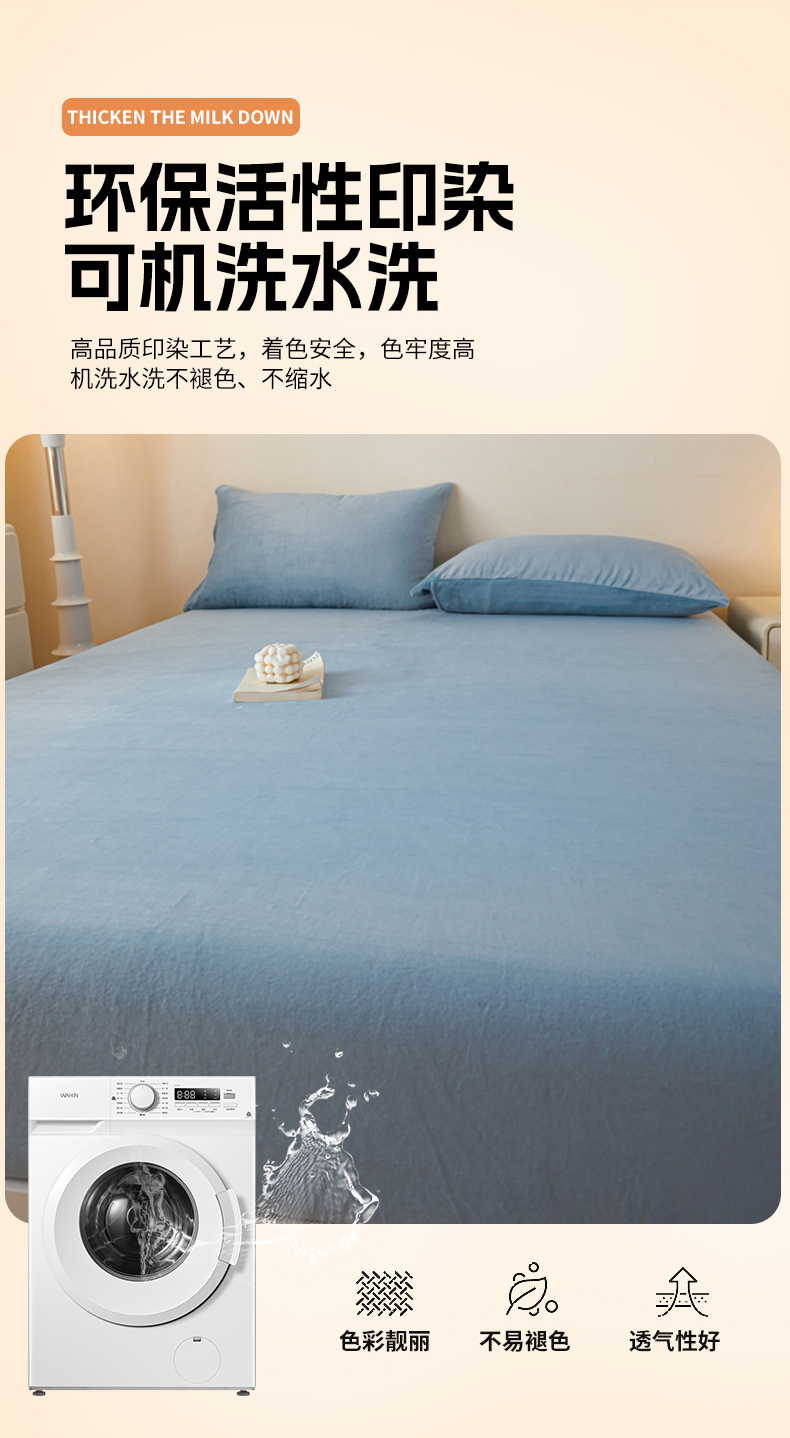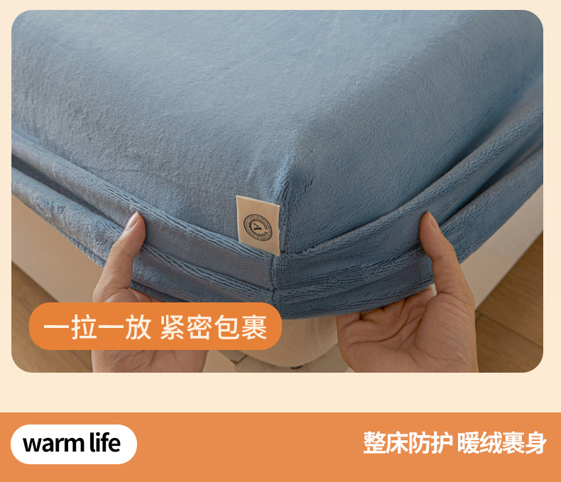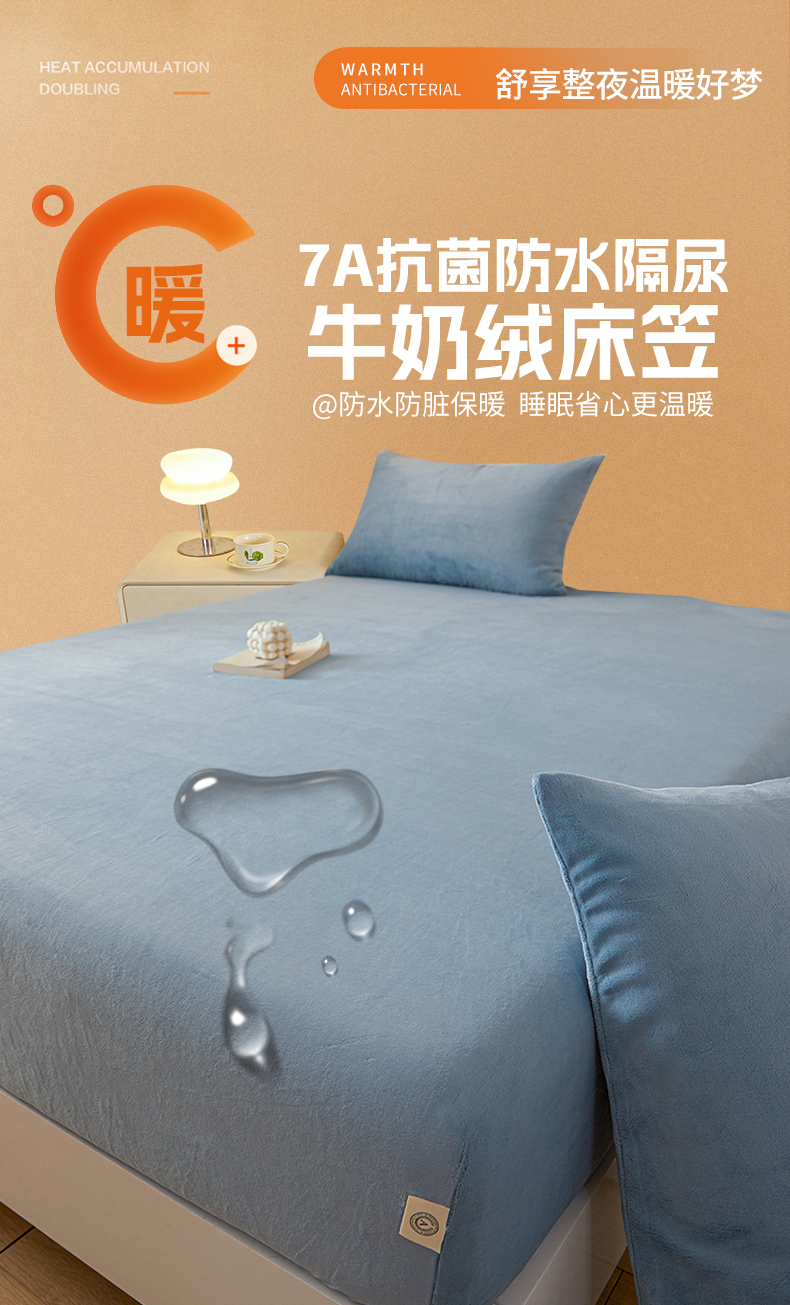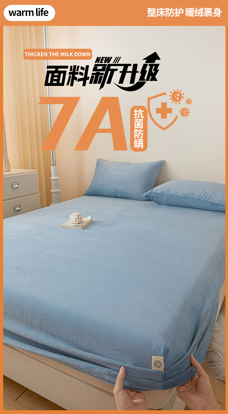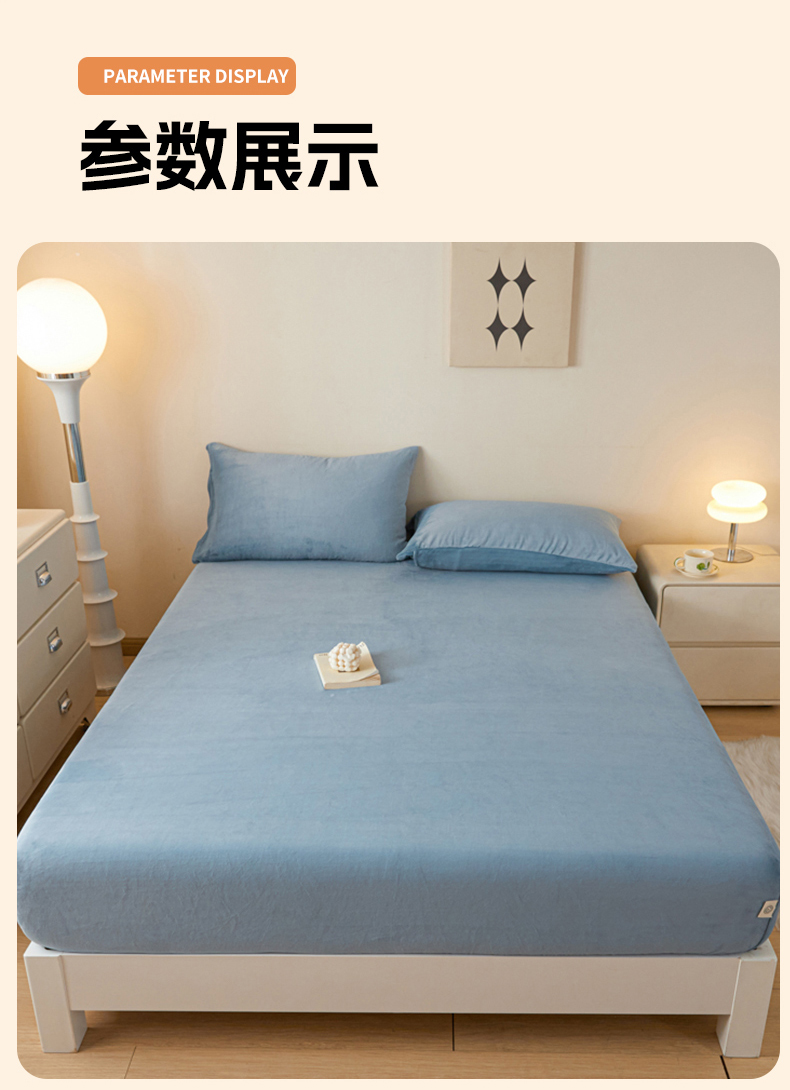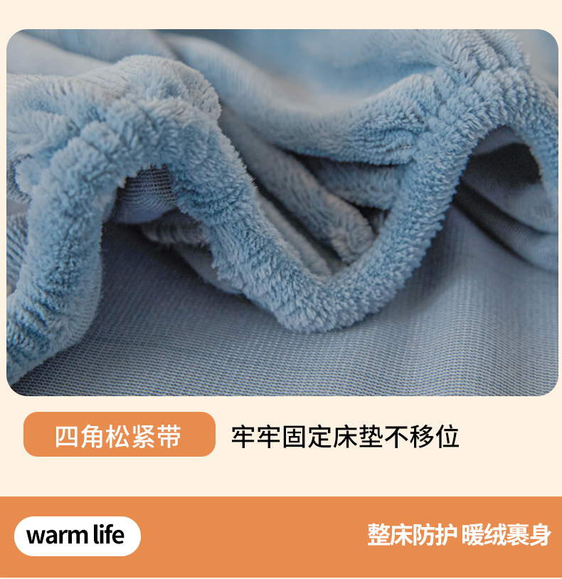 • 91家纺网 家纺一手货源 找家纺 鑫钰 2024秋冬新款加厚牛奶绒防水床笠 湖蓝