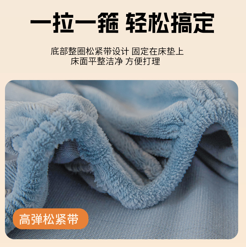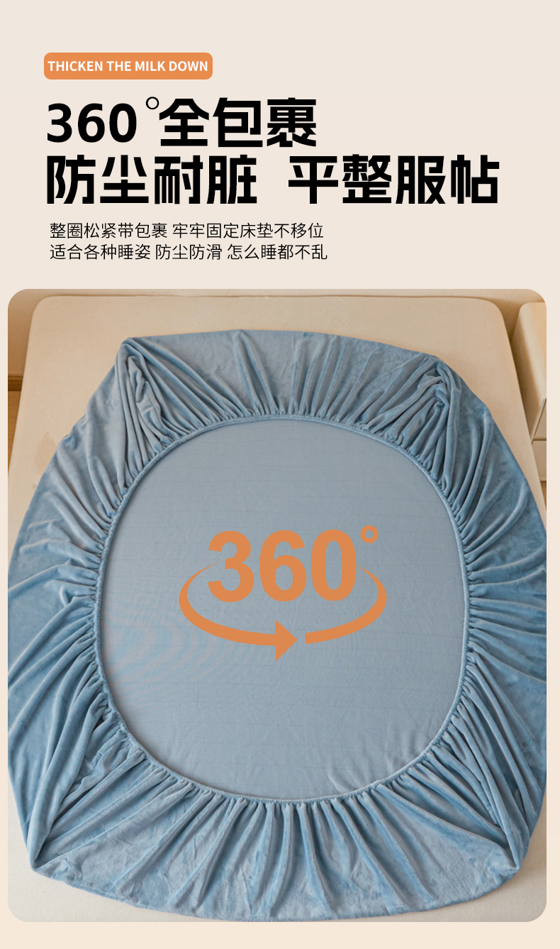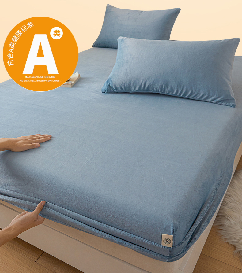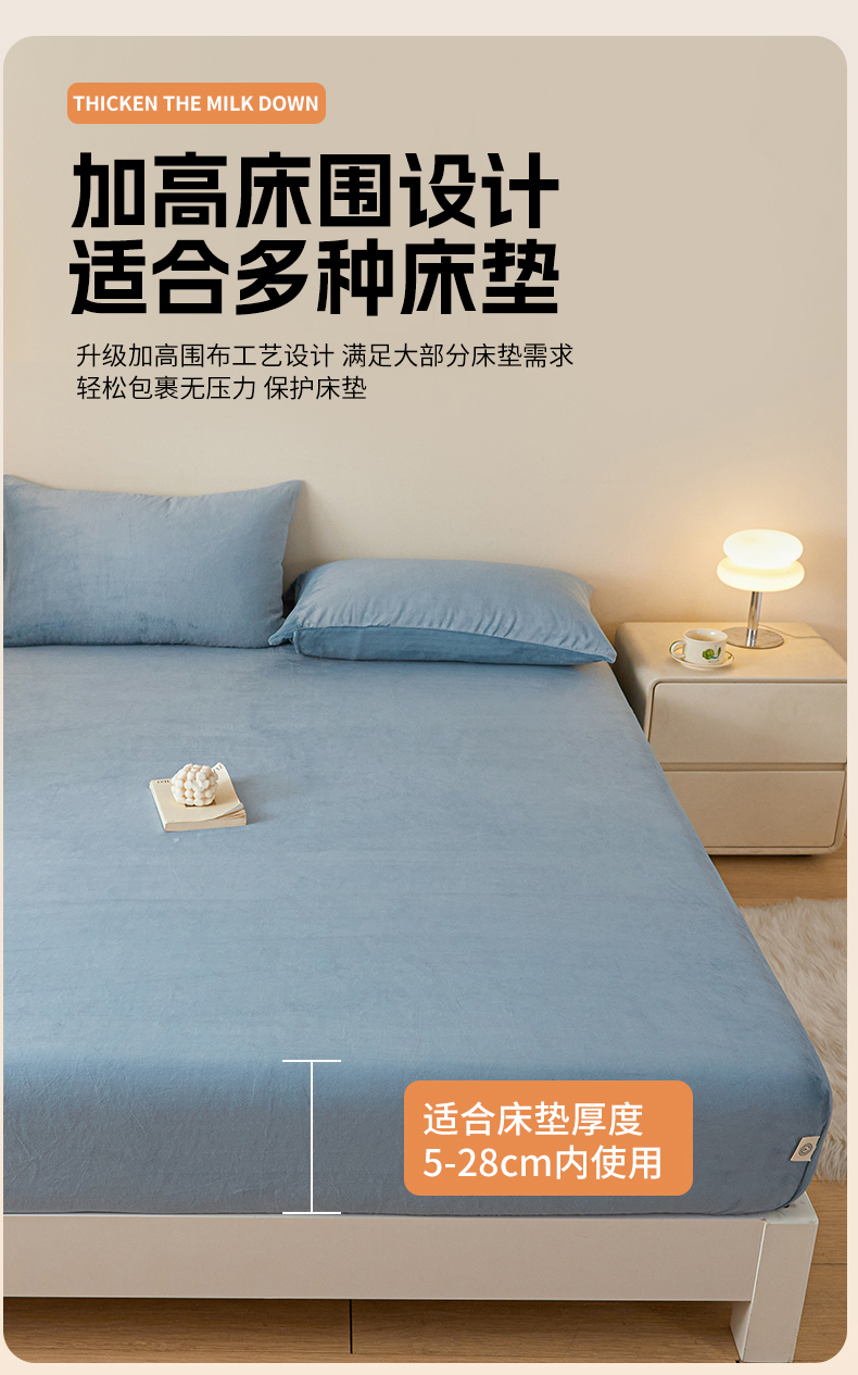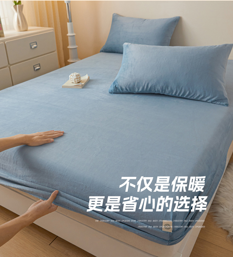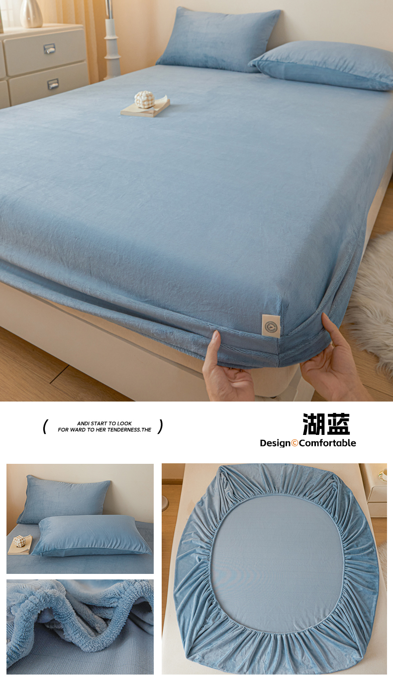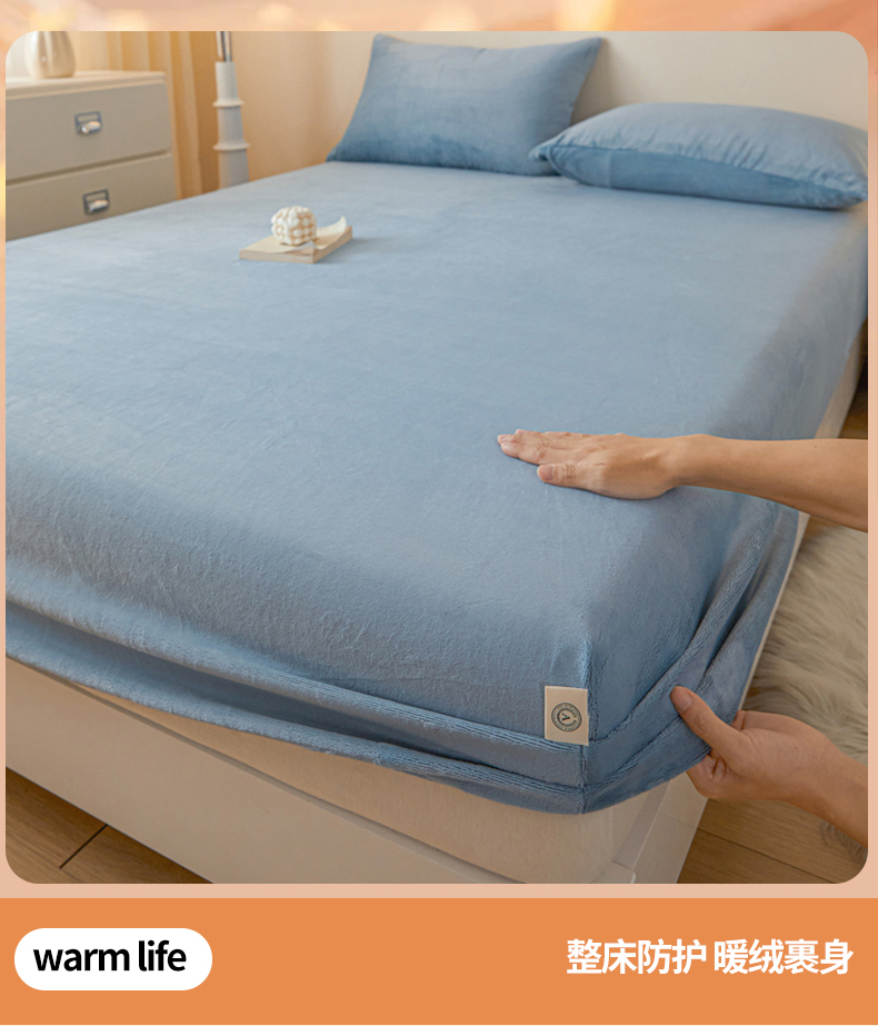 鑫钰 2024秋冬新款加厚牛奶绒防水床笠 湖蓝
