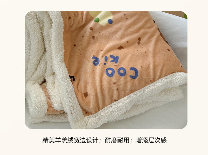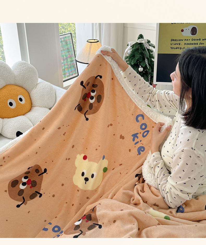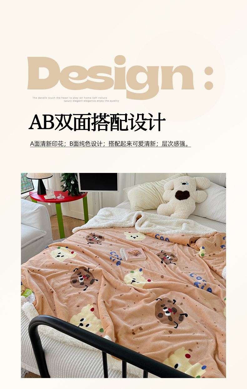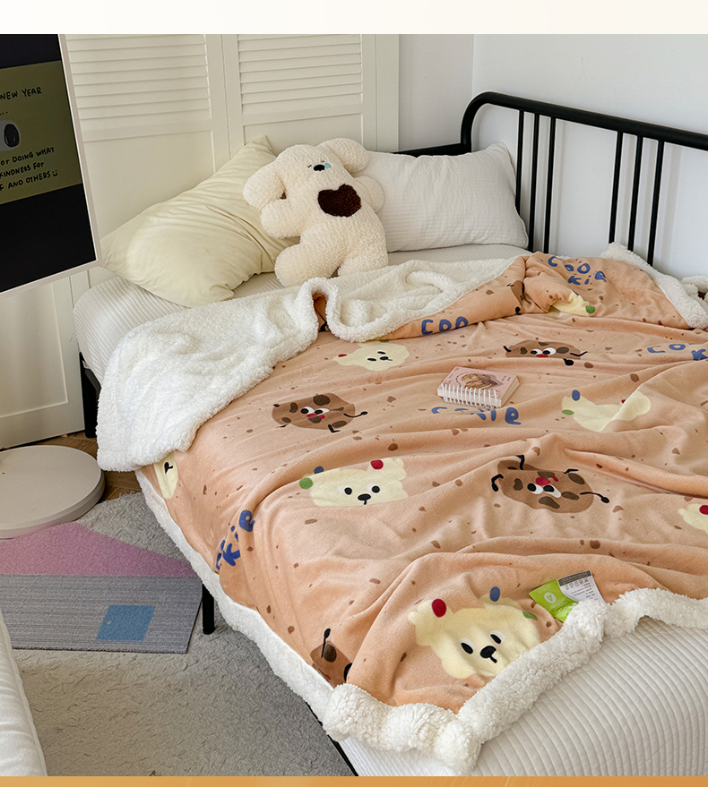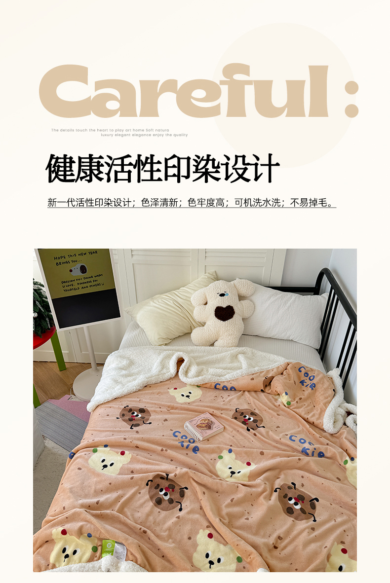 吉象家纺 2024新款高克重牛奶绒羊羔绒印花毛毯 曲奇饼干