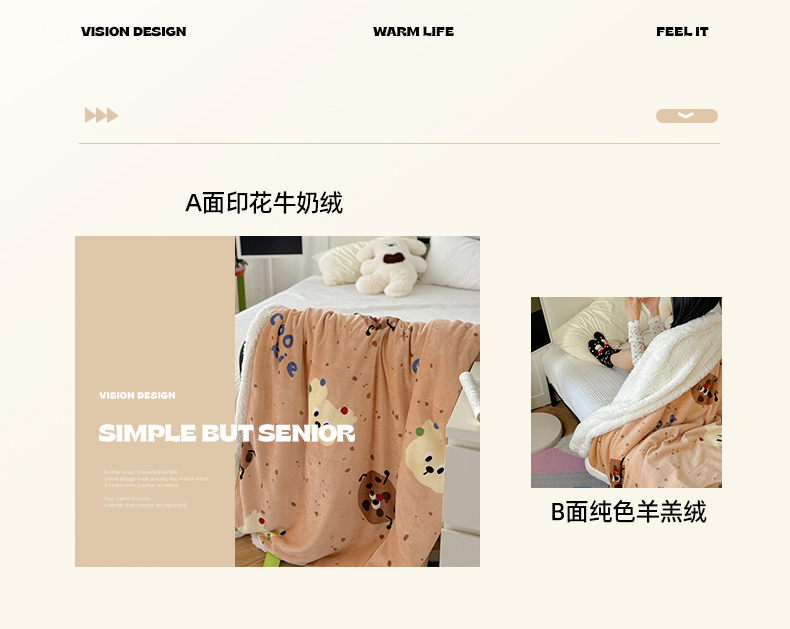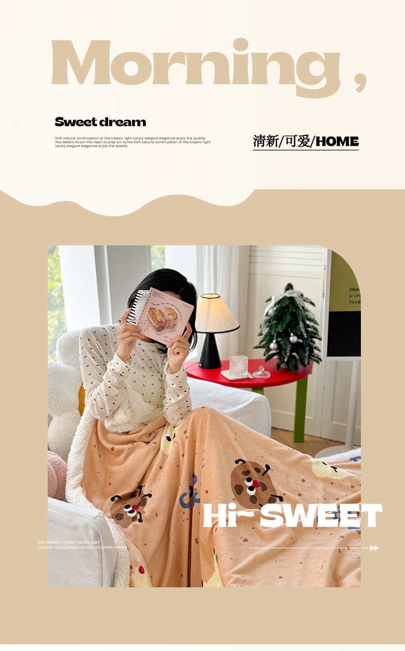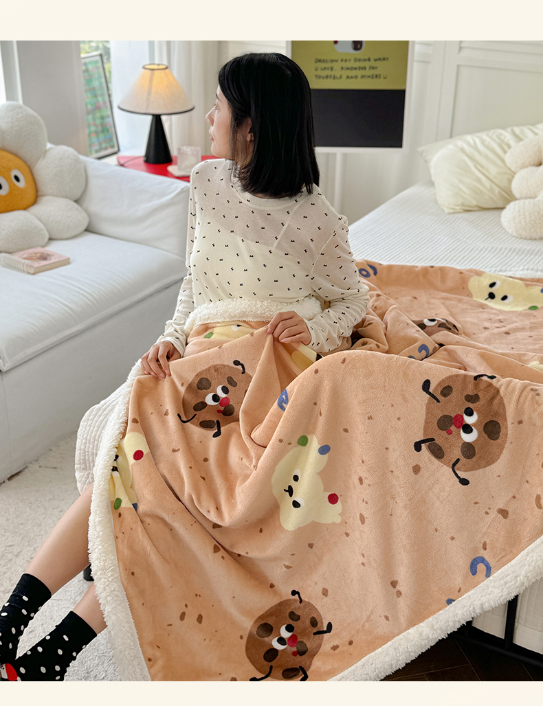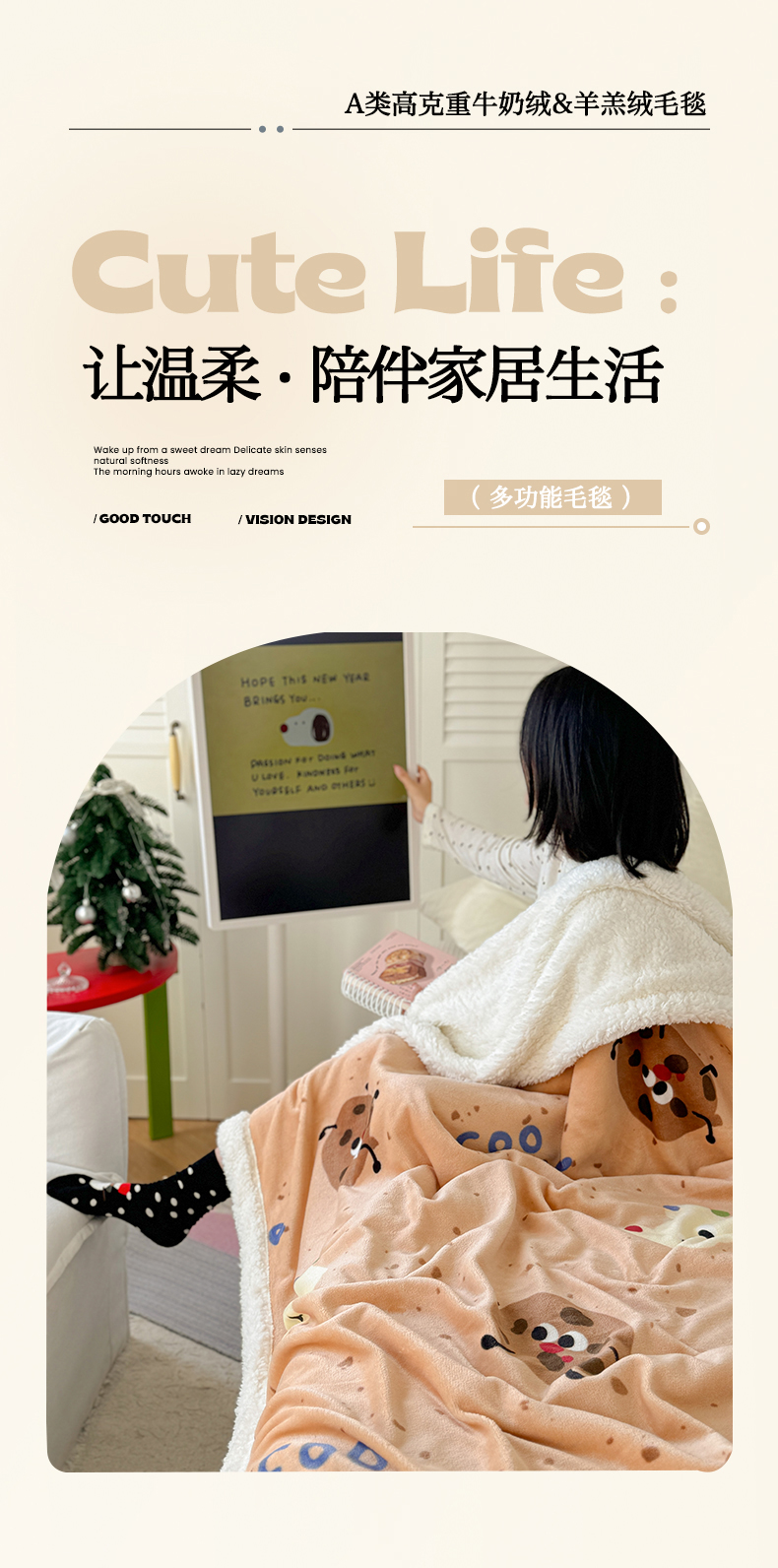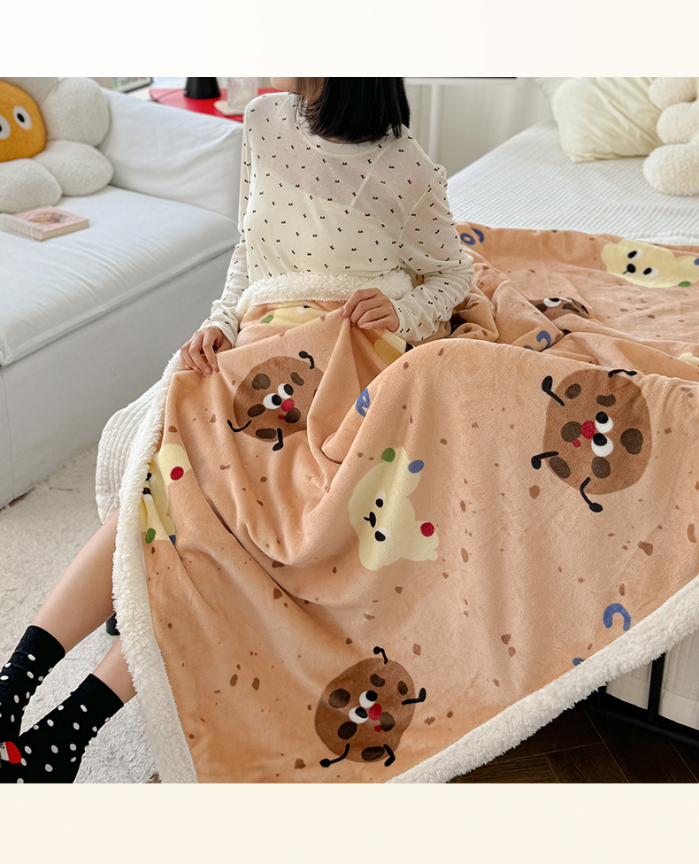 吉象家纺 2024新款高克重牛奶绒羊羔绒印花毛毯 曲奇饼干