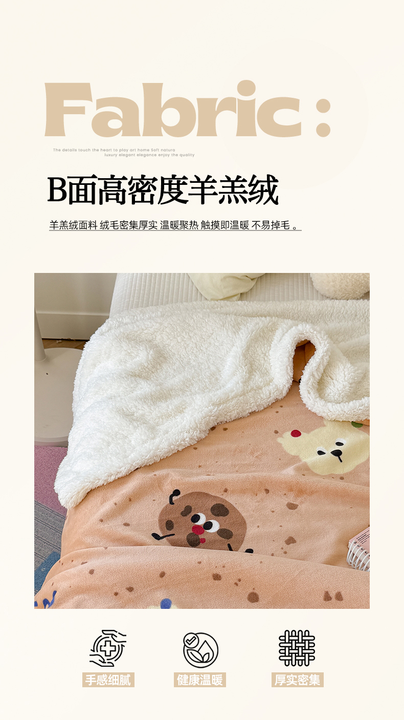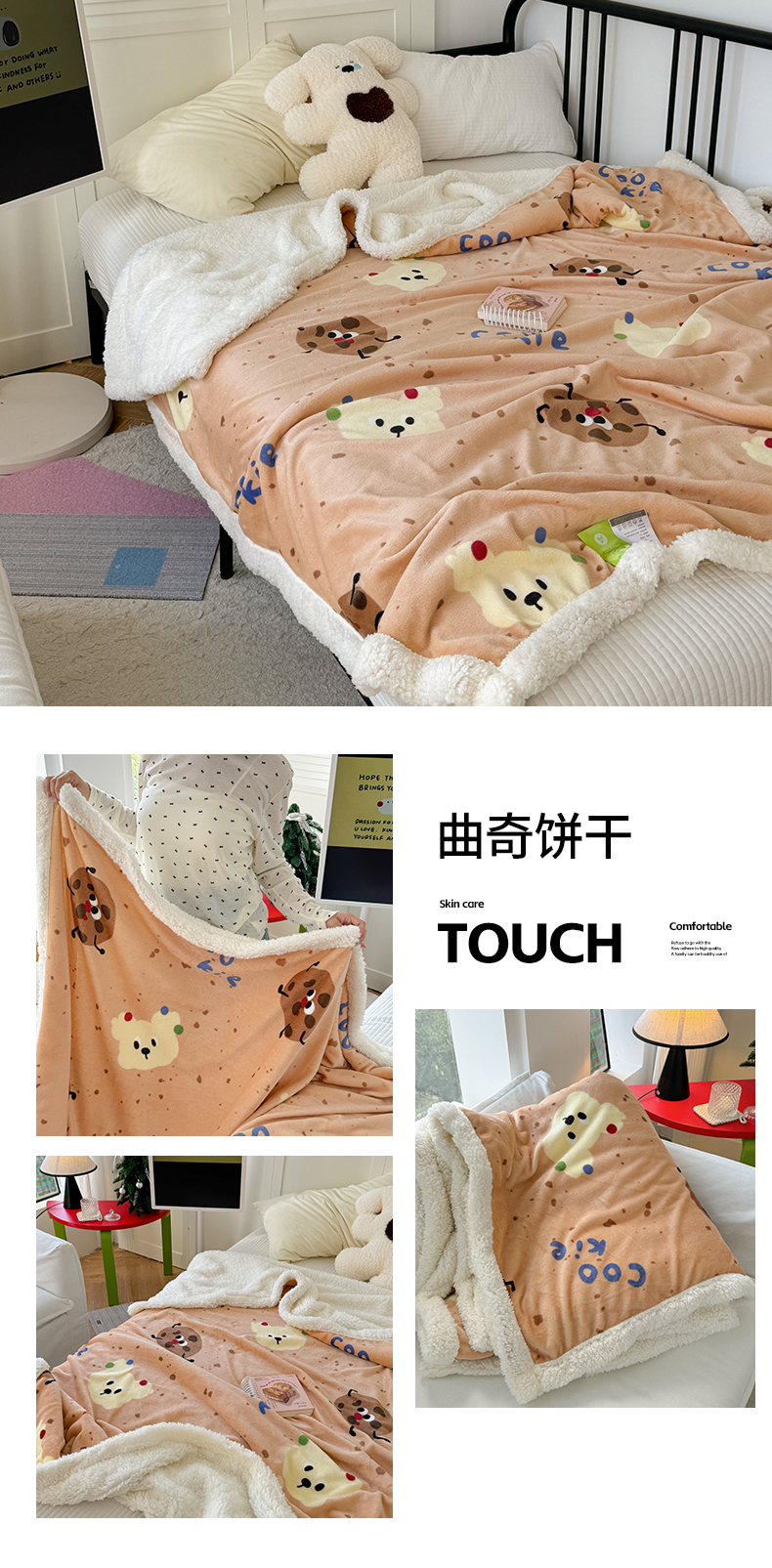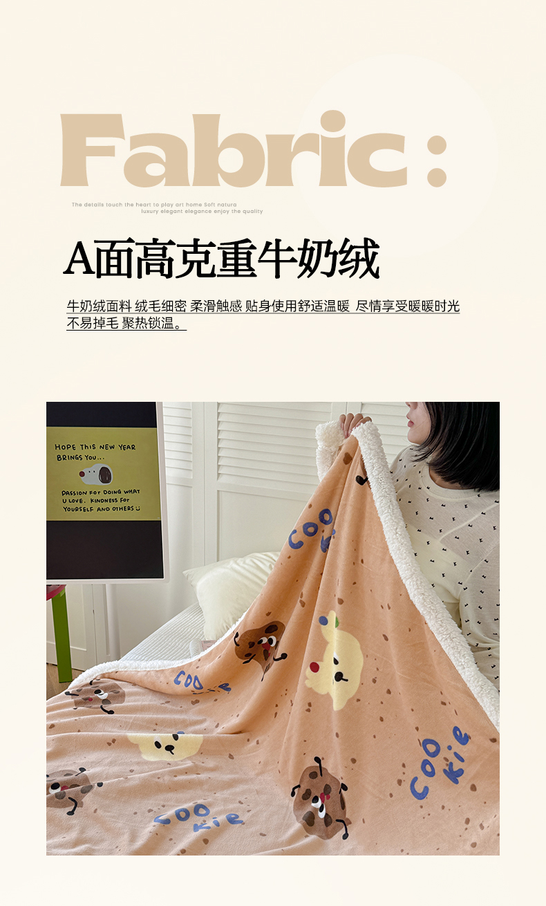 商品名称:吉象家纺 2024新款高克重牛奶绒羊羔绒印花毛毯 曲奇饼干