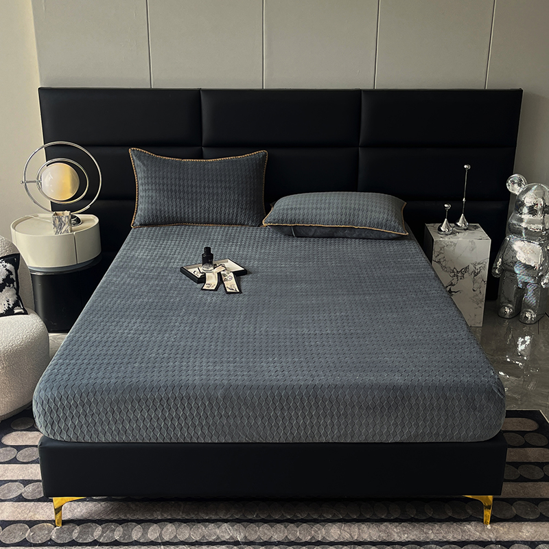 菡宝 2024新款素色烂花床笠 菱形雾兰