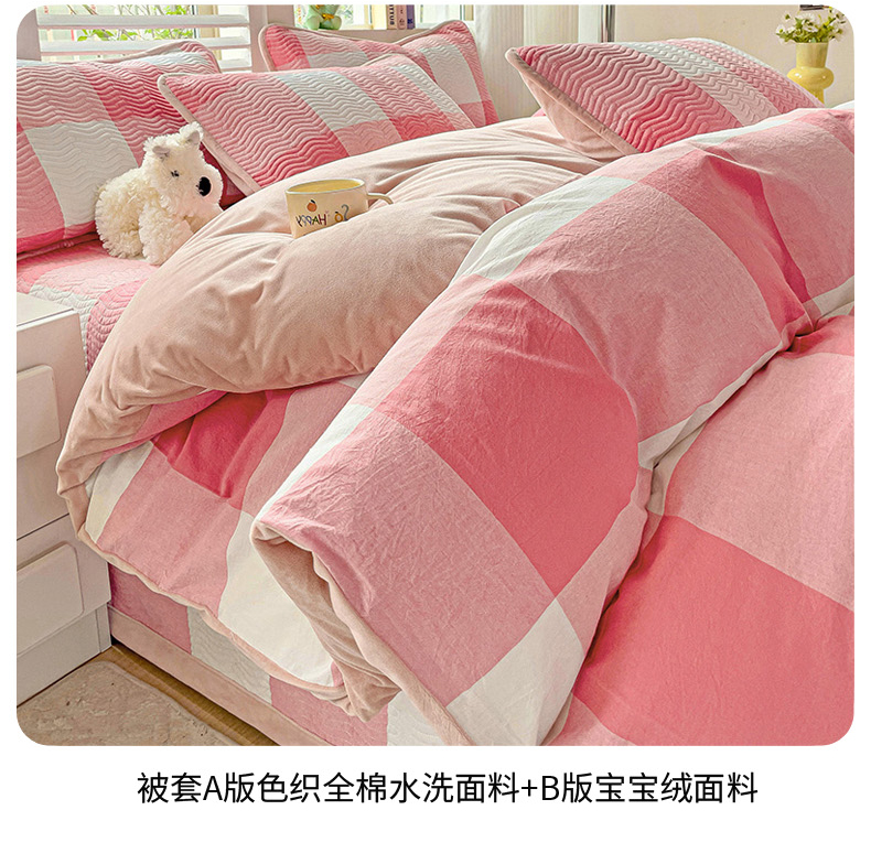 当前位置: 91家纺网 > 商品网购 > 床品套件 > 四件套 > 其它四件套 > 羽爱家纺 2024新款全棉色织水洗宝宝绒床盖四件套 绿橘