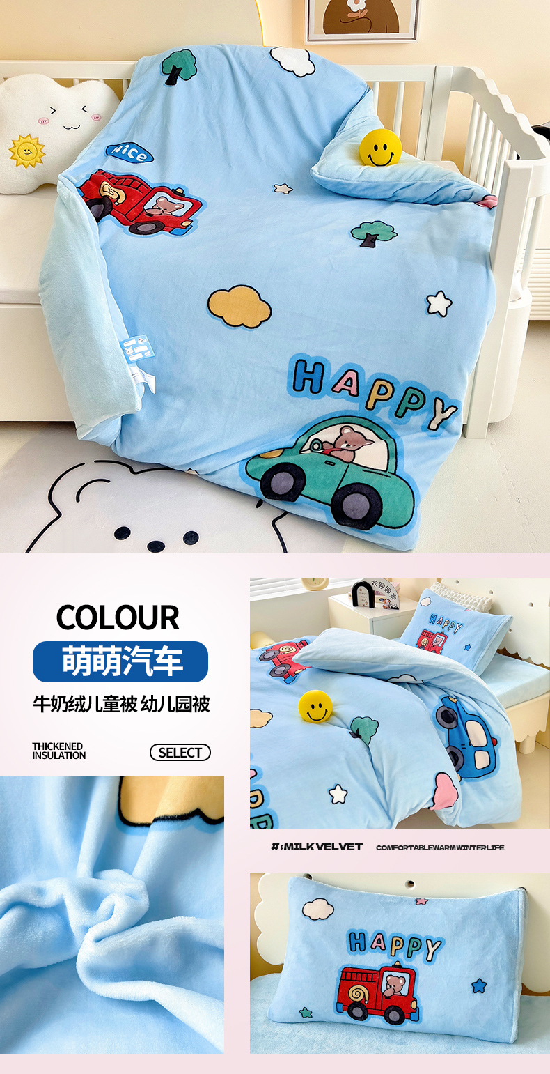 商品名称:嗨生活 2025新款牛奶绒儿童被幼儿园冬被春秋被 萌萌汽车