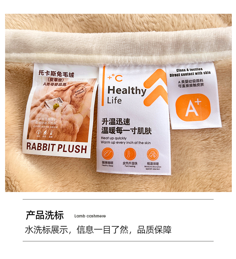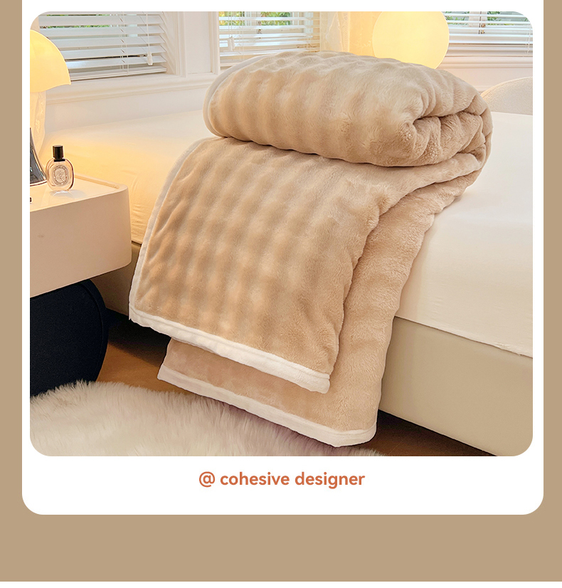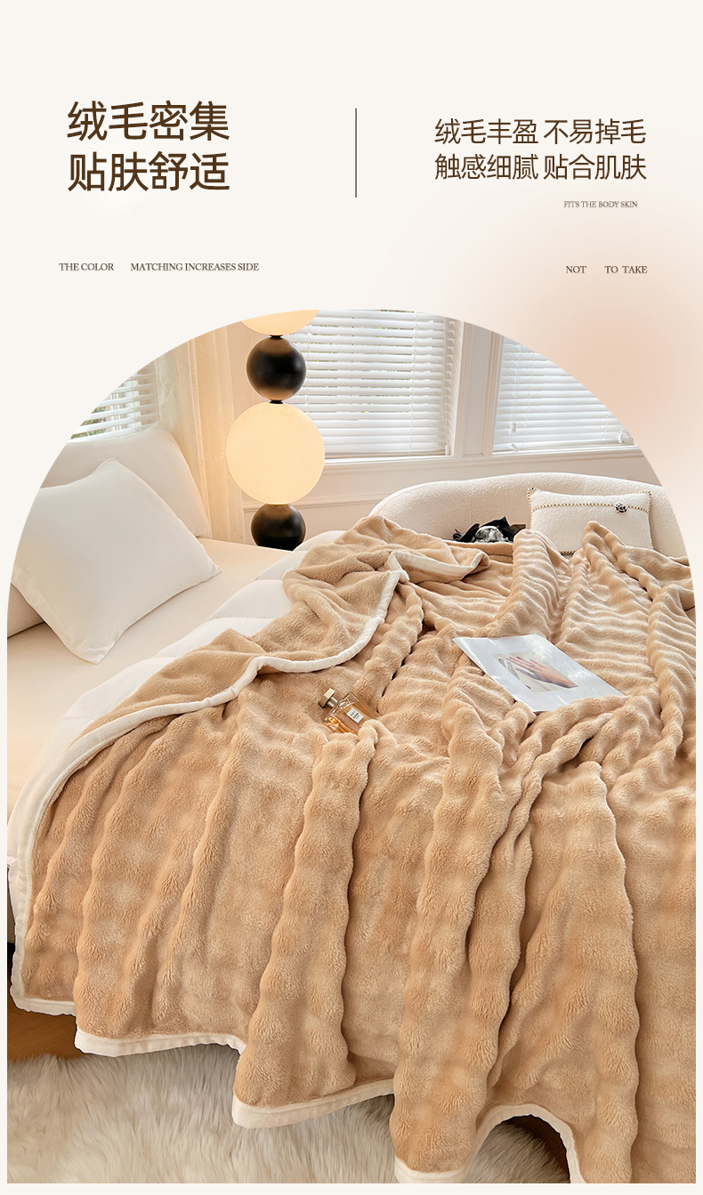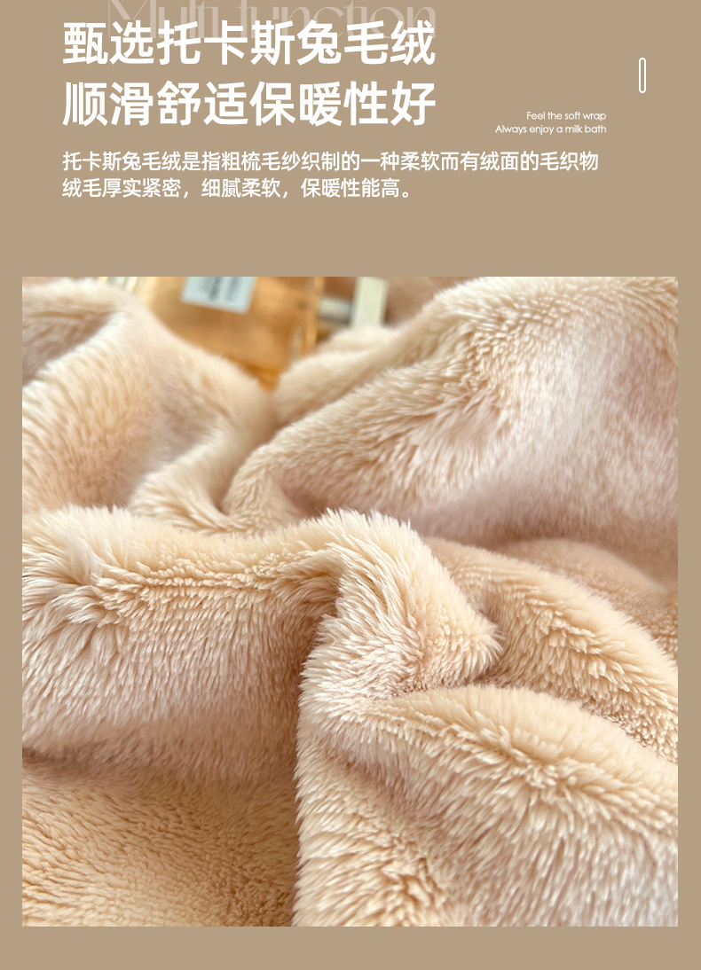 商品名称:悦织湾家纺 2025新款托卡斯仿兔毛绒毛毯第三批绸布包边新款加厚保暖多功能毯子保暖盖毯 可可奶棕