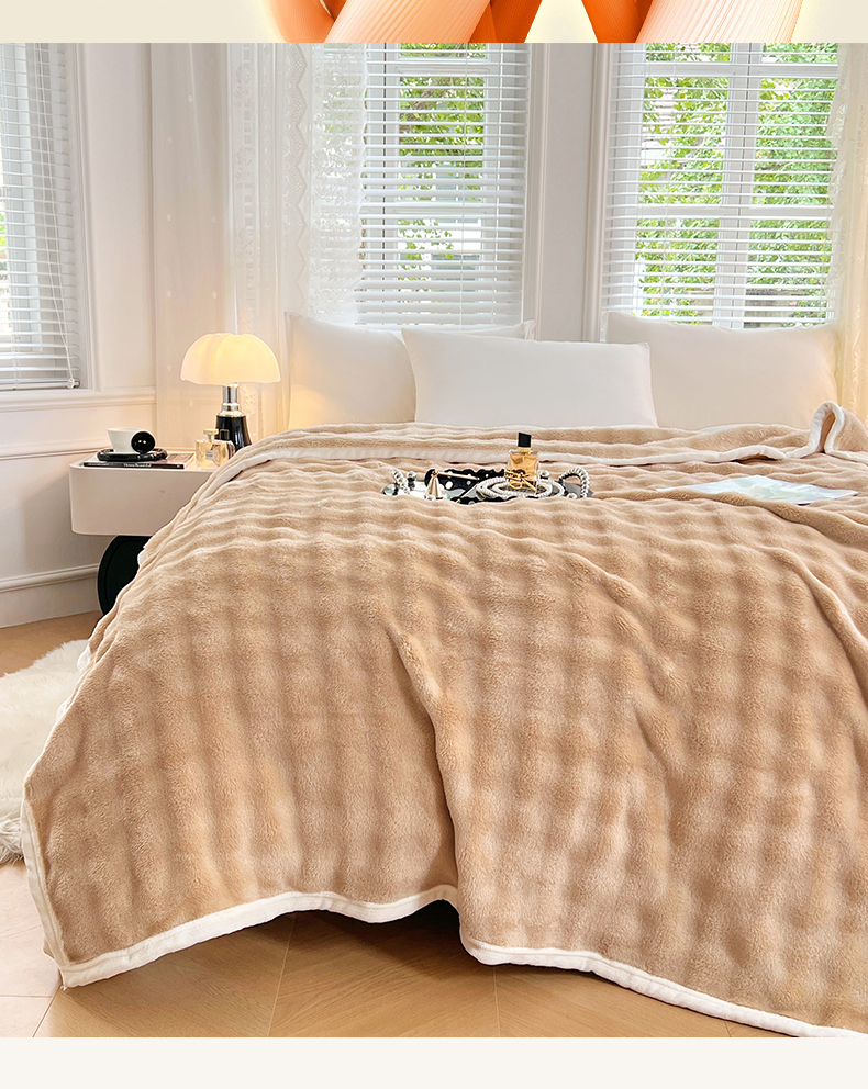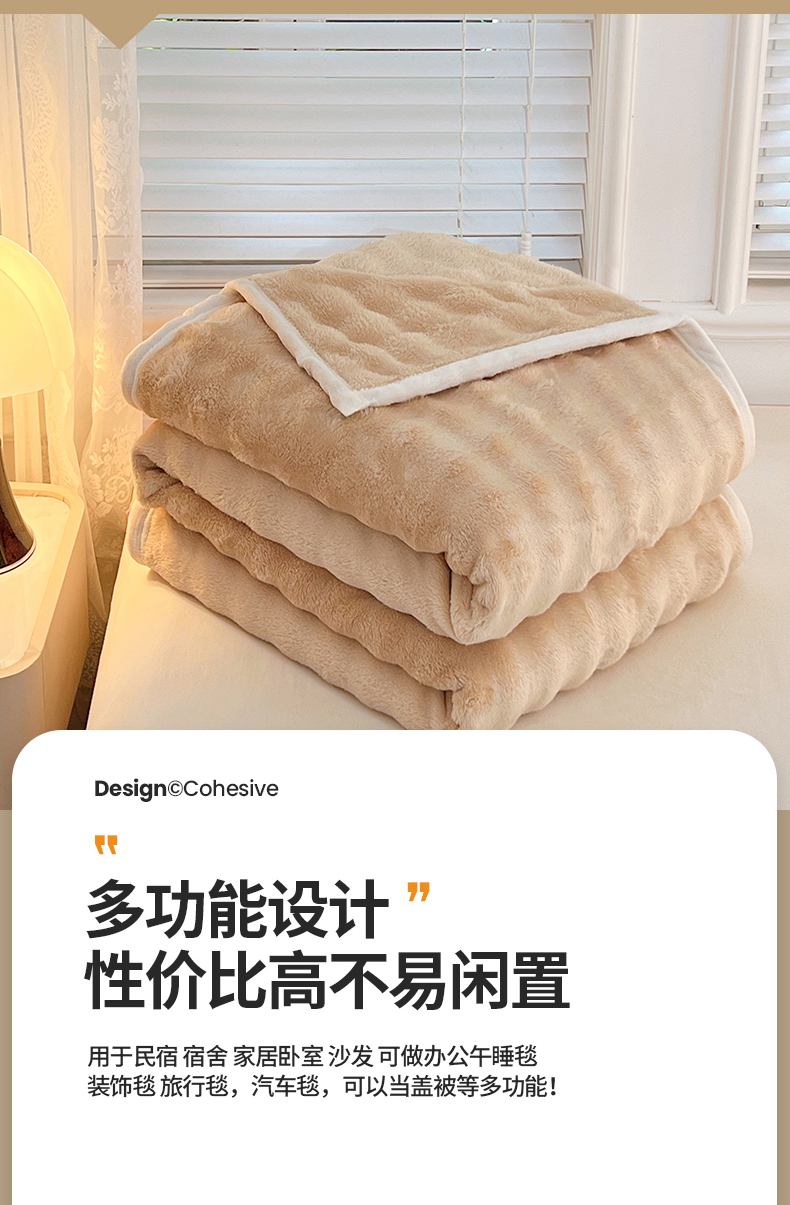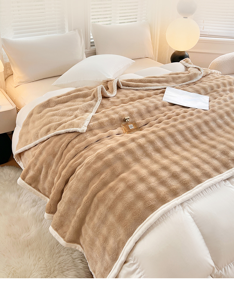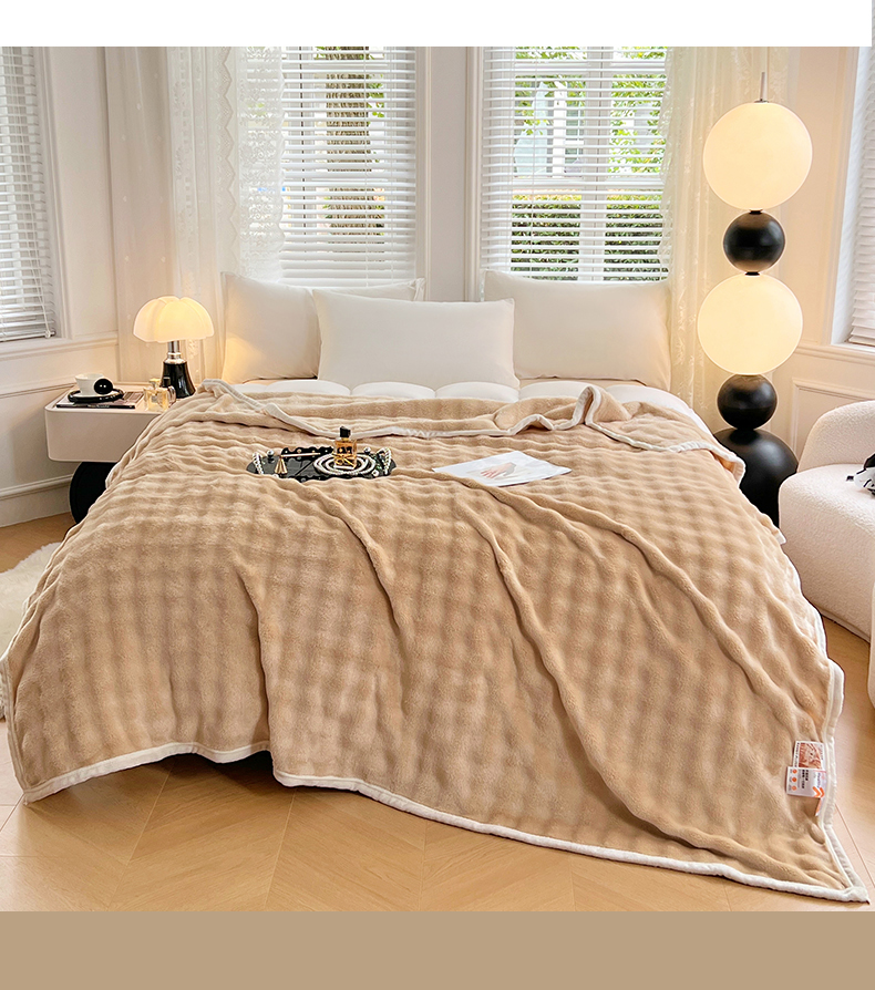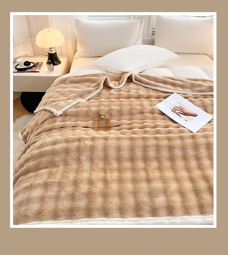 悦织湾家纺 2025新款托卡斯仿兔毛绒毛毯第三批绸布包边新款加厚保暖多功能毯子保暖盖毯 可可奶棕