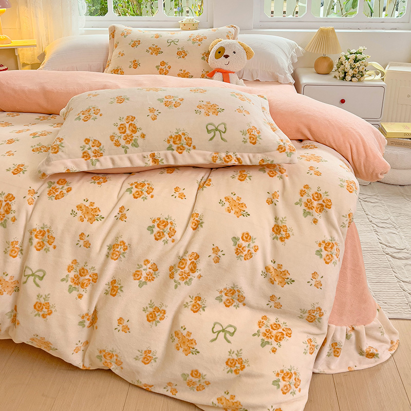 乐童2024新款吊边款牛奶绒四件套 爱意满满,爱意满满