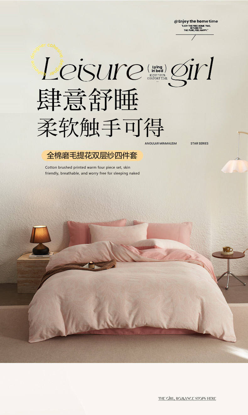 当前位置: 91家纺网 > 商品网购 > 床品套件 > 四件套 > 普通磨毛四件套 > 慕尚家纺 2025新款磨毛提花双层纱四件套 森木粉