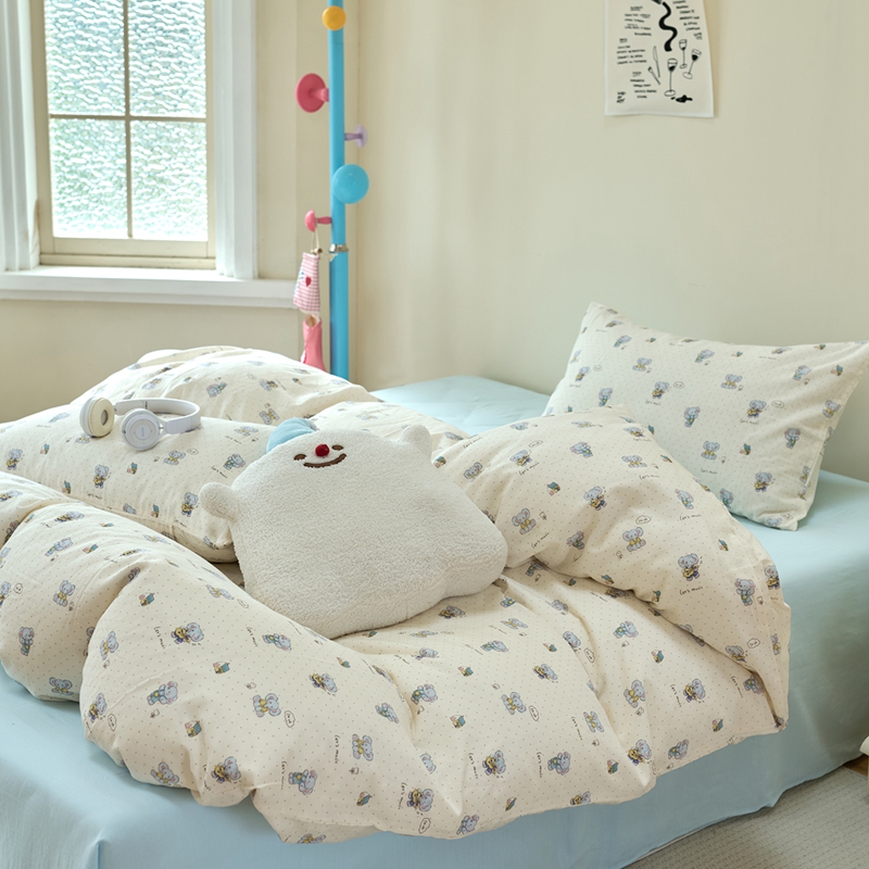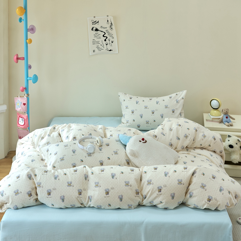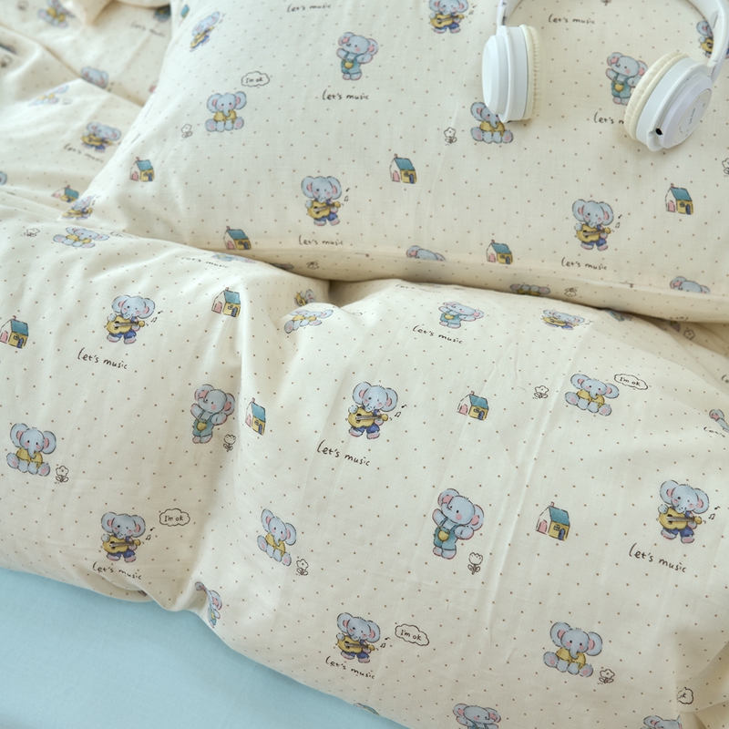 洋铭区(原狠狠爱) 2024新款无边全棉双层纱四件套 顽皮小象