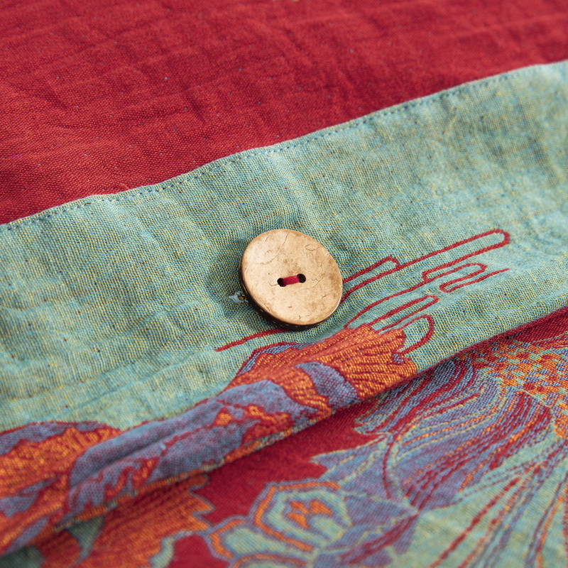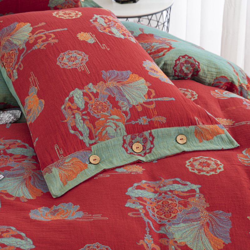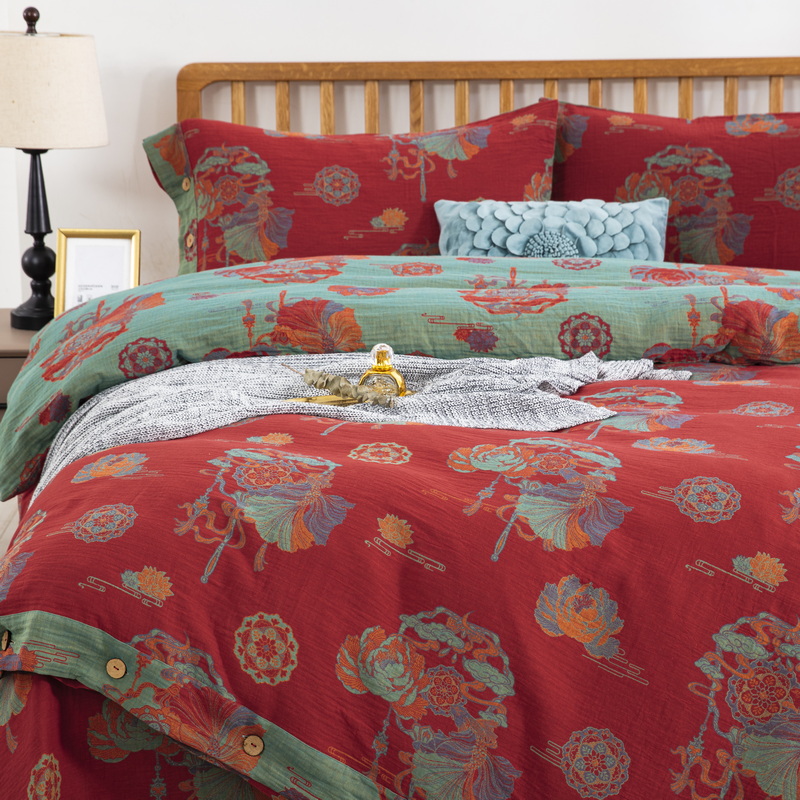 鲁爱 2025新款全棉色织双层纱纽扣款四件套 荷塘月色