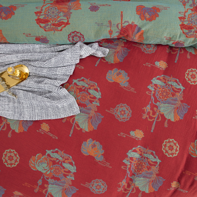 (总)鲁爱家纺供货 2025新款全棉色织提花羊绒蛋白秋冬被,曼妙花园-灰,曼妙花园-豆沙,百福-红,龙凤呈祥-红