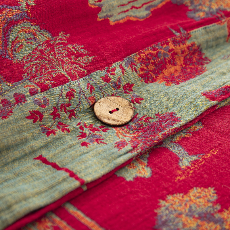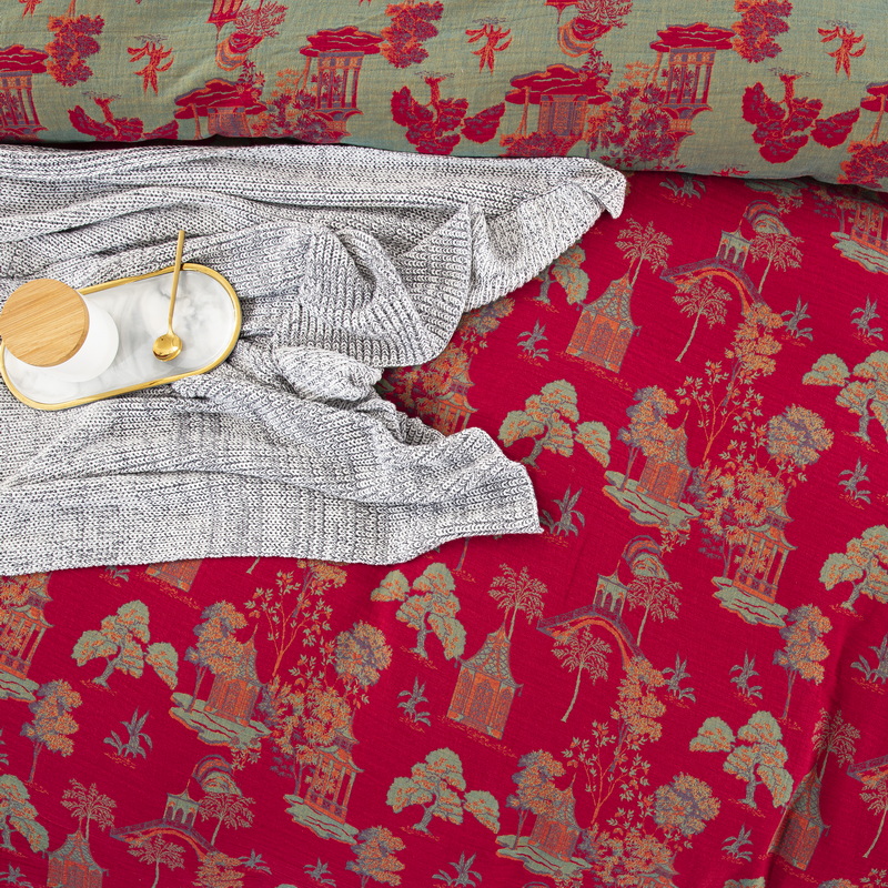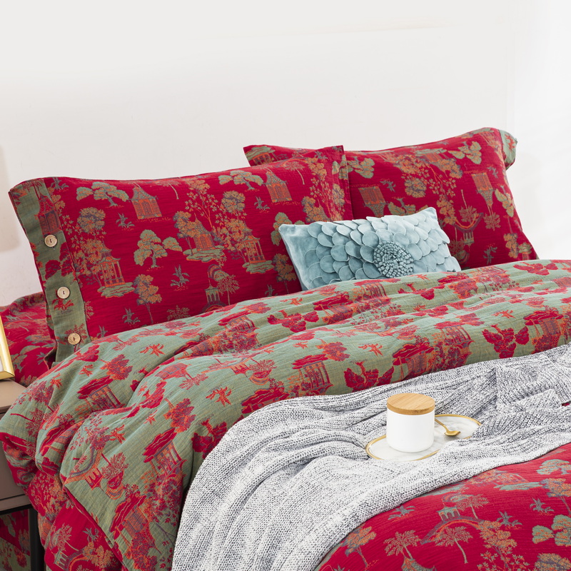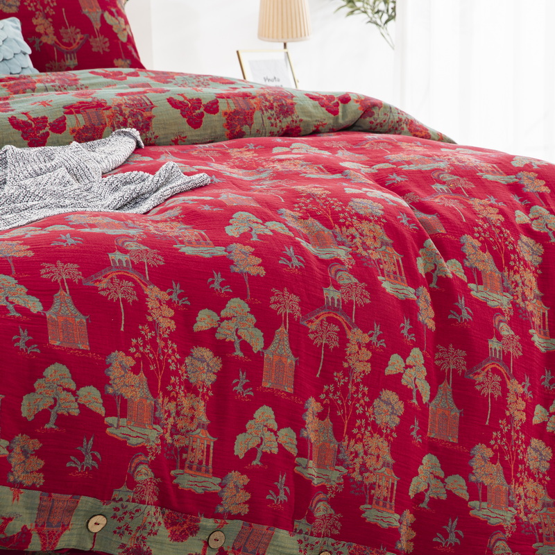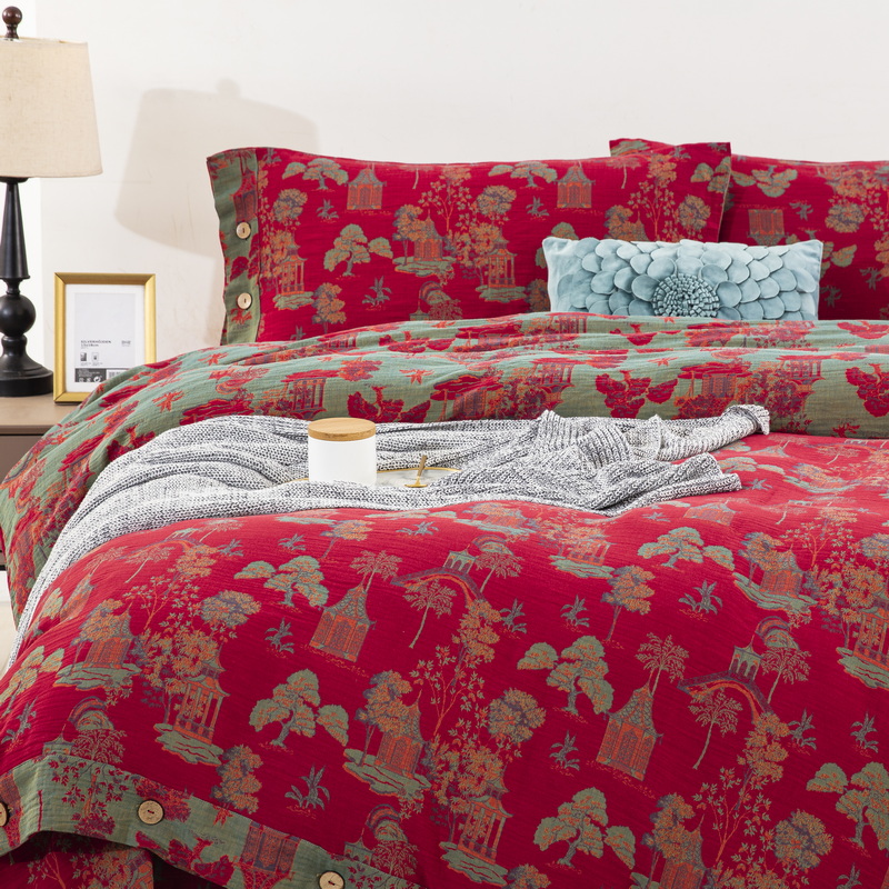 商品名称:鲁爱 2025新款全棉色织双层纱纽扣款四件套 蓝调-红