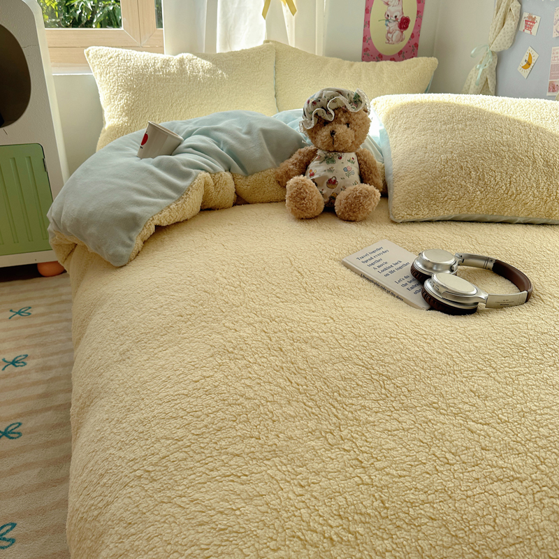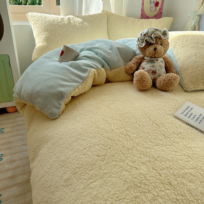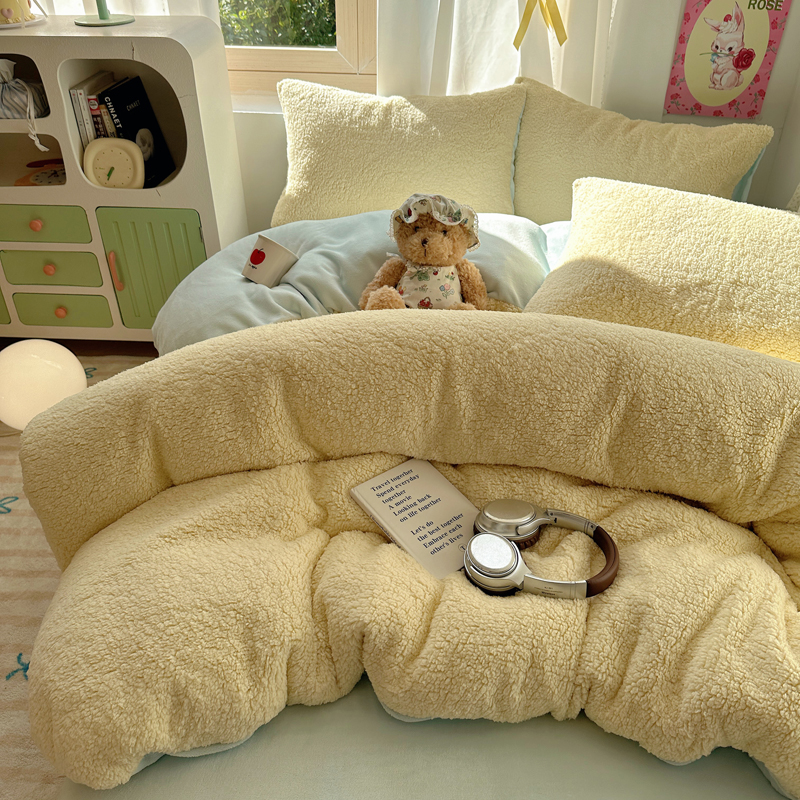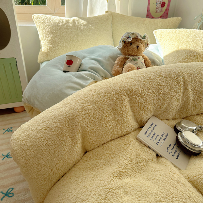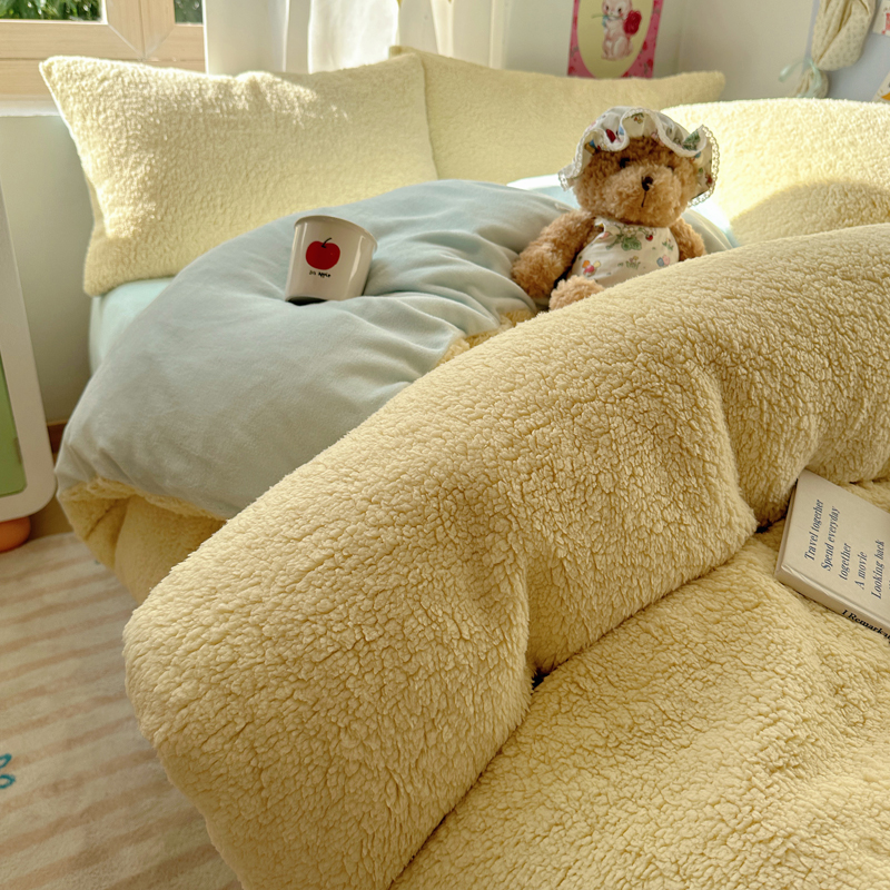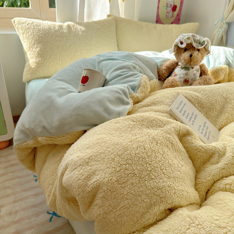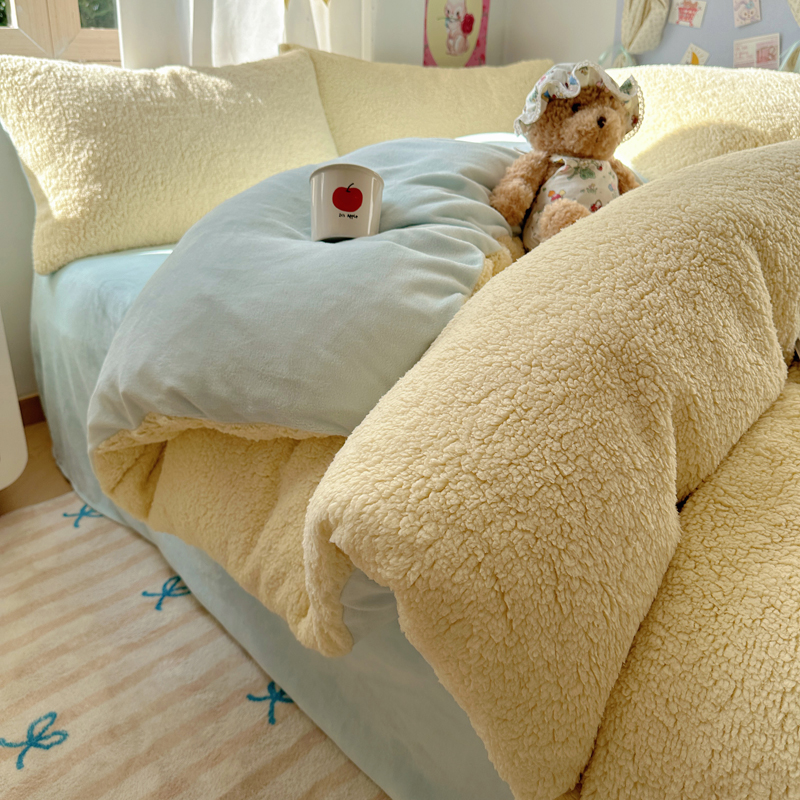 顾里家纺 2024新款ins韩系牛奶羊羔绒套件 羊羔黄蓝