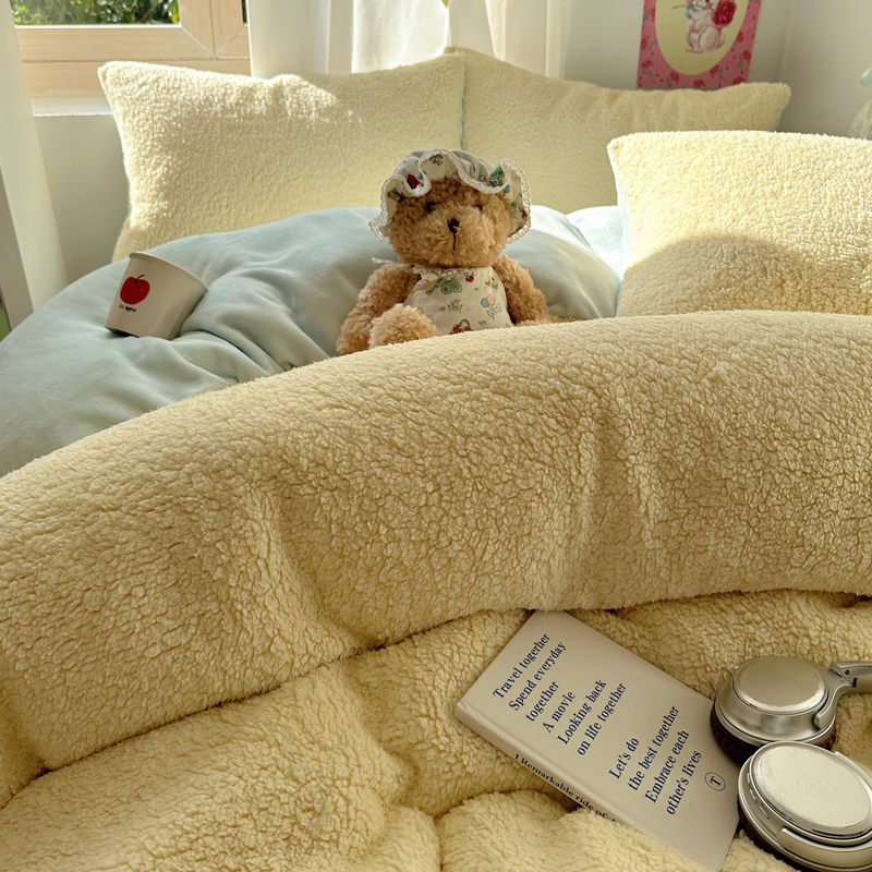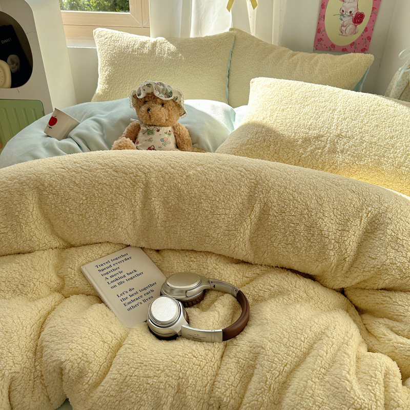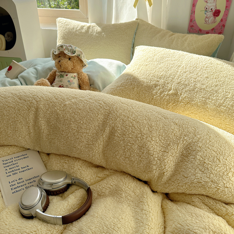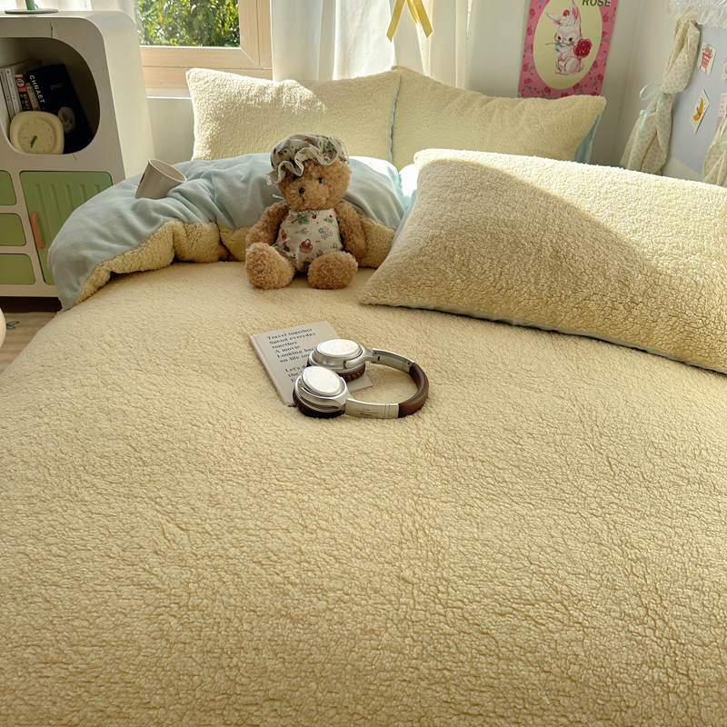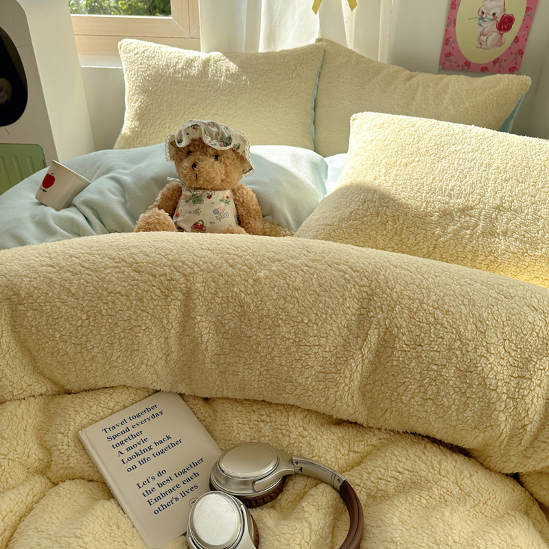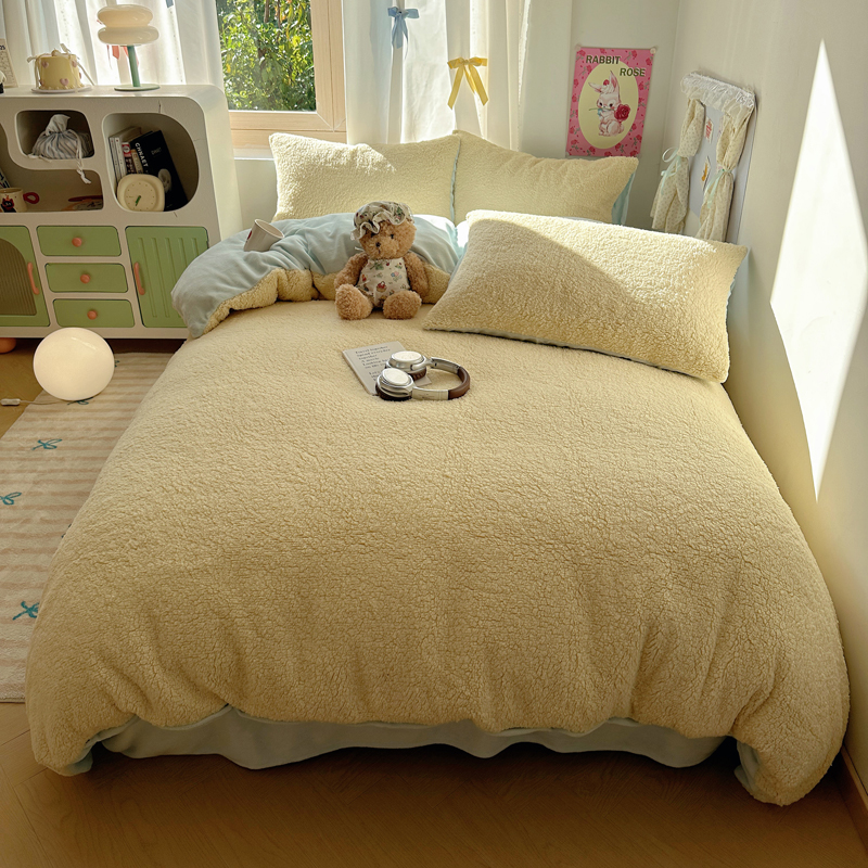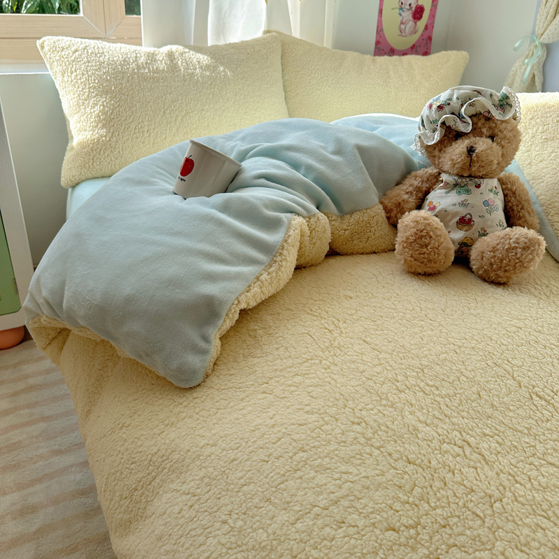 顾里家纺 2024新款ins韩系牛奶羊羔绒套件 羊羔黄蓝