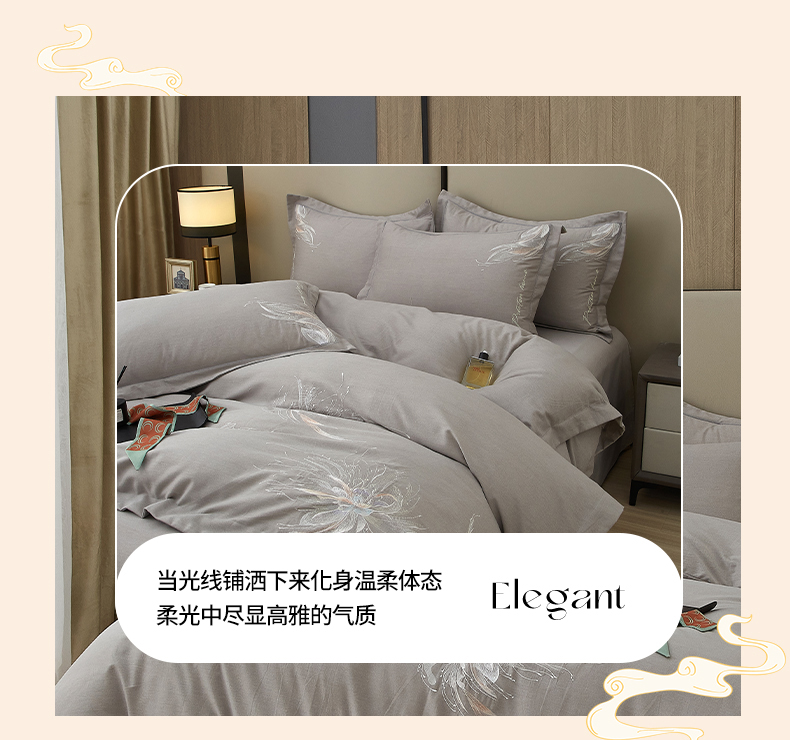 (总)金纱玉纺家纺 2024新款丝加棉大提花工艺四件套,爱卡-优雅灰,奥菲尔-浅驼,花香情缘-玉色,华丽-粉玉,丽资-紫雪青,玛雅盛宴-雾霾灰,西娅-浅豆沙,心语-兰灰,伊利亚-灰驼