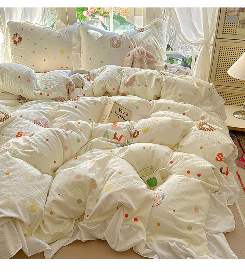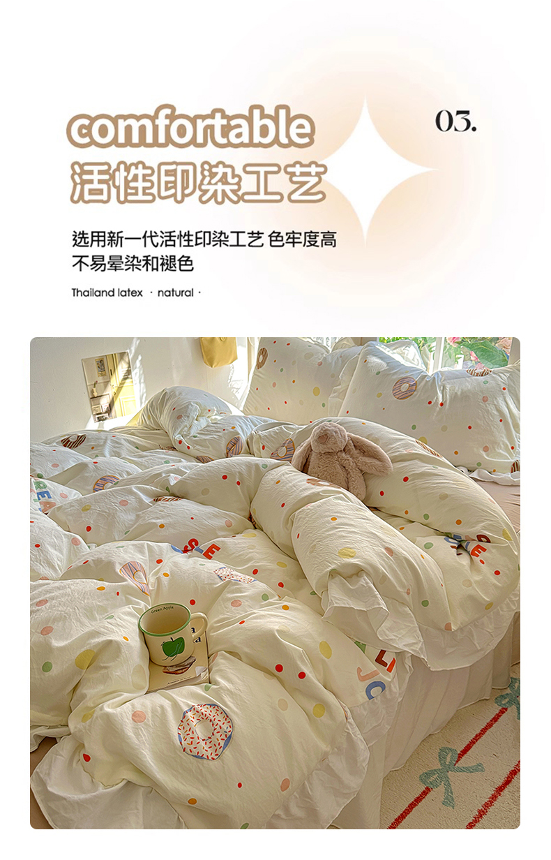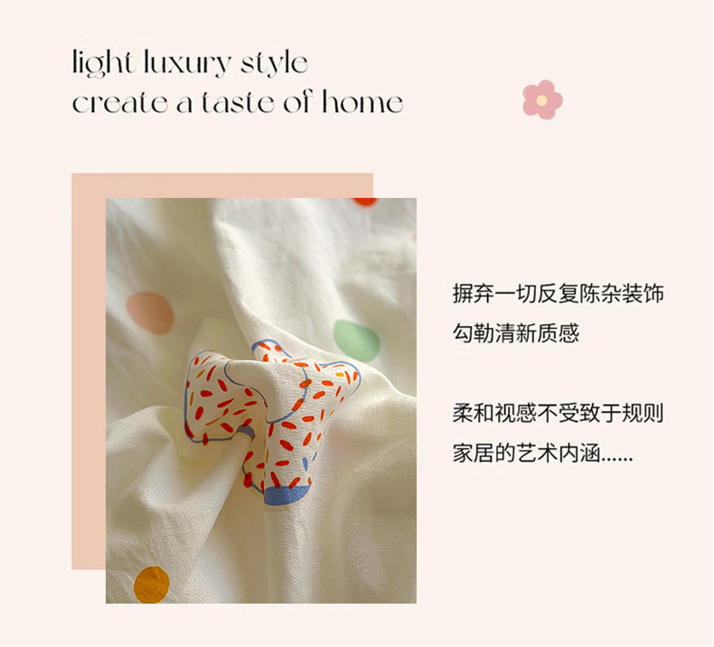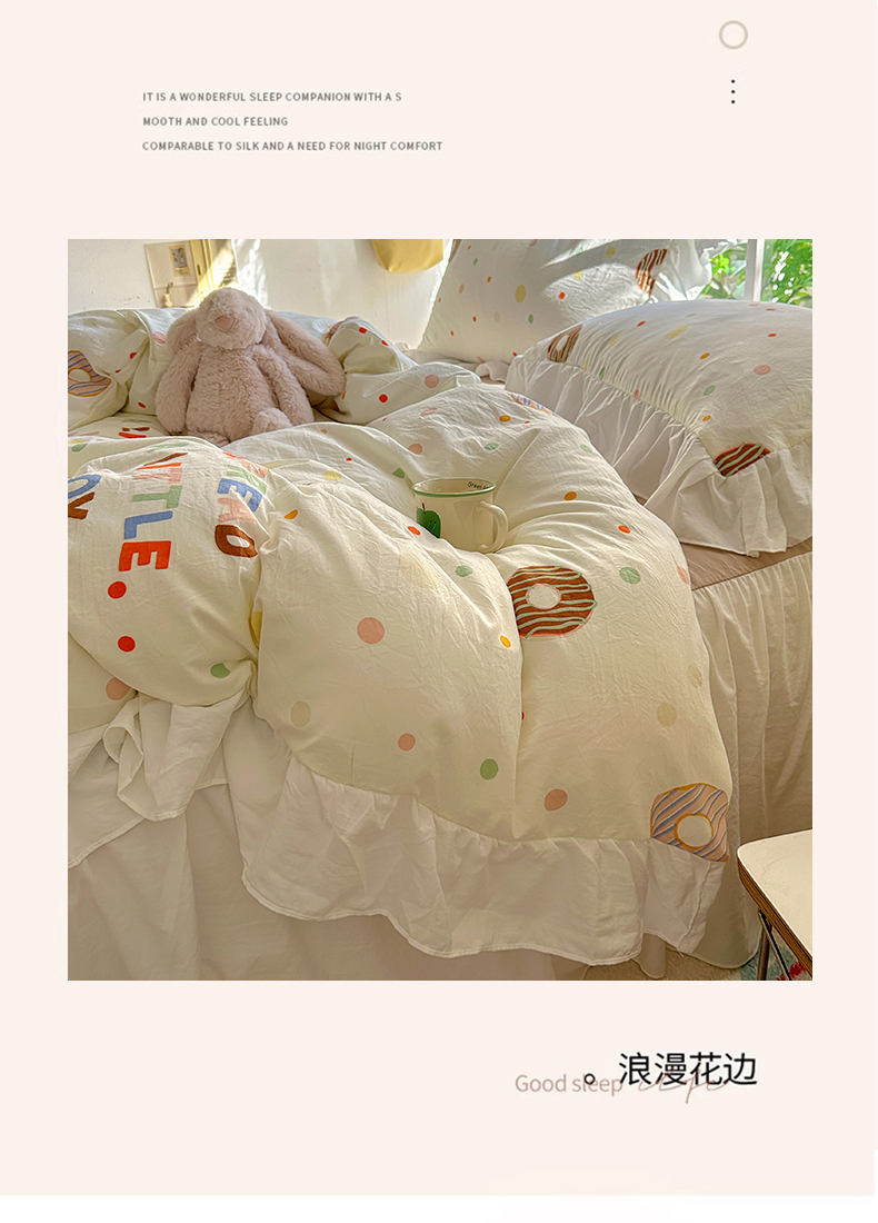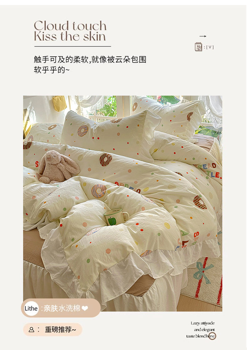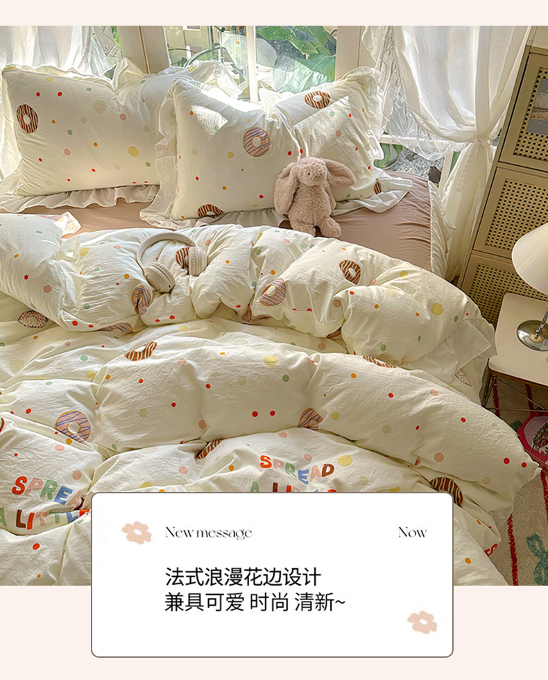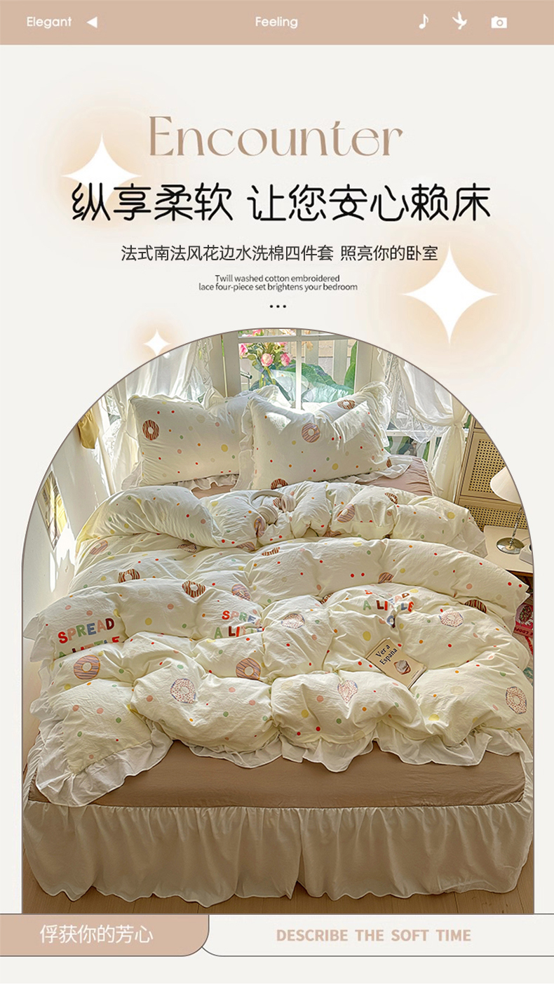 当前位置: 91家纺网 > 商品网购 > 床品套件 > 四件套 > 水洗棉四件套 > 家贝爱 2024新款南法风花边水洗棉四件套 南法风-传播快乐