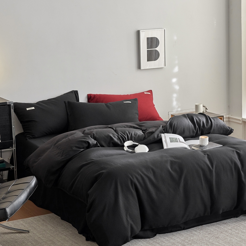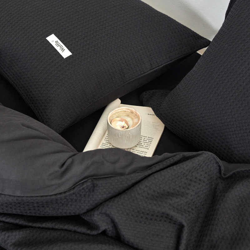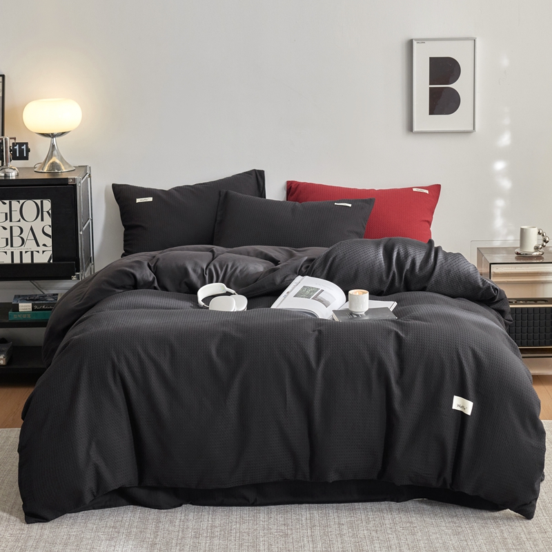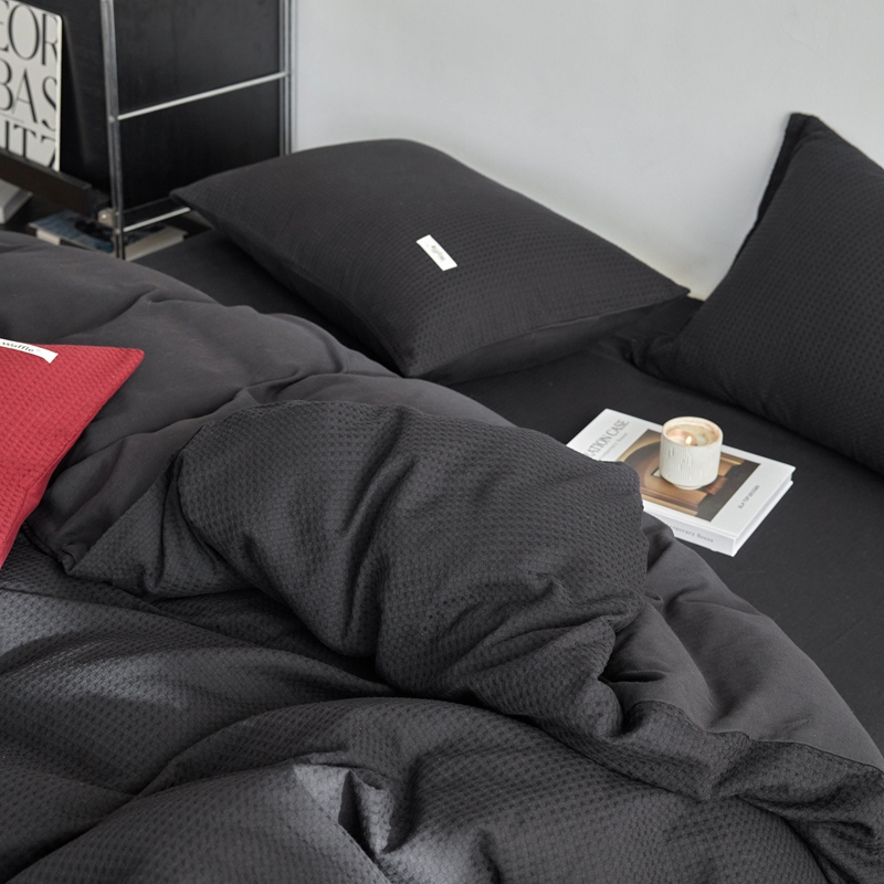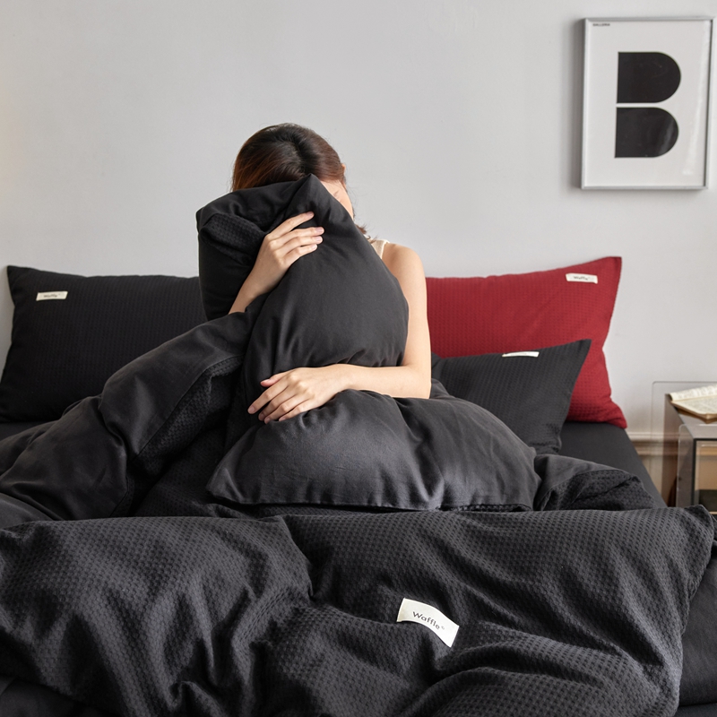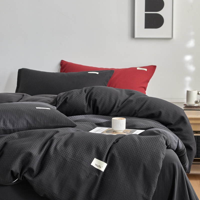 当前位置: 91家纺网 > 商品网购 > 床品套件 > 四件套 > 其它四件套 > 简家居 2024新款华夫格新颜色混搭系列四件套 华夫格夜阑黑(枕套夜阑黑+安哥拉红)