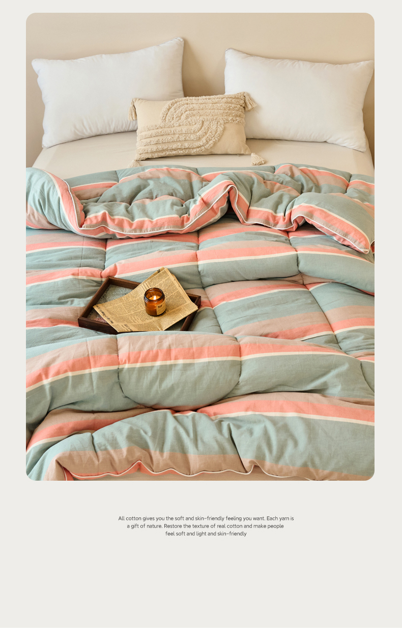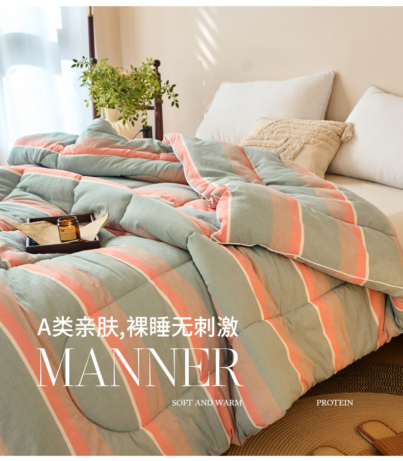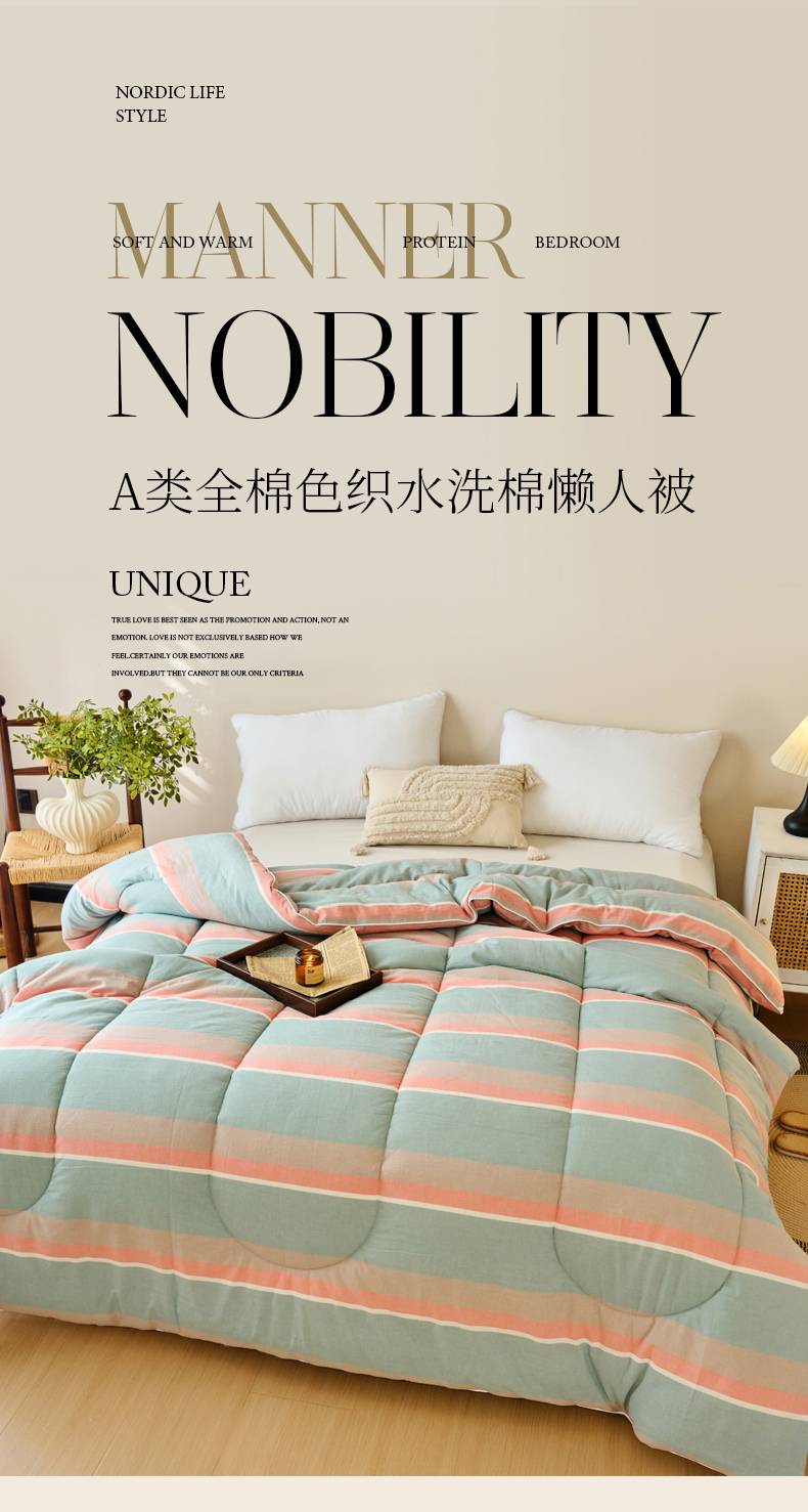 被子 > 冬被 > 买家秀 不断货)A类母婴级简约格子纯棉无印风全棉色织水洗棉被子春秋被秋冬被被芯空调被全棉水洗棉被子 约定