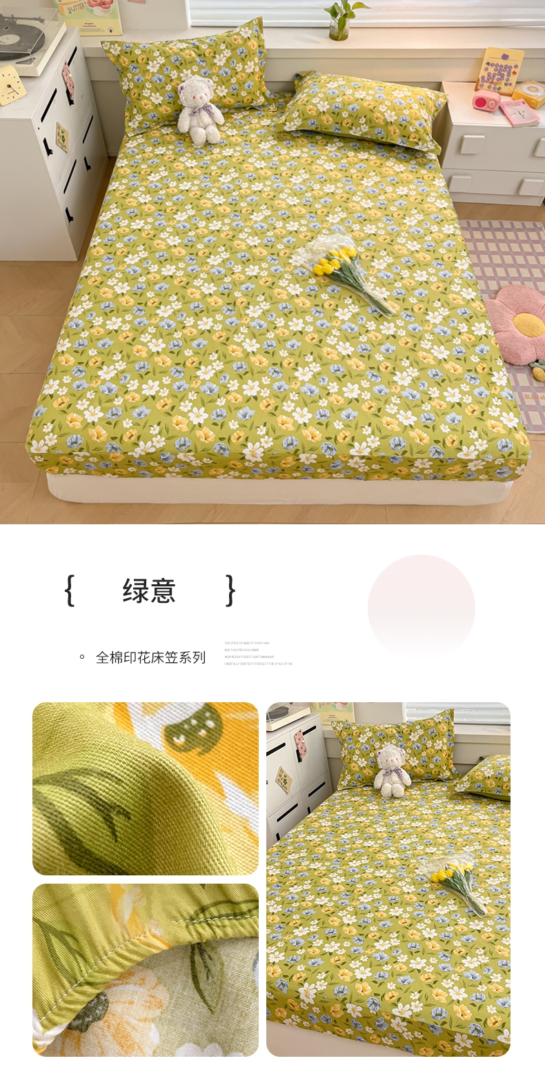• 91家纺网 家纺一手货源 找家纺 A类母婴级卡通花卉儿童纯棉全棉床单纯棉全棉床笠全棉纯棉床单全棉纯棉床笠三件套 绿意