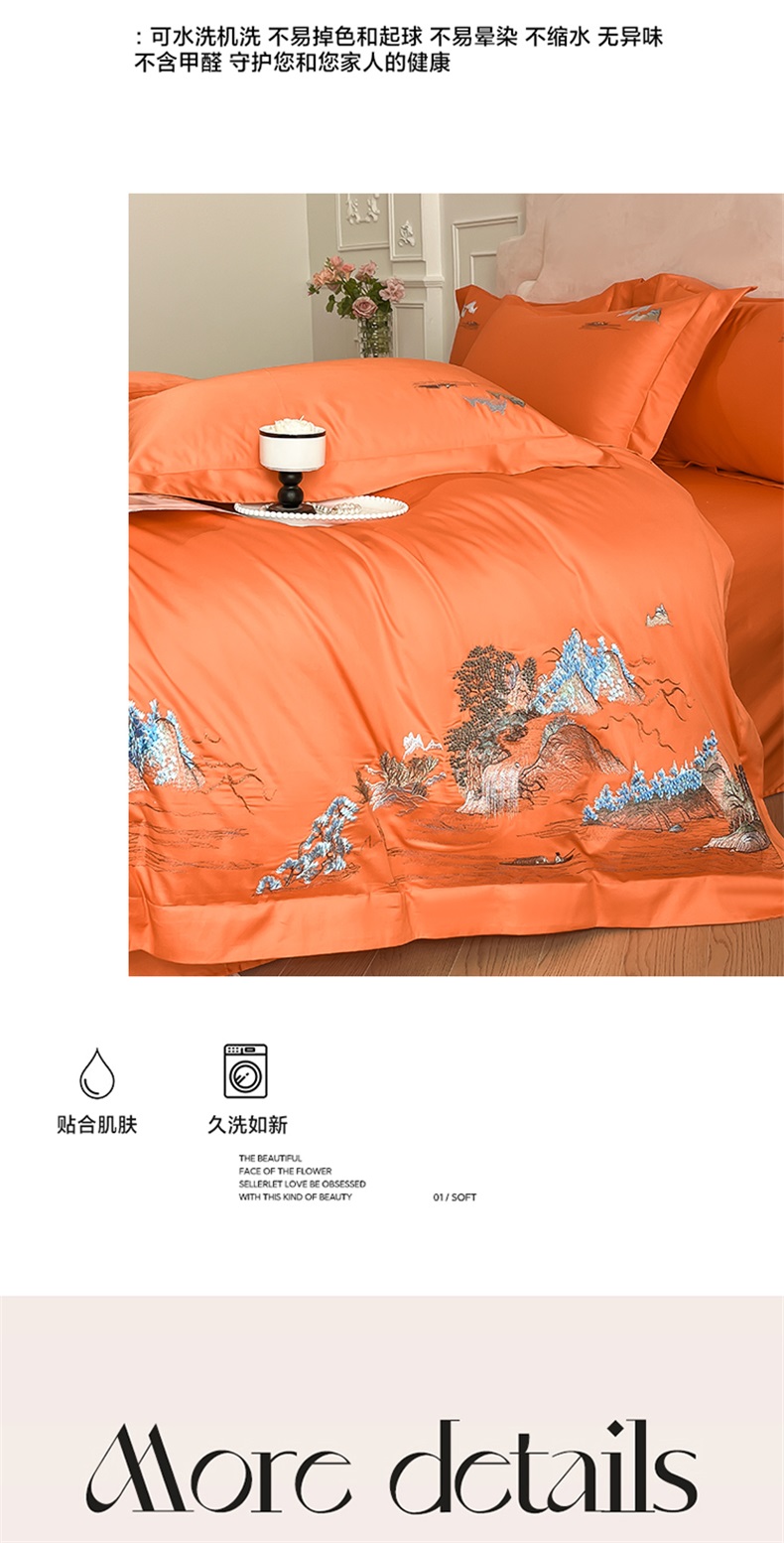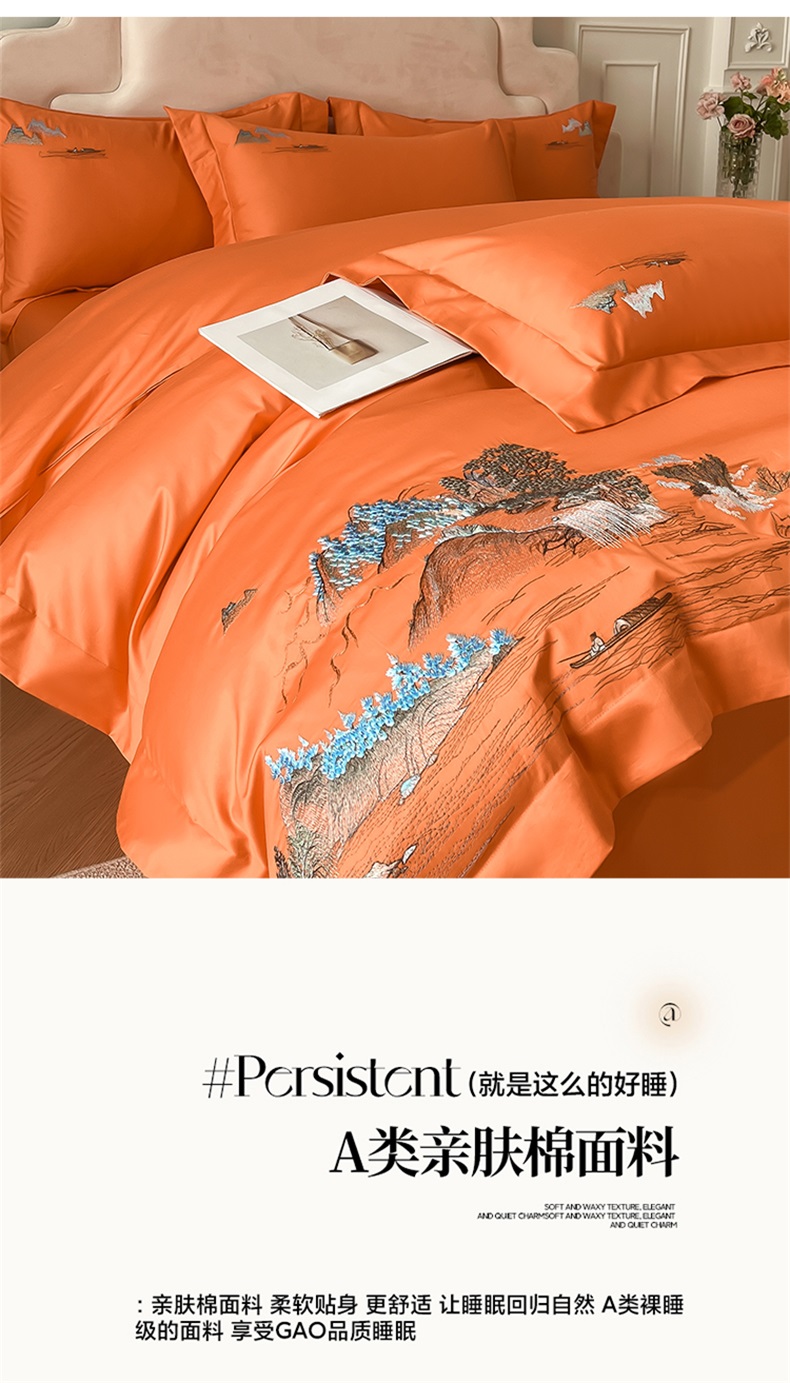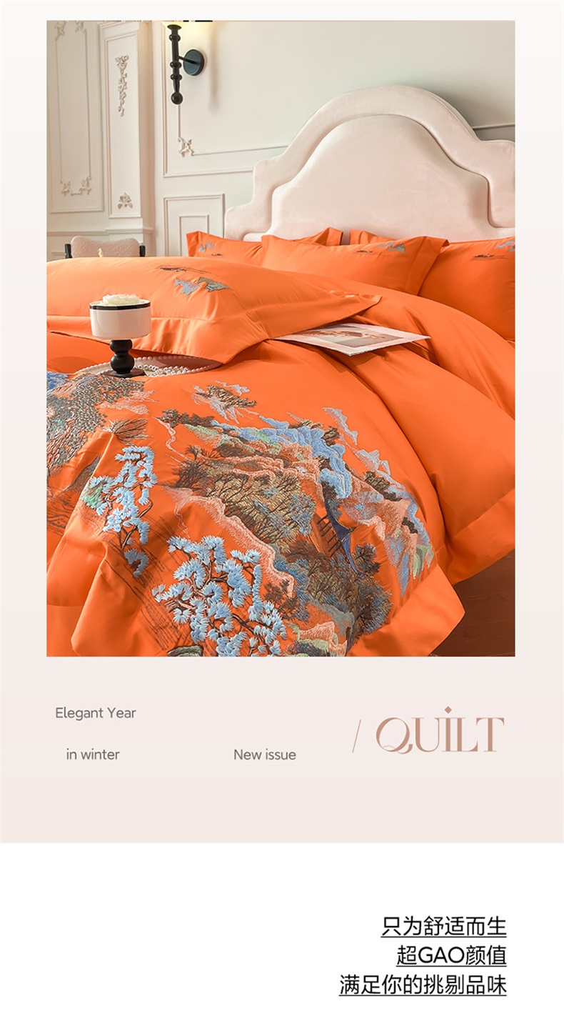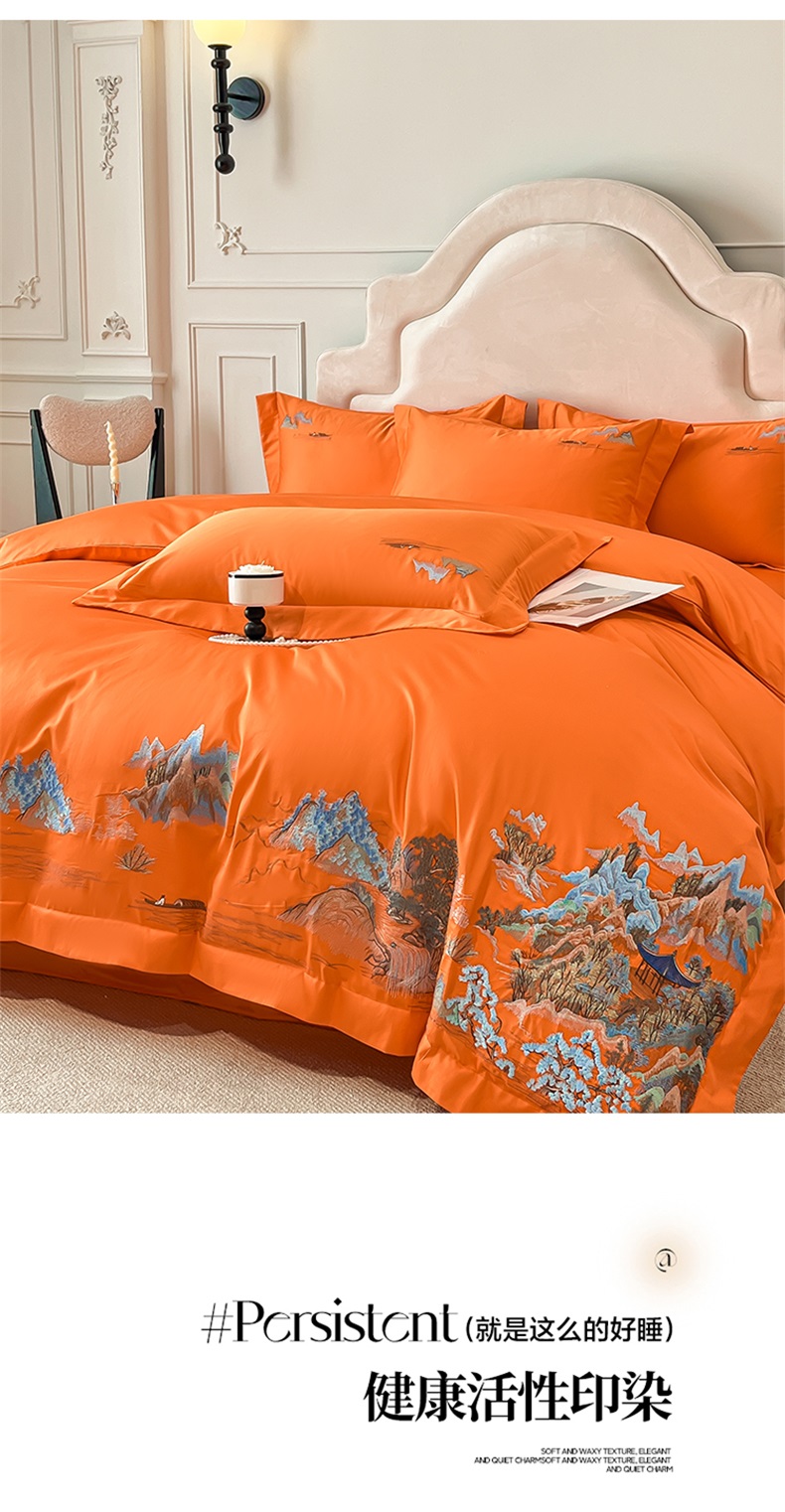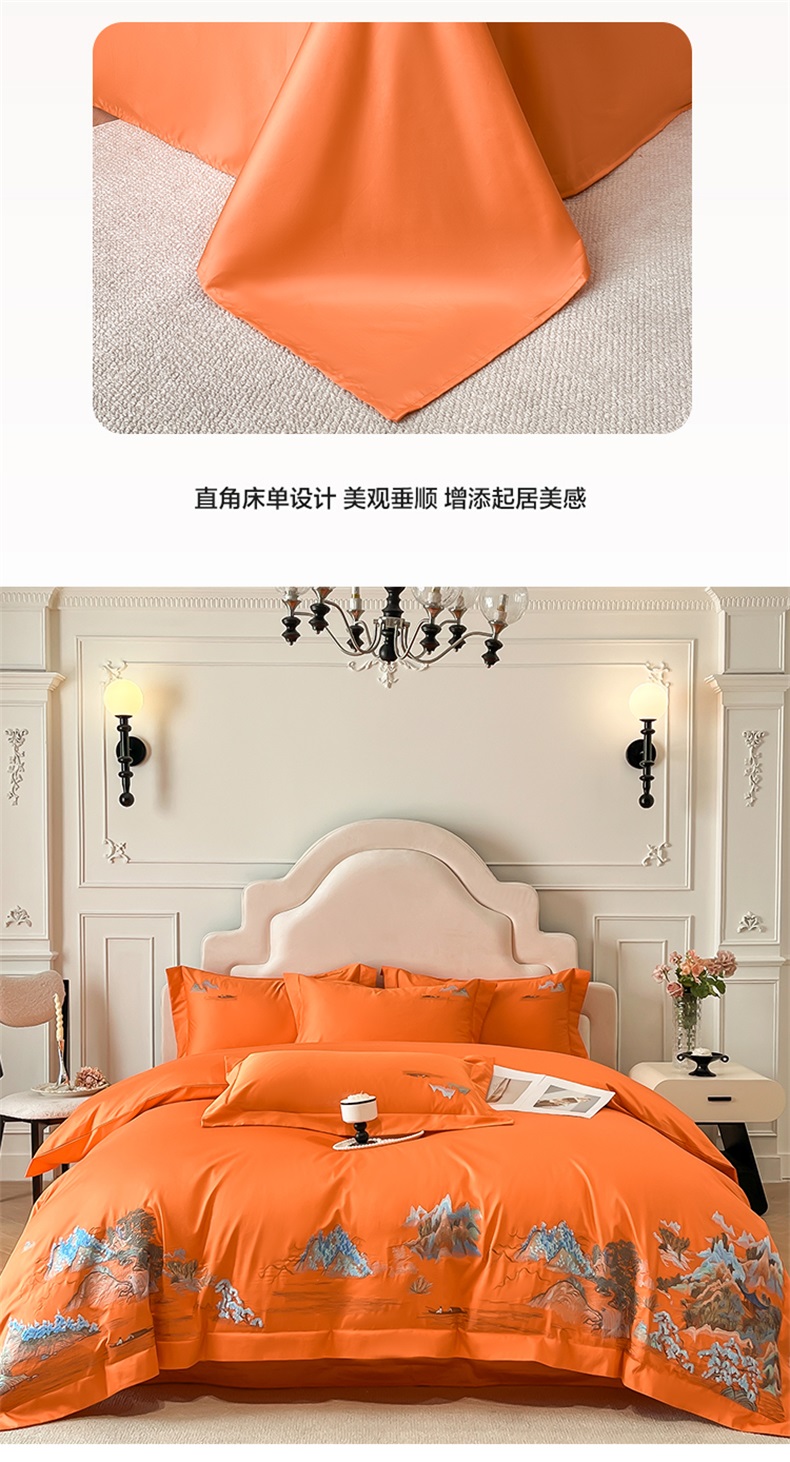 商品名称:帝王家纺 2025新款亲肤棉磨毛重工绣花四件套-锦绣山河 锦绣山河-爱马橙