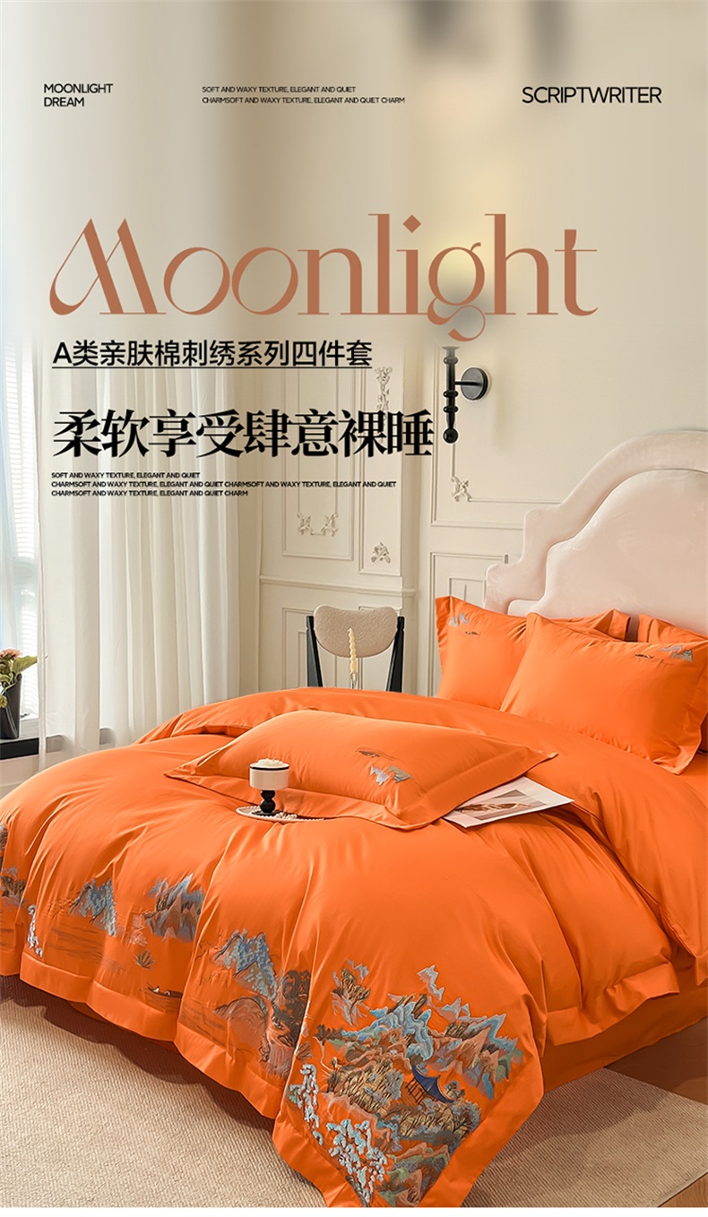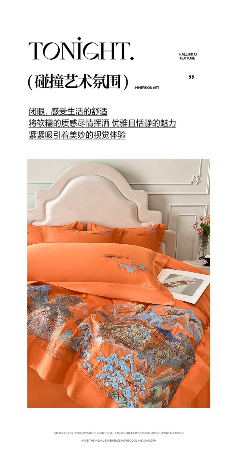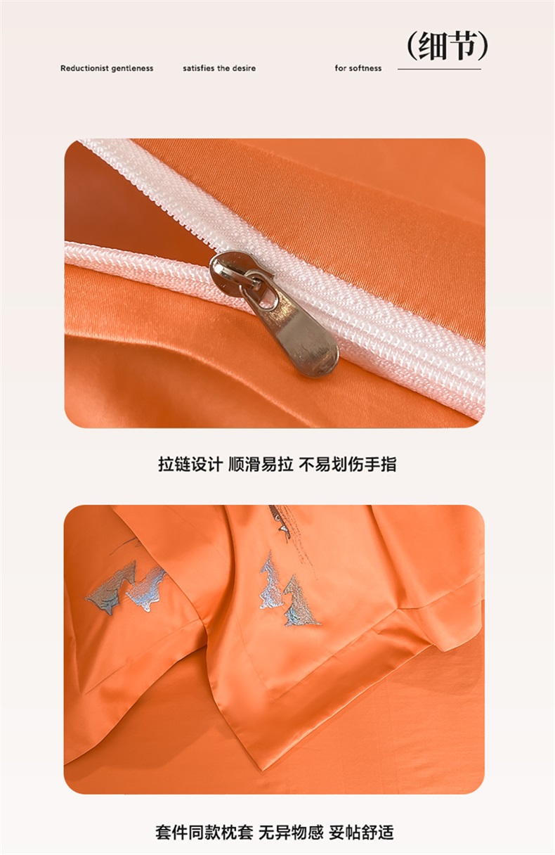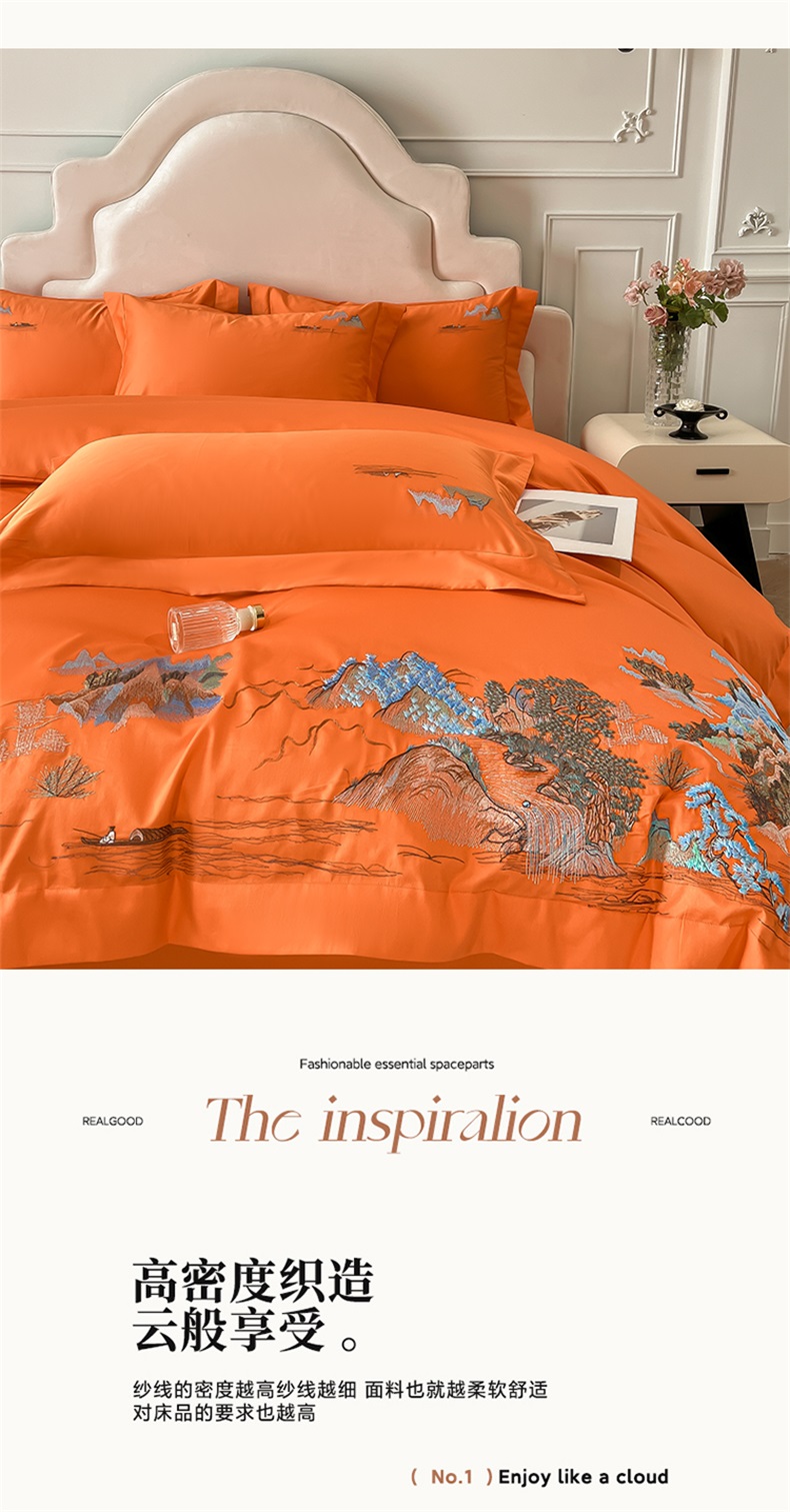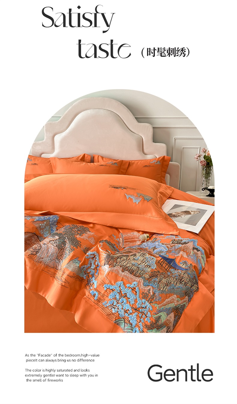 商品名称:帝王家纺 2025新款亲肤棉磨毛重工绣花四件套-锦绣山河 锦绣山河-爱马橙