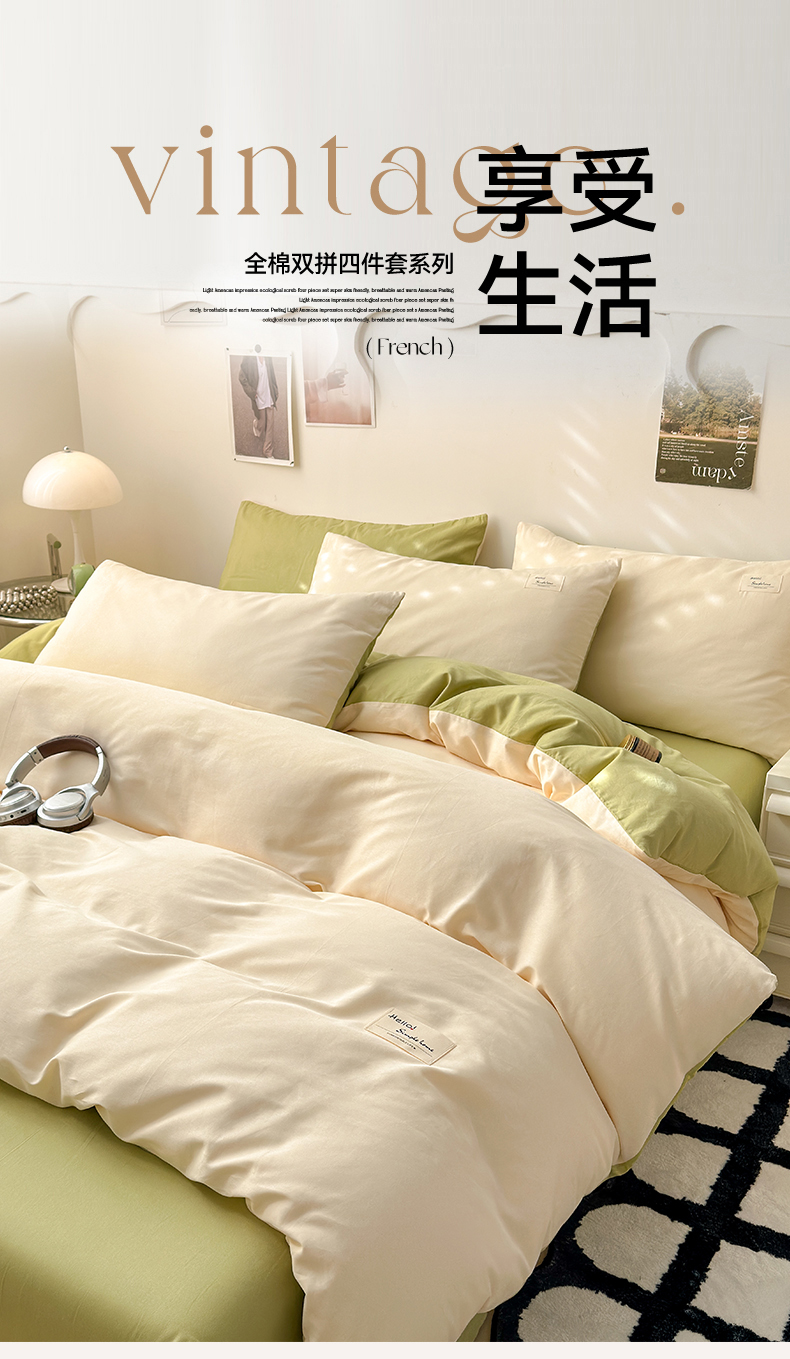 当前位置: 91家纺网 > 商品网购 > 床品套件 > 四件套 > 全棉普通四件套 > 曼之夏 2025新款全棉双拼四件套 贴标-米色+草绿