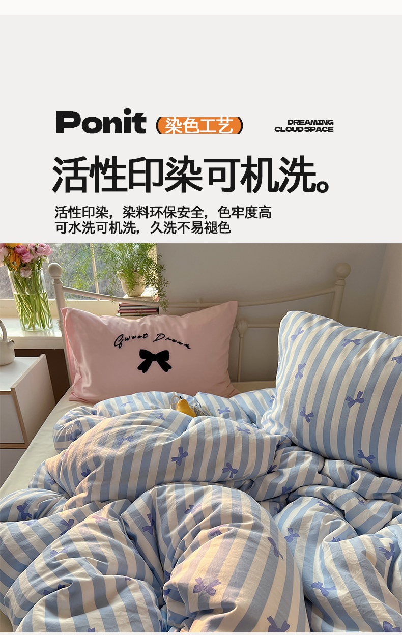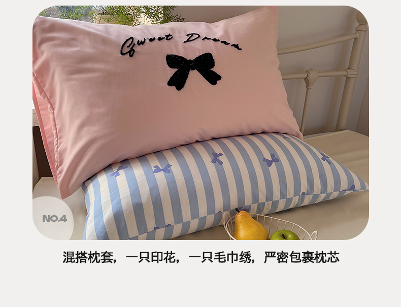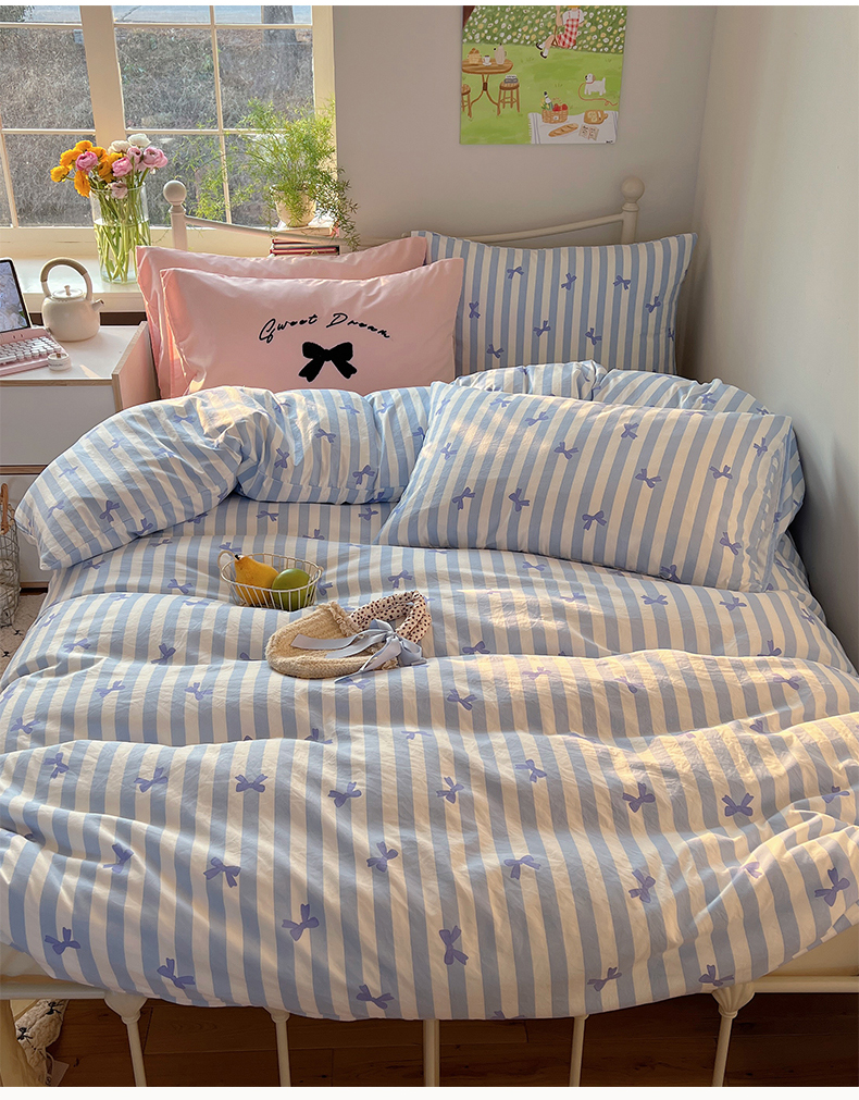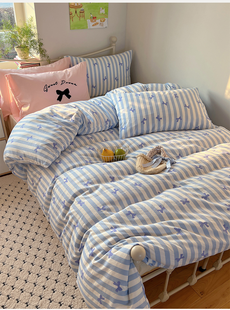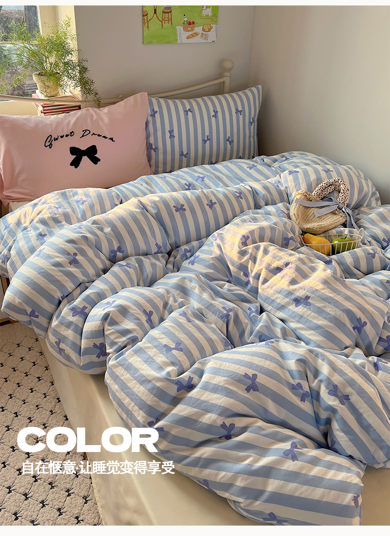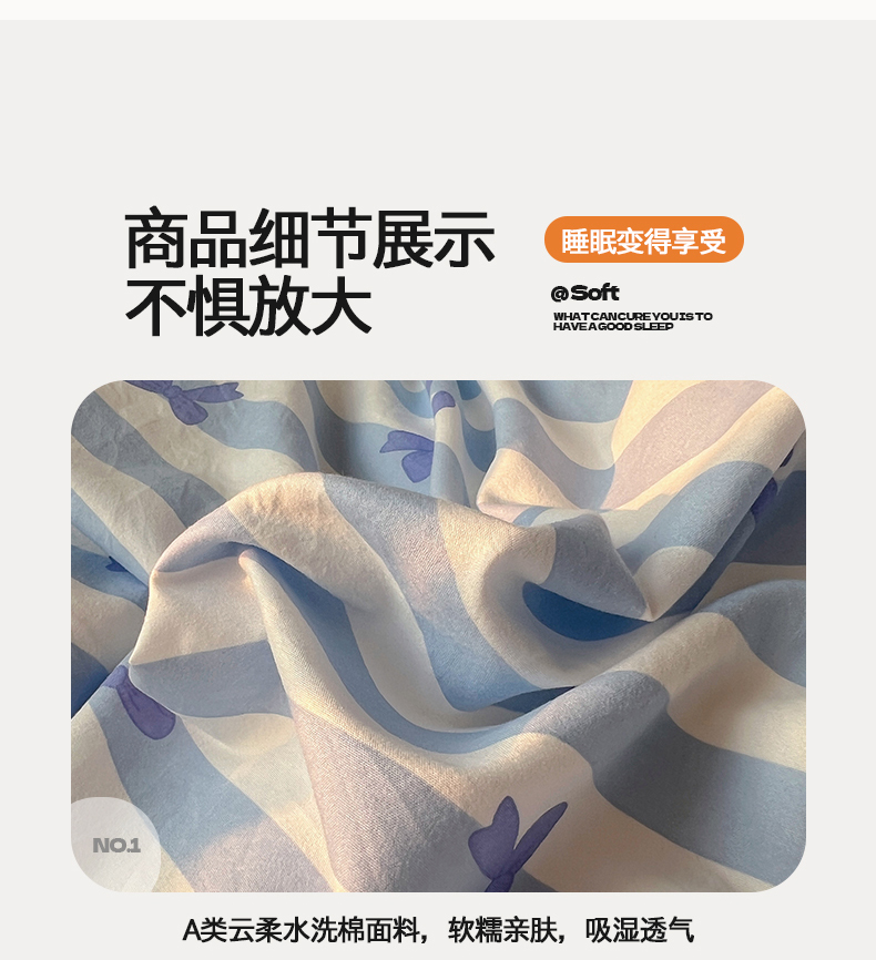 当前位置: 91家纺网 > 商品网购 > 床品套件 > 四件套 > 水洗棉四件套 > 桃心家居 2025新款A类亲肤舒适软糯云柔水洗棉毛巾绣奶油可爱蝴蝶结水洗棉系列四件套 云柔水洗棉-奶油蝴蝶结蓝蓝