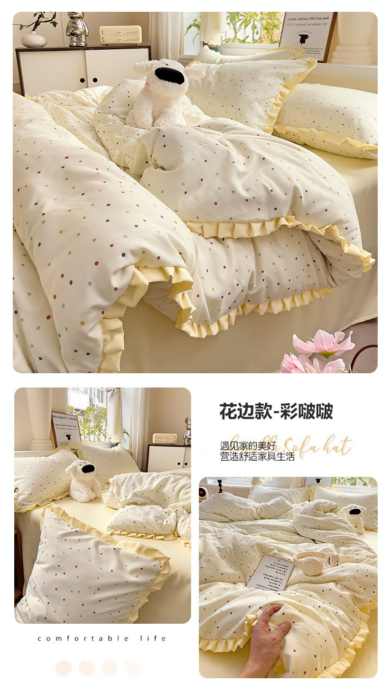 (总)尤米 2025新款水洗棉撞色绑带款四件套,绑带款-白波点,组合图仅供展示,绑带款-海盐蓝,绑带款-蓝波点,绑带款-蜜桃粉,绑带款-芋泥紫,绑带款-芝士黄
