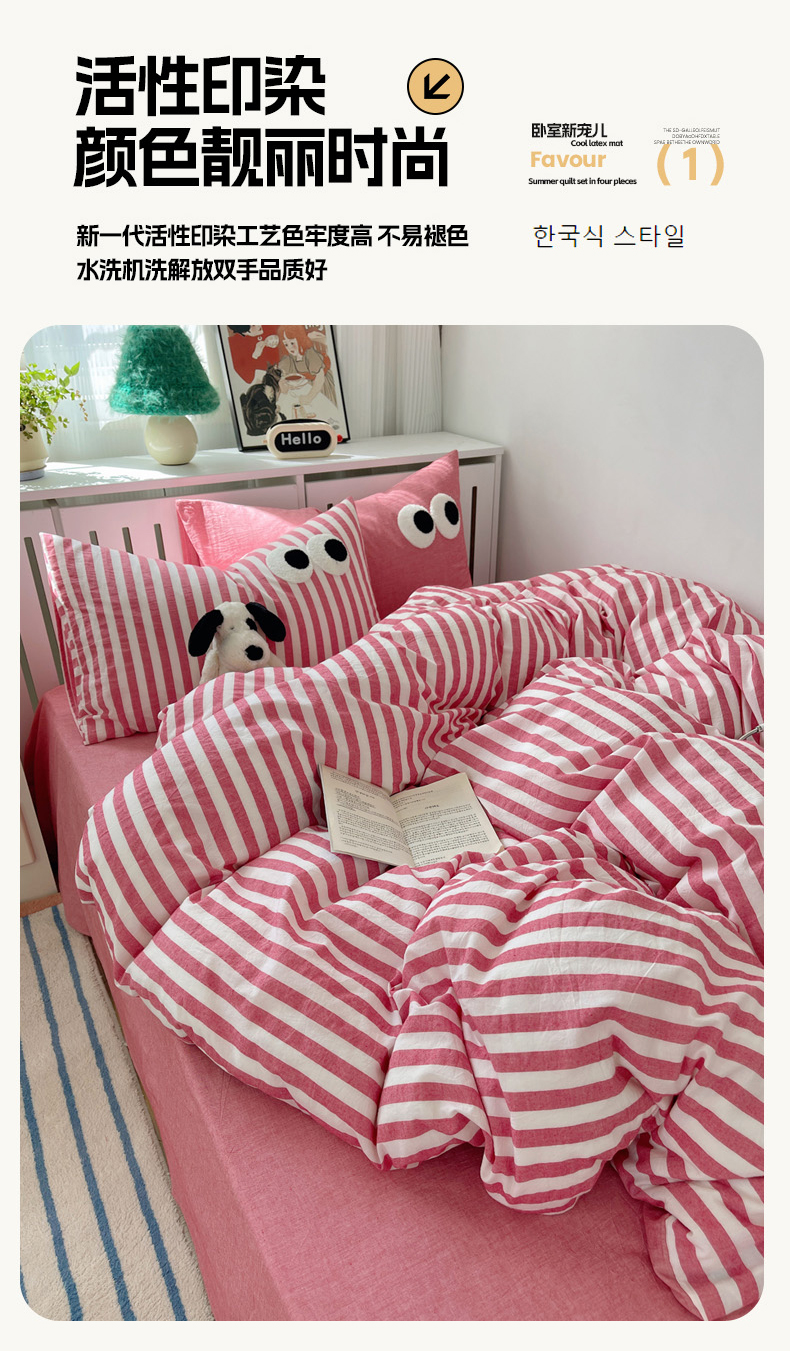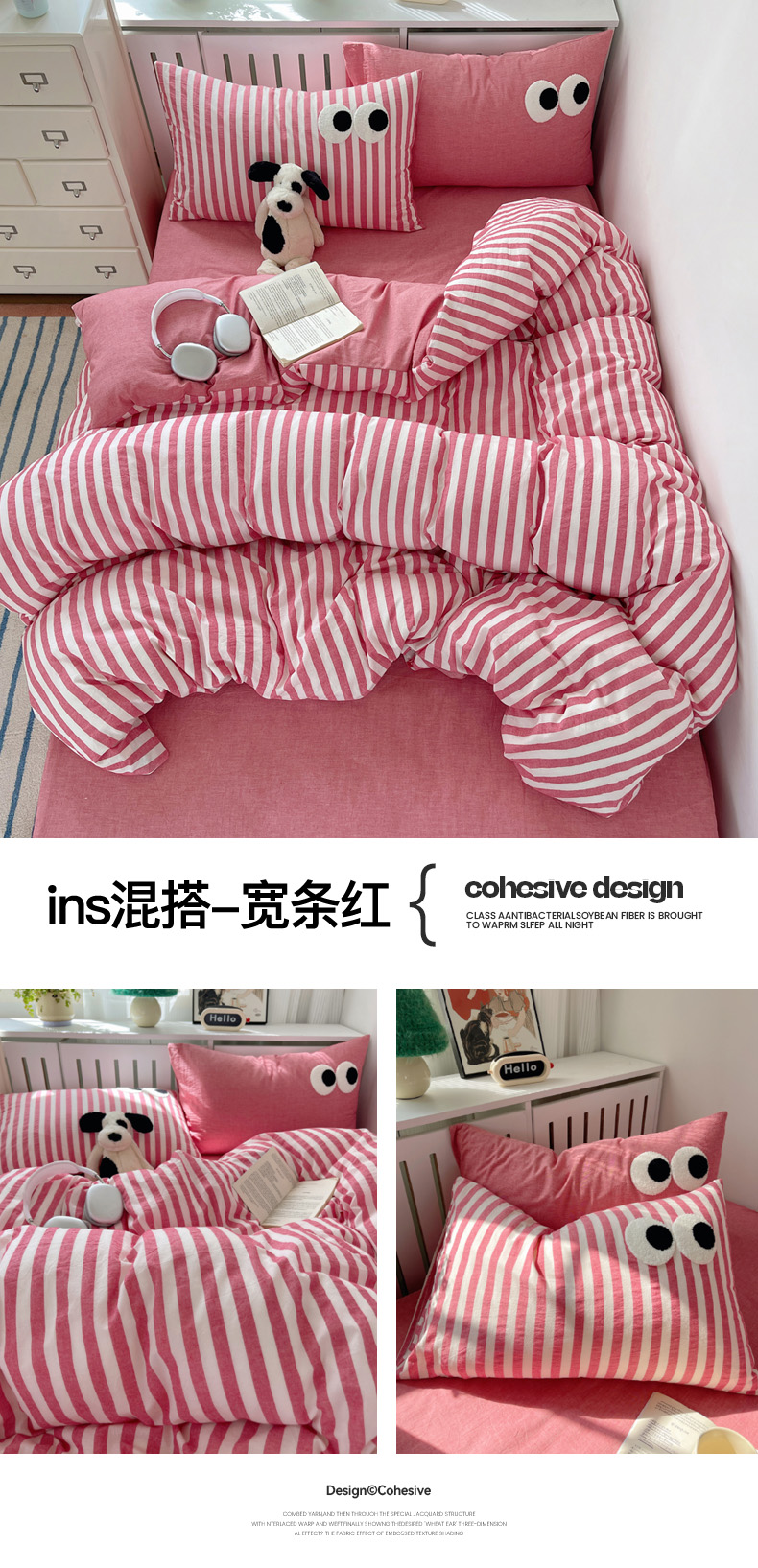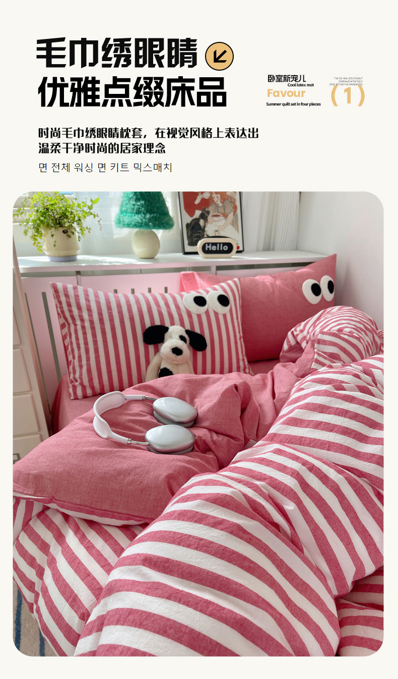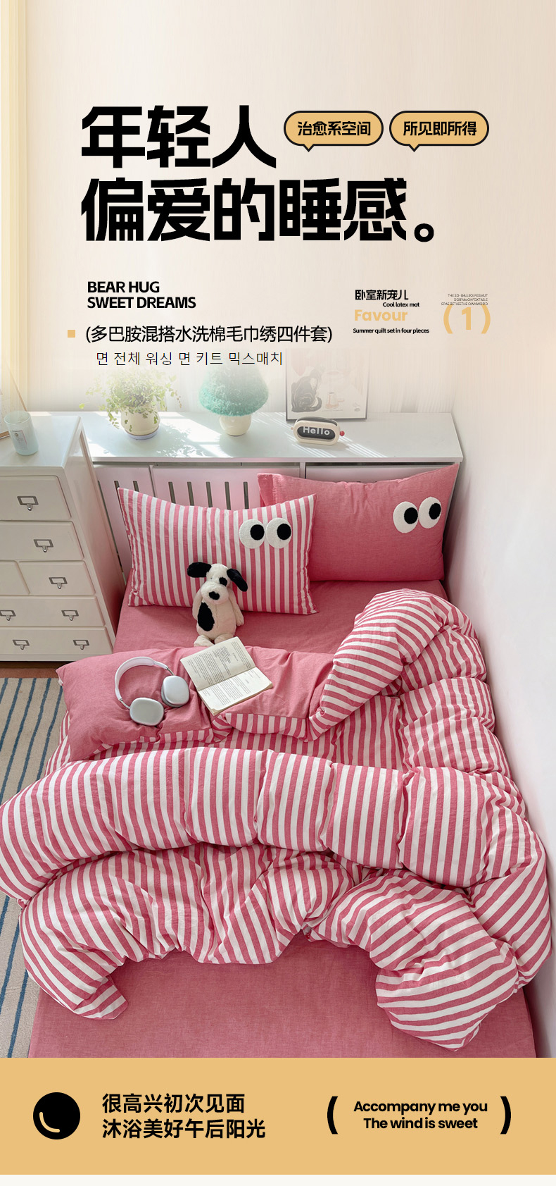 当前位置: 91家纺网 > 商品网购 > 床品套件 > 四件套 > 全棉普通四件套 > 丽涵家纺 2025新品全棉多巴胺混搭水洗棉毛巾绣四件套 ins混搭5-宽条红