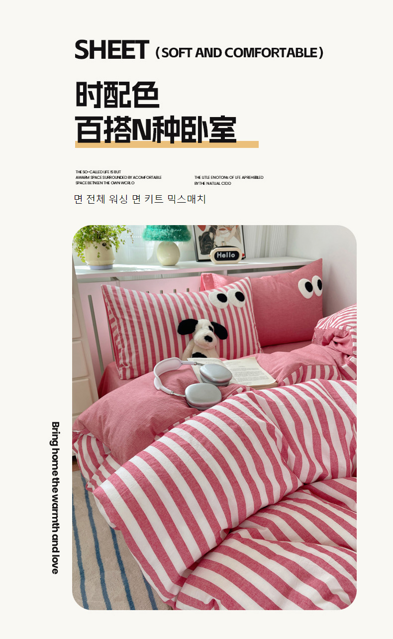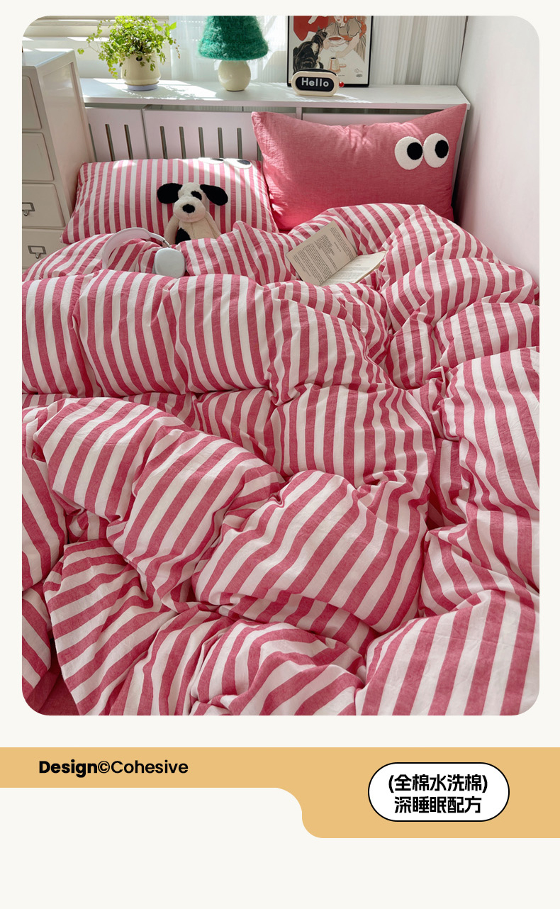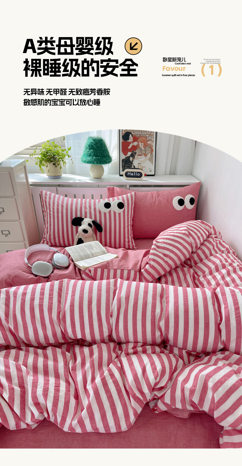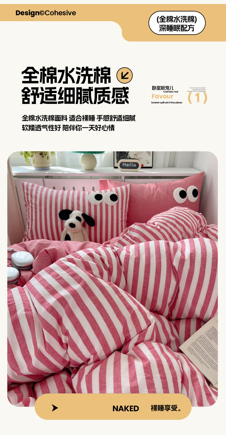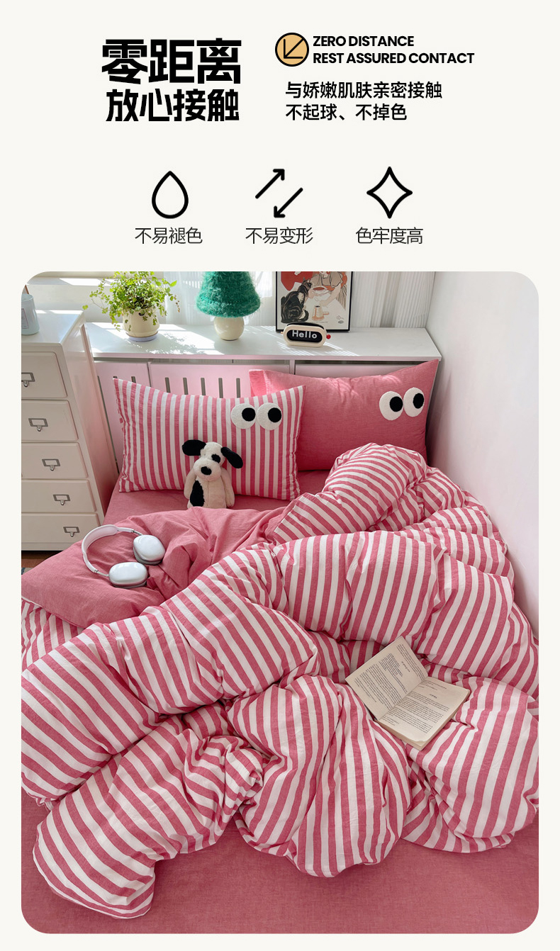 当前位置: 91家纺网 > 商品网购 > 床品套件 > 四件套 > 全棉普通四件套 > 丽涵家纺 2025新品全棉多巴胺混搭水洗棉毛巾绣四件套 ins混搭5-宽条红