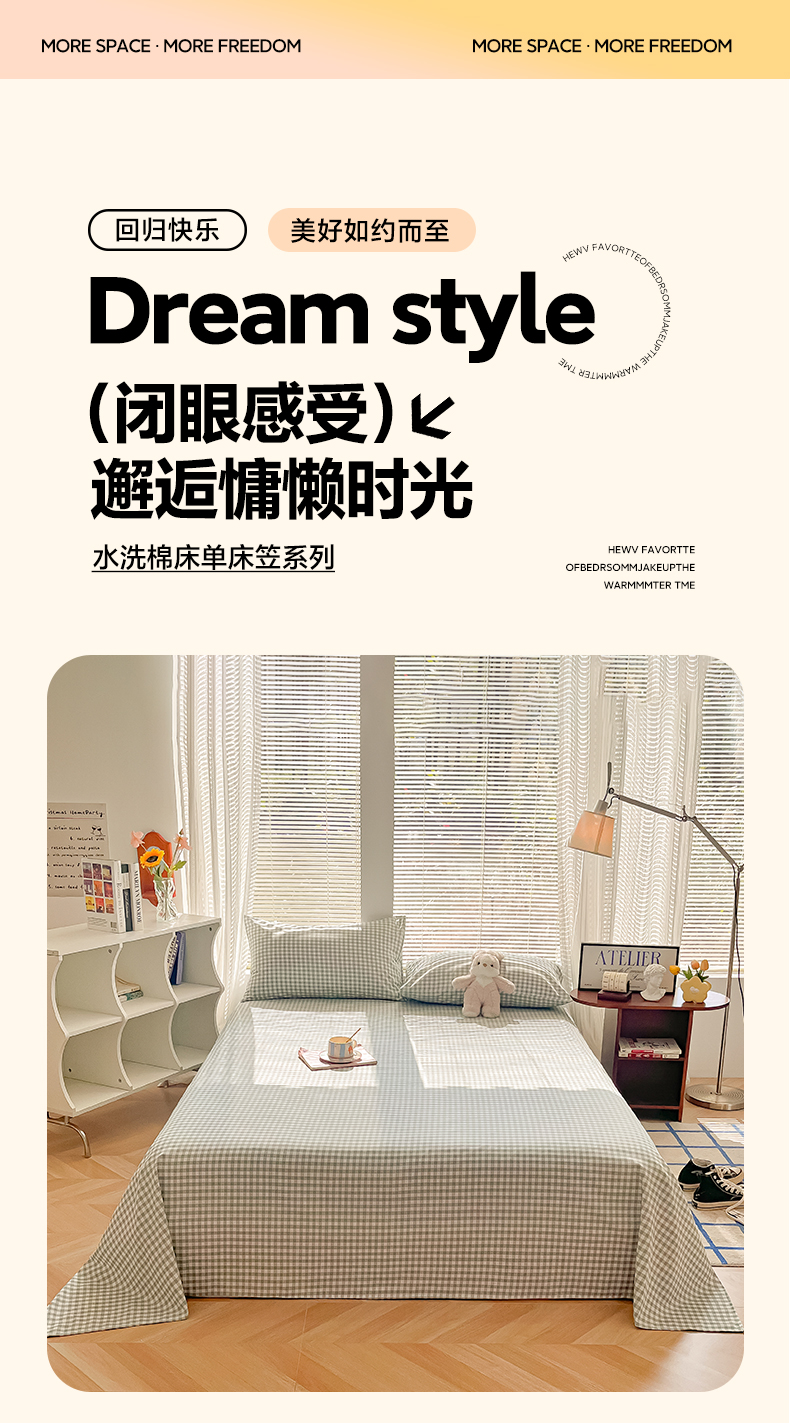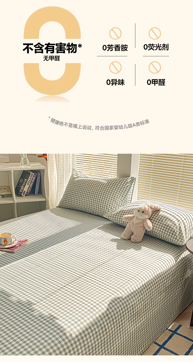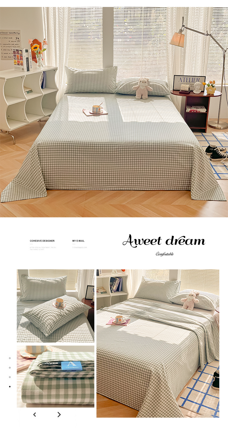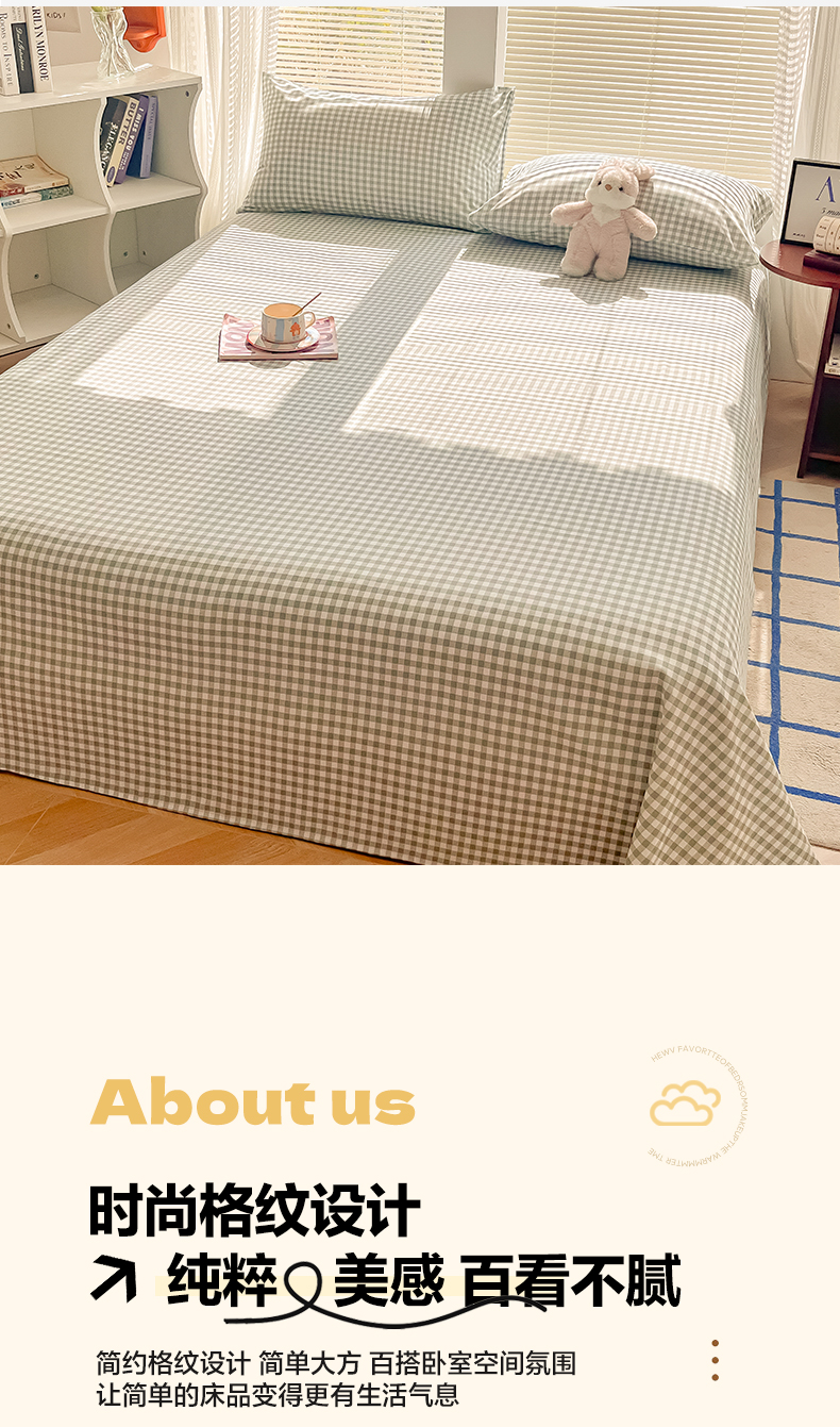 商品名称:韩巢家纺 2025新款格子纯色A类水洗棉床单单件 浅绿格
