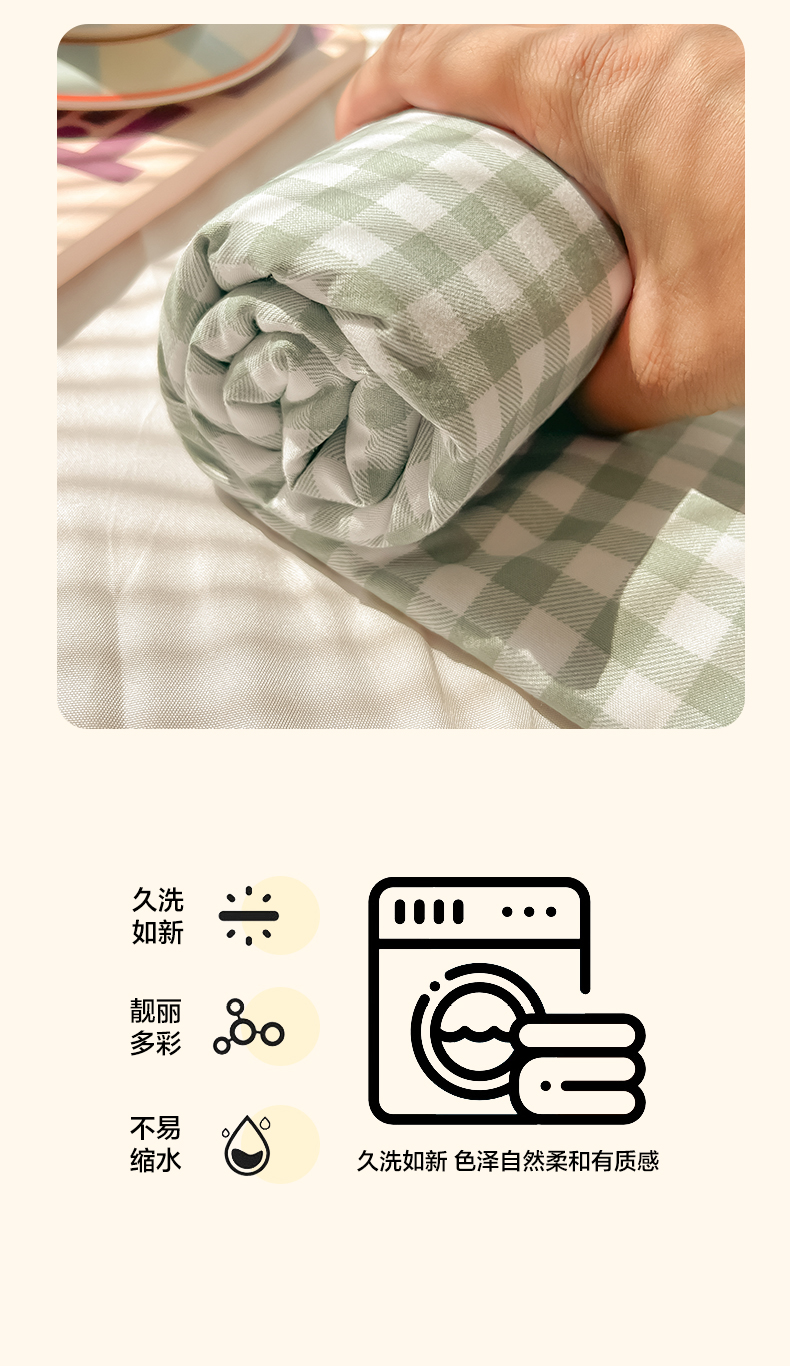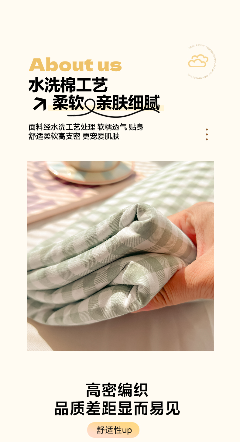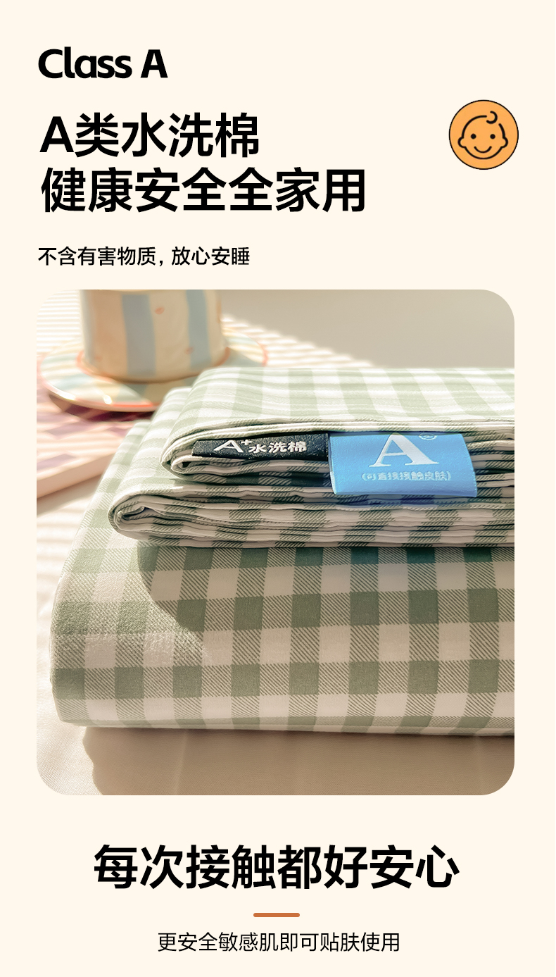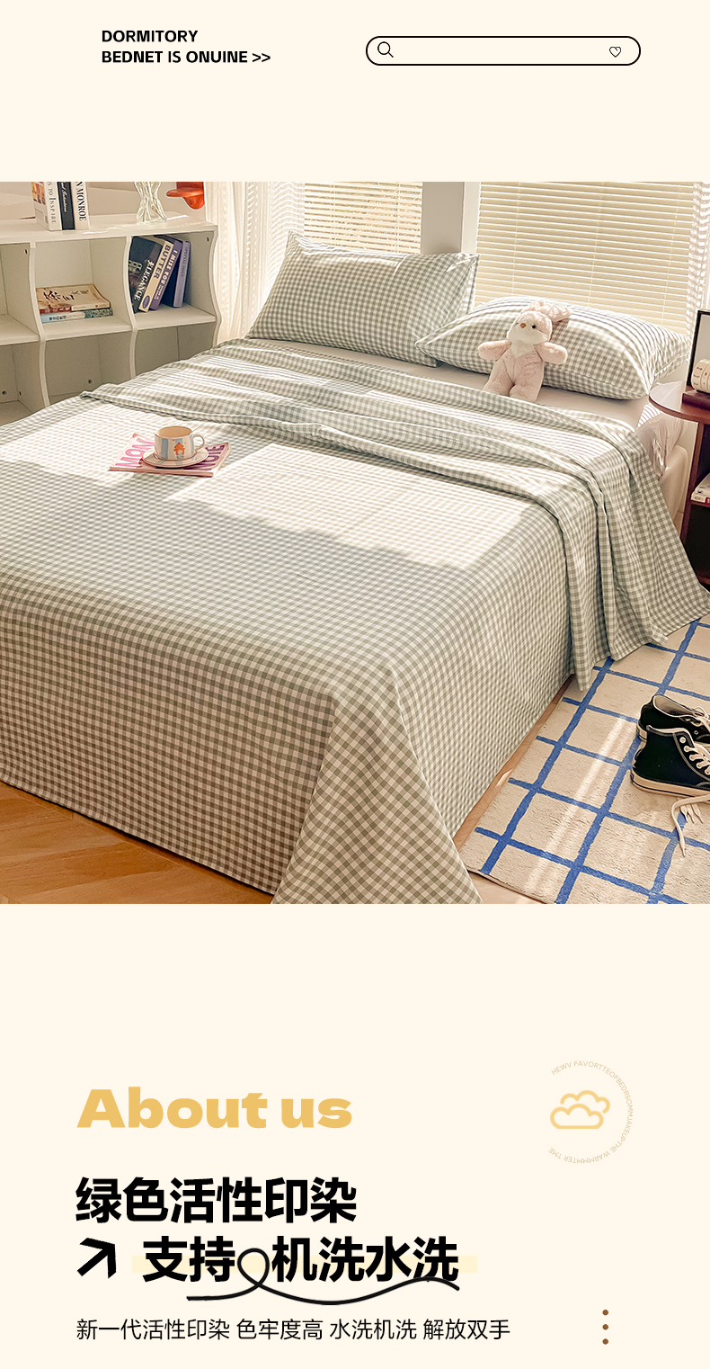商品名称:韩巢家纺 2025新款格子纯色A类水洗棉床单单件 浅绿格