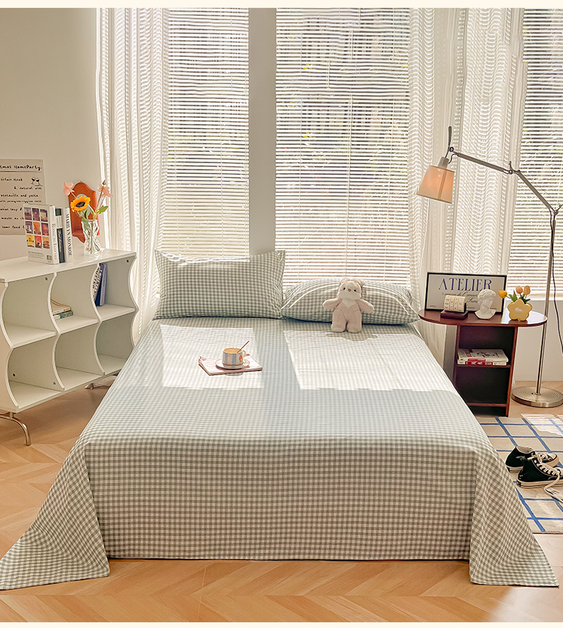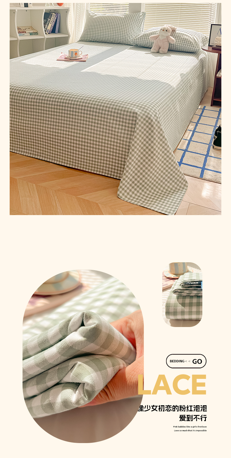 韩巢家纺 2025新款格子纯色A类水洗棉床单单件 浅绿格
