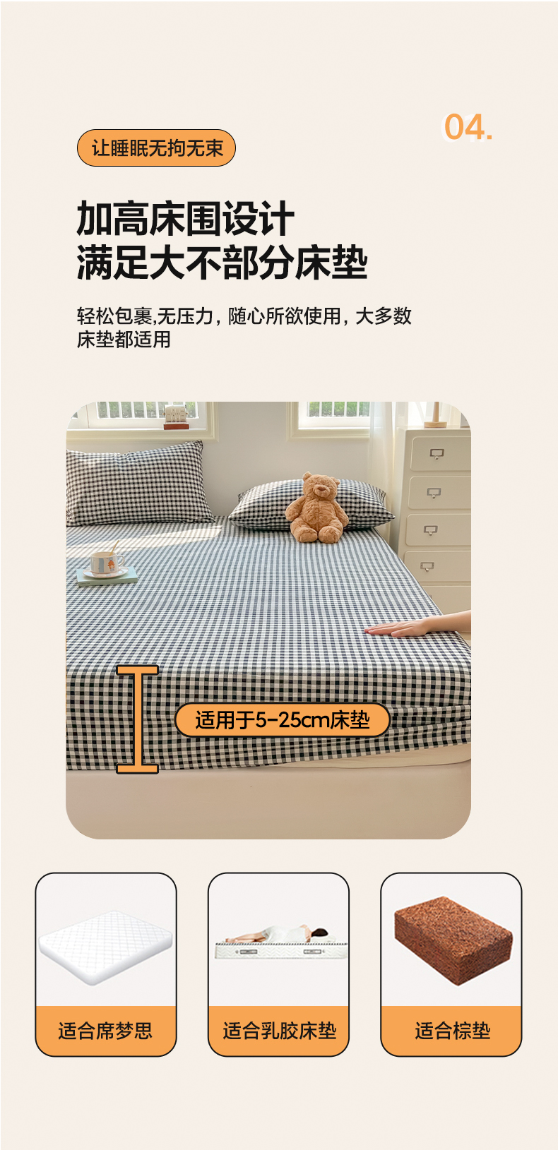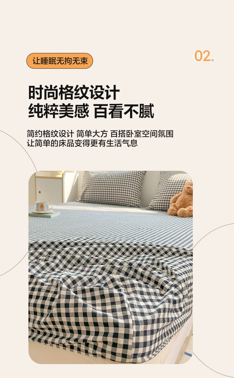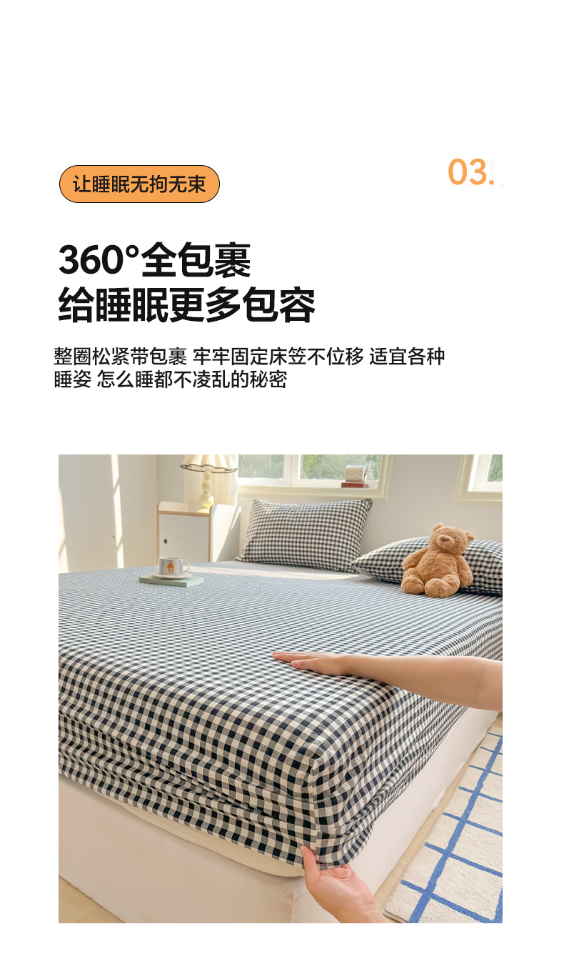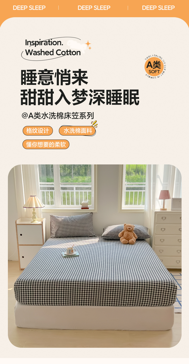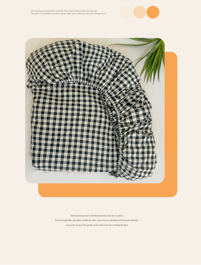 • 91家纺网 家纺一手货源 找家纺 韩巢家纺 2025新款A类纯色格子水洗棉床笠单件床罩床套 A类黑色格-床笠